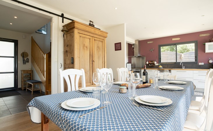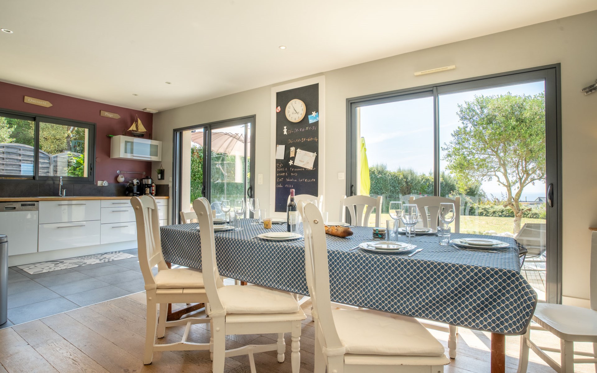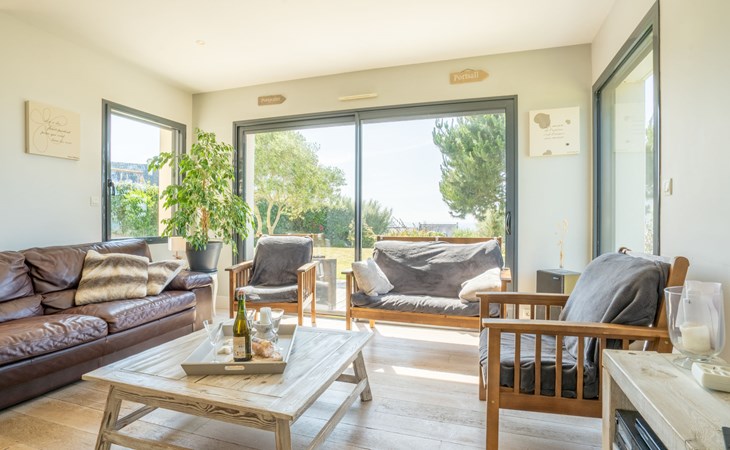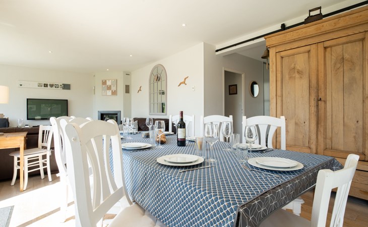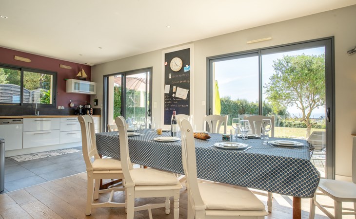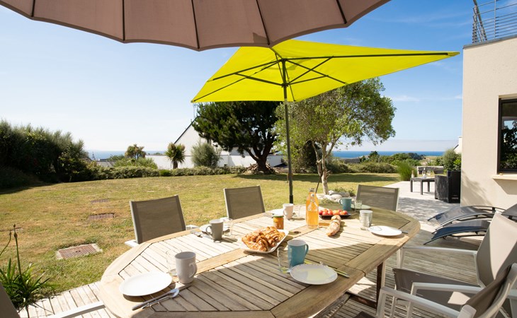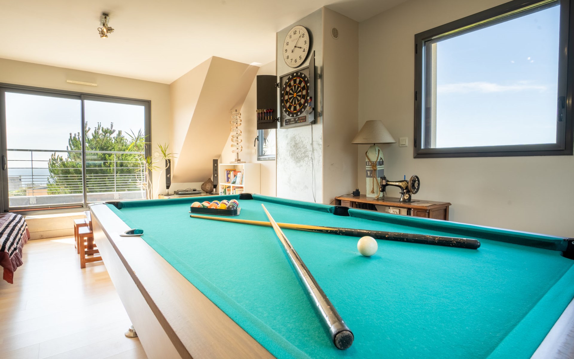 Large, beautiful single-family house "Hidel". In the district of Ruscumunoc 4.5 km from the centre of Plouarzel, 4 km from the centre of Lampaul-Plouarzel, 14 km from the centre of St. Renan, in a quiet position residential area (villas), 300 m from the sea, 300 m from the beach, in a cul-de-sac. Private: property 1'000 m2 (fenced), garden with lawn and wildlife garden. In the house: billiard table, table football. Parking (for 3 cars) on the premises. Shop 4 km, supermarket 4.5 km, bakery 4.5 km, bus stop "Plouarzel Centre" 4.8 km, sandy beach "Plage de Ruscumunoc" 300 m. Sports harbour 15 km, golf course (18 hole) 8 km, indoor tennis centre 4.5 km, walking paths from the house 300 m. Nearby attractions: Aber Ildut 15 km, Parc d'attraction La Récré des 3 Curés 25 km. The owner does not accept any groups.