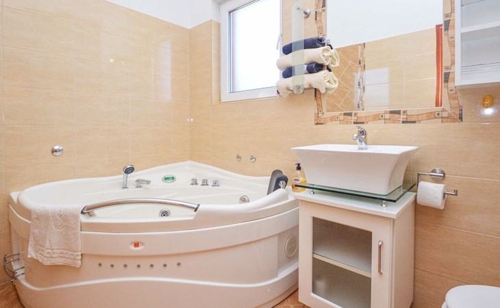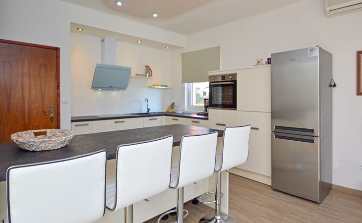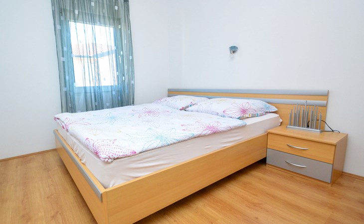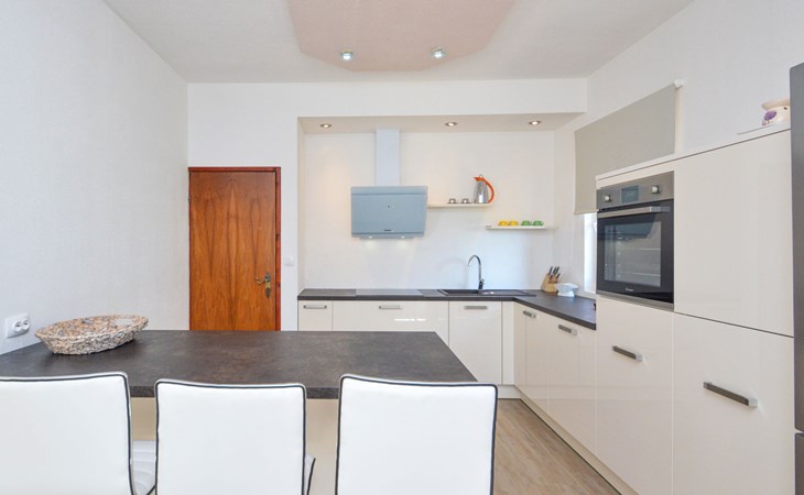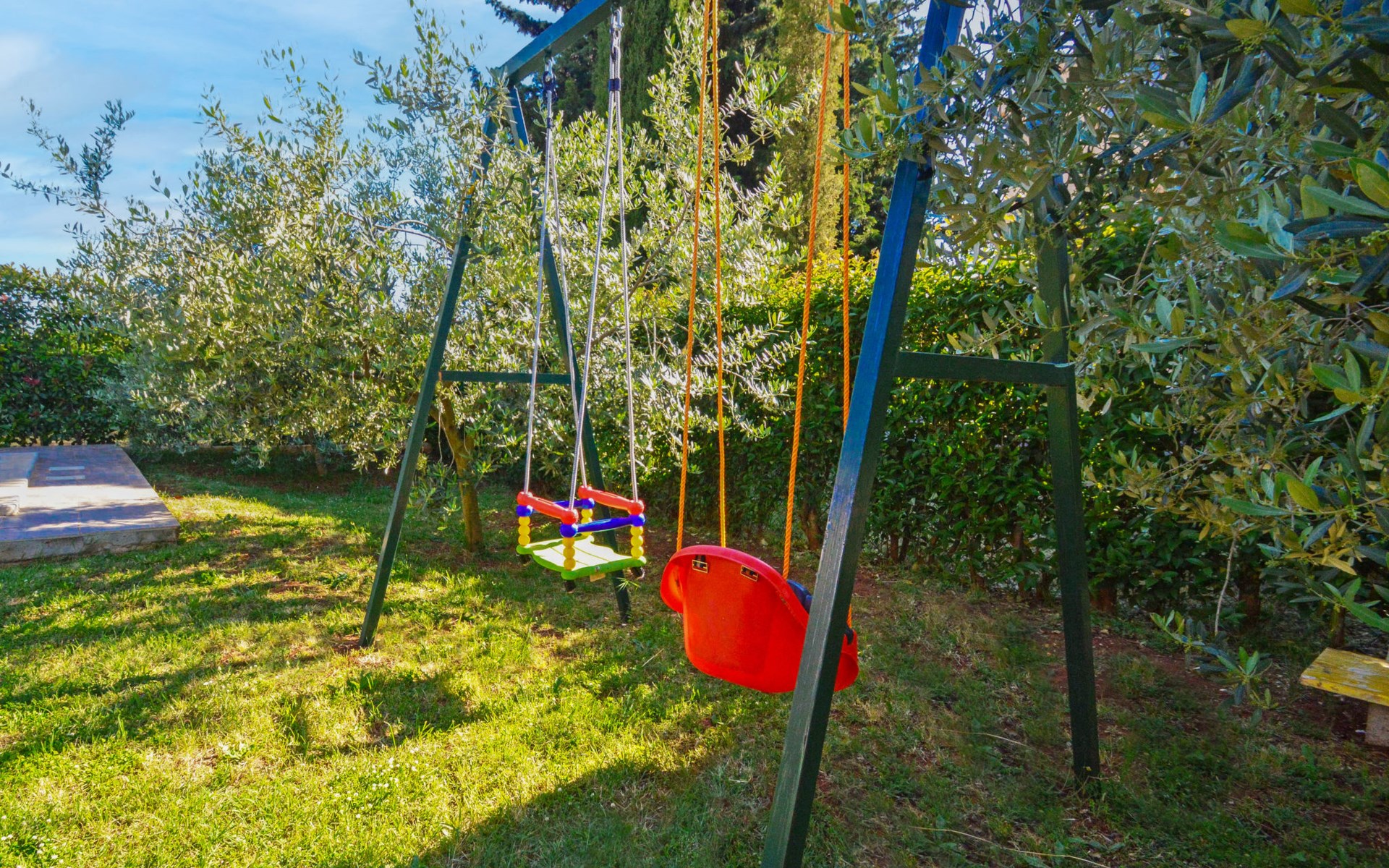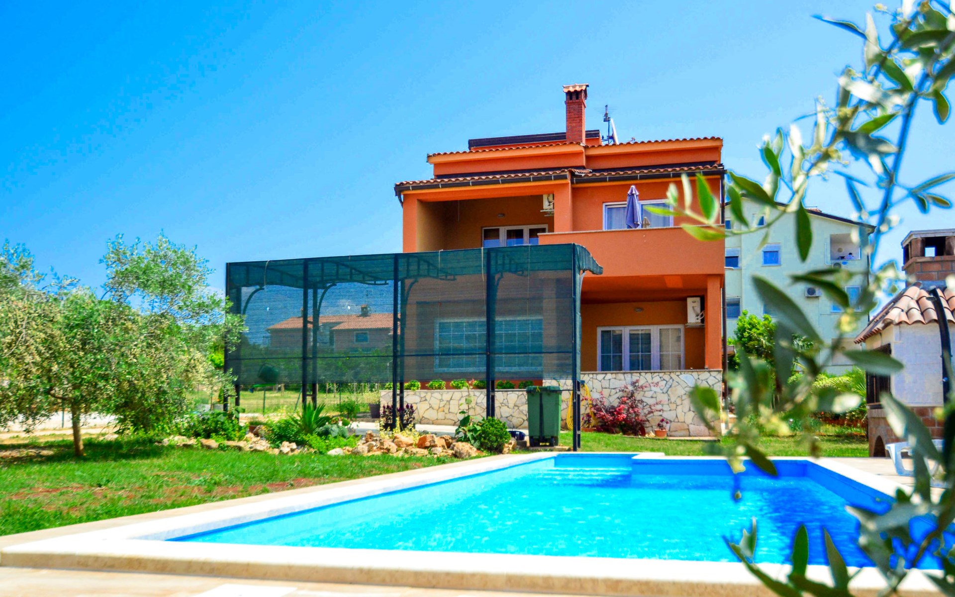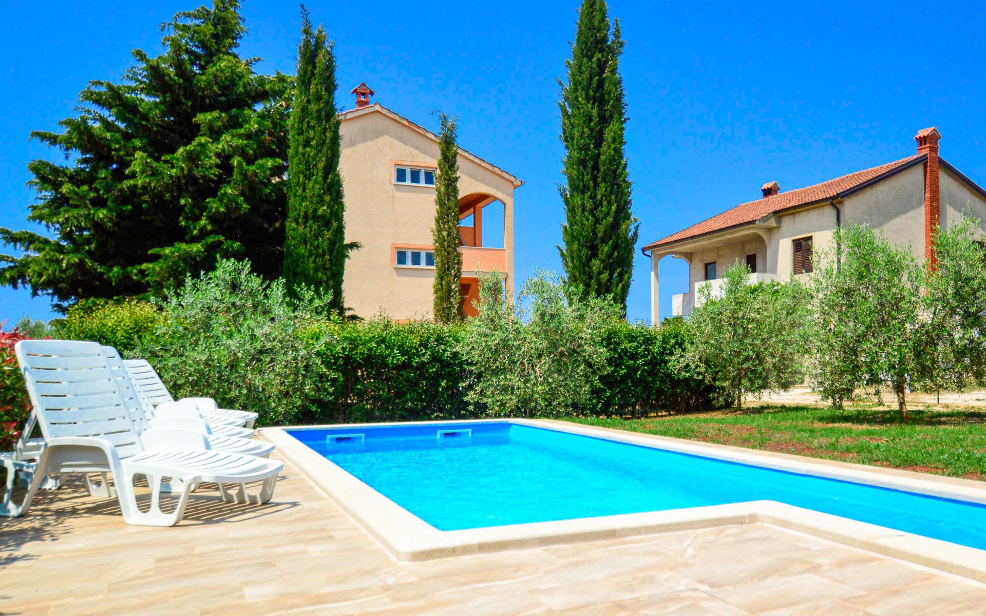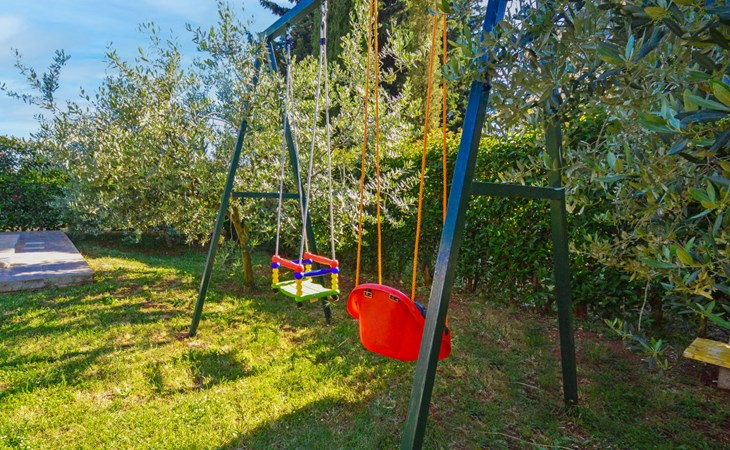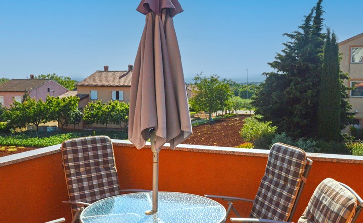 Semi-detached house "Marko", 3 storeys. 2 km from the centre of Novigrad, in a sunny position, 2.5 km from the sea, 2.5 km from the beach. Private: property 400 m2, garden with wildlife garden and trees, swimming pool angular (21 m2, depth 140 cm, seasonal availability: 30.Apr. - 15.Oct.) with internal staircase. Outdoor shower, barbecue (swing). In the house: internet access, washing machine. Parking (for 3 cars) at the house on the premises. Supermarket 2 km, restaurant 2 km, bus stop 2.3 km, pebble beach 2.5 km, rocky beach 2.5 km. Golf course (18 hole) 25 km, tennis 2 km. The owner does not accept any youth groups.