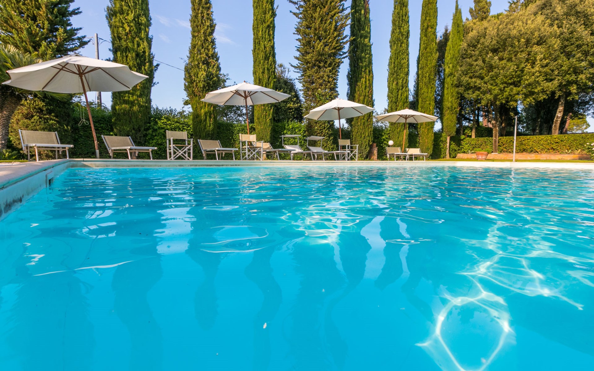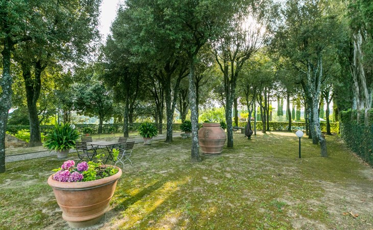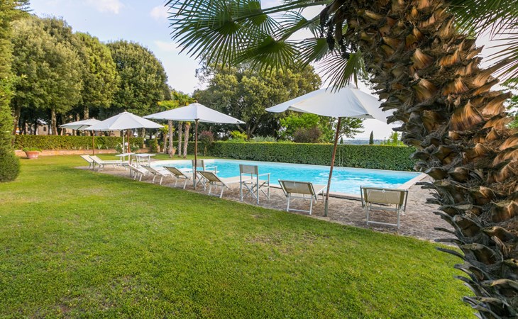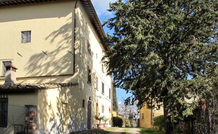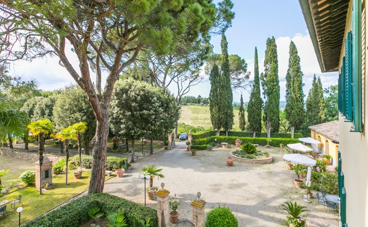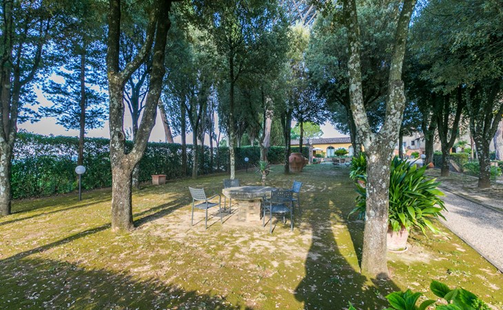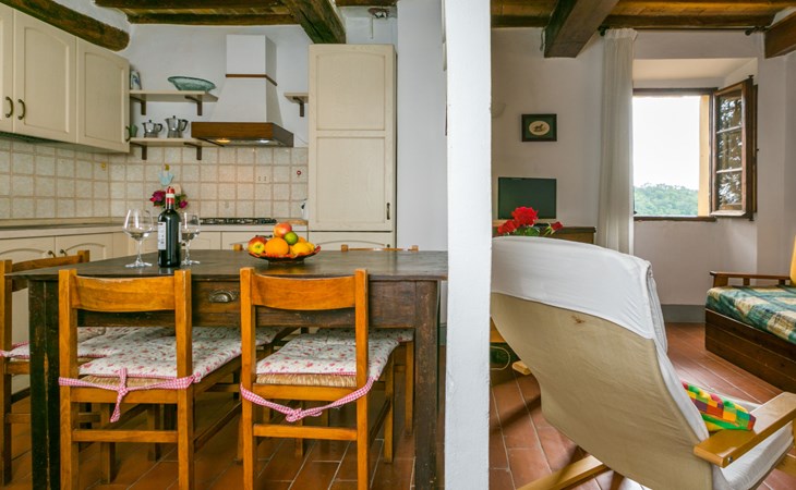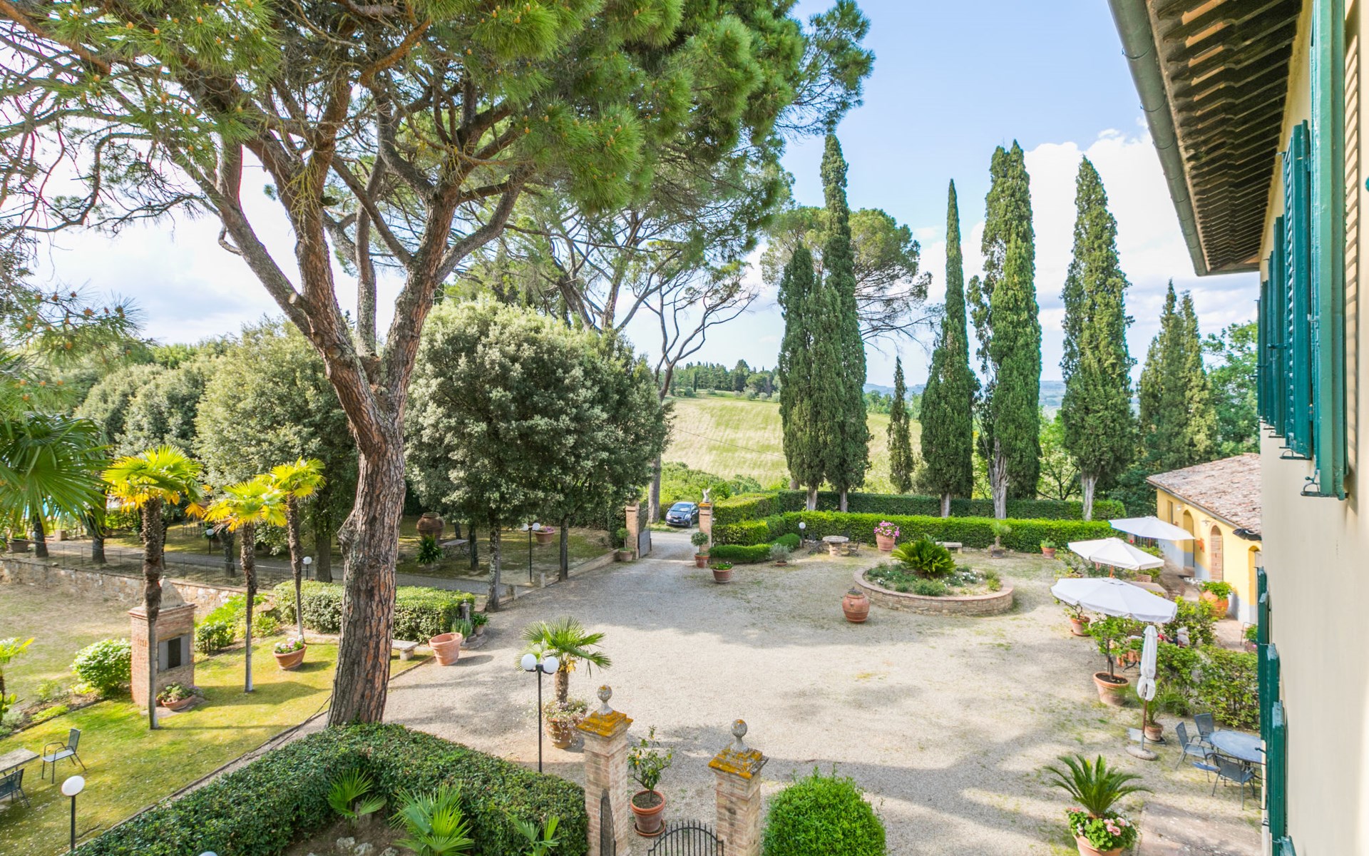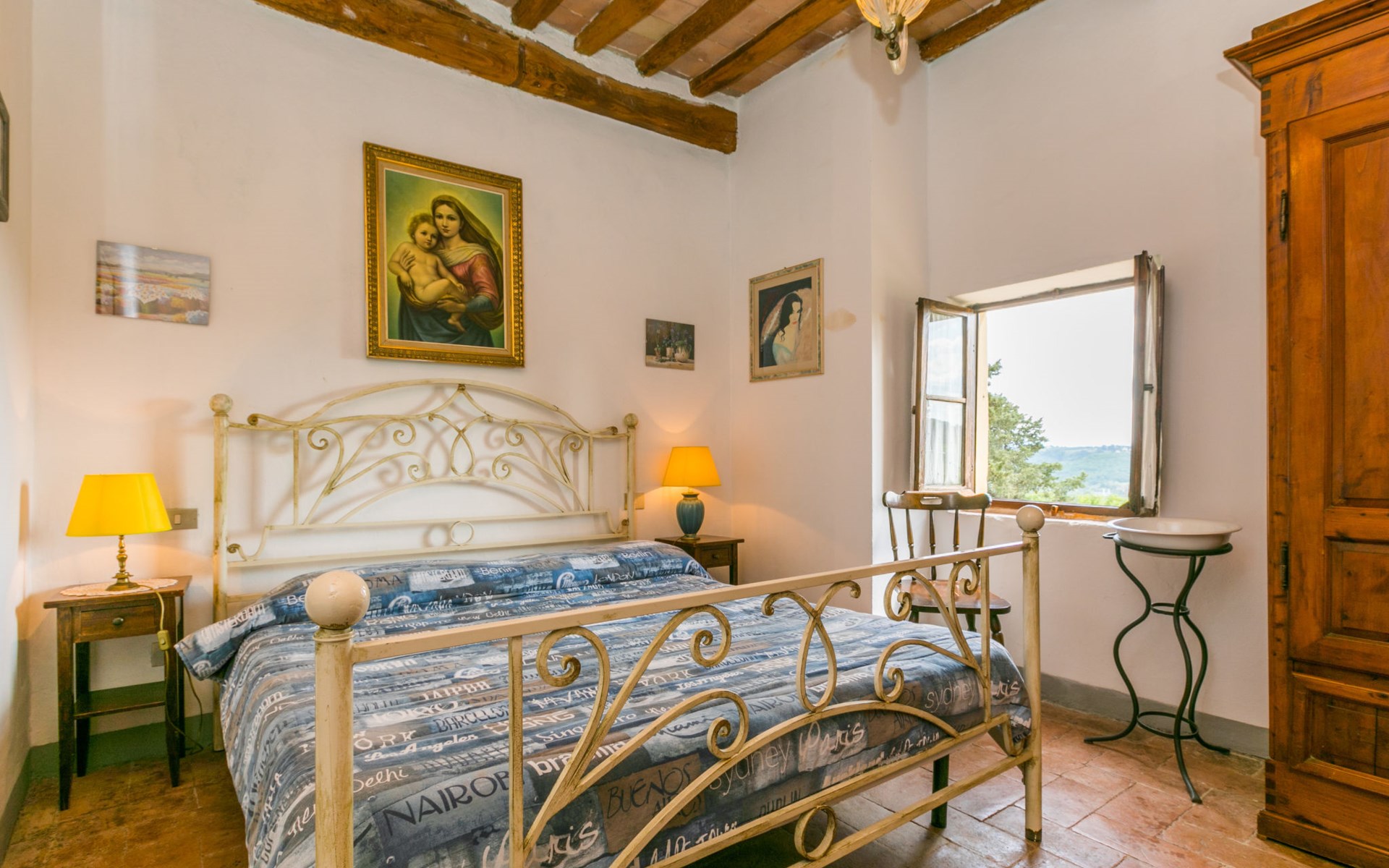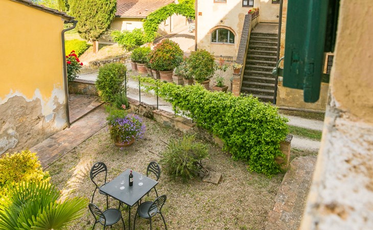 Cosy country house "Giuggiolo", surrounded by trees and vineyards. 3 houses in the residence. 4 apartments in the residence. In the hamlet Casaglia 4 km from the centre of Poggibonsi, 11 km from the centre of San Gimignano, 30 km from the centre of Siena, in a sunny position, in the countryside. For shared use: large, beautiful garden 5'000 m2 (fenced) with plants and trees, meadow, swimming pool (14 x 7 m, depth 120 - 160 cm, seasonal availability: 02.May. - 03.Oct.). Terrace, pool maintenance by the owner/gardener. Heating to be paid on the spot (01.Nov. - 31.Mar.). 800 m long motor access to the grounds (via unmade road). Parking on the premises. Supermarket 2 km, railway station "Poggibonsi" 4 km. Please note: residence with electric gates. The owner lives in the same residence. Wine tasting in a wine cellar near San Gimignano 17 km away 1x per stay included (on request).