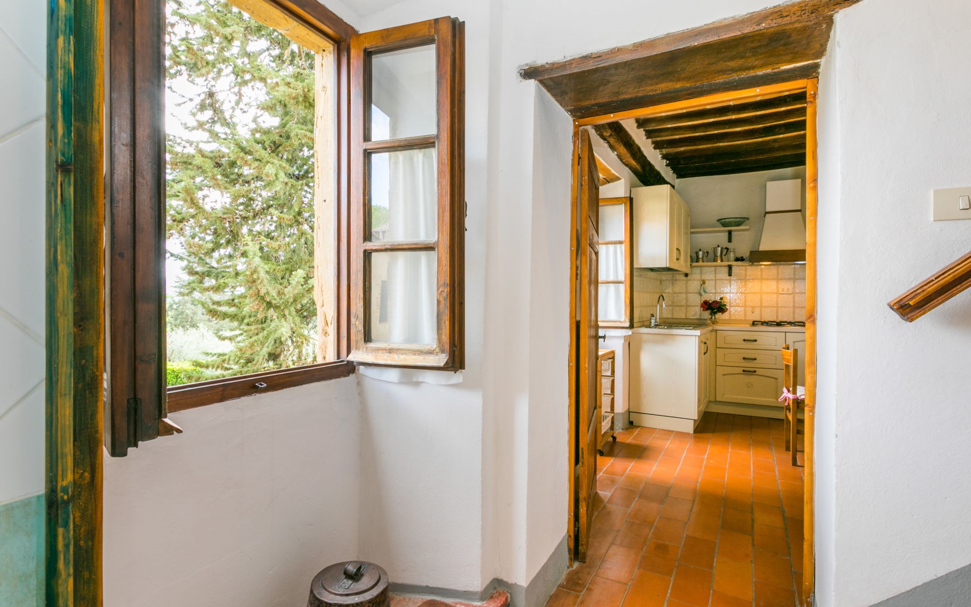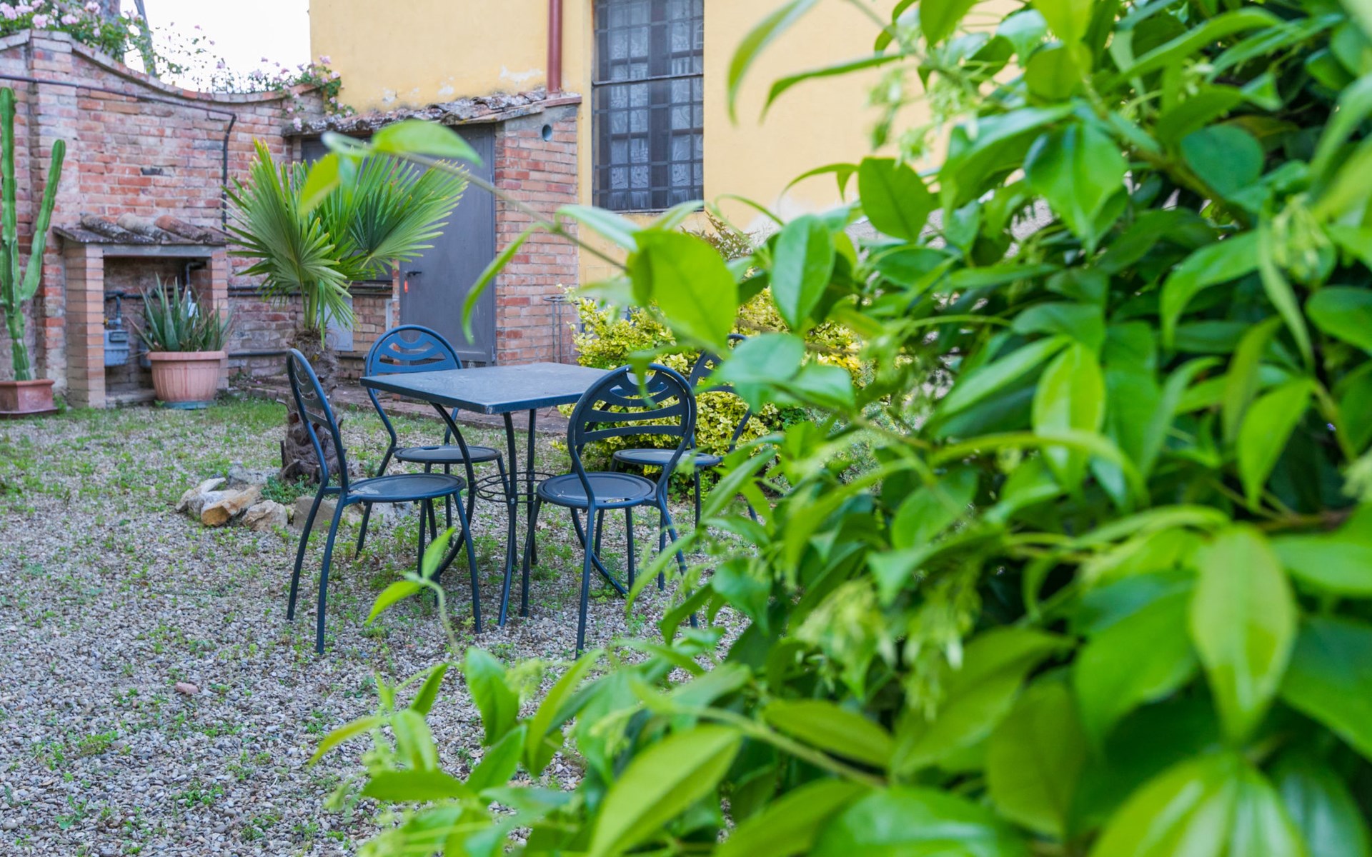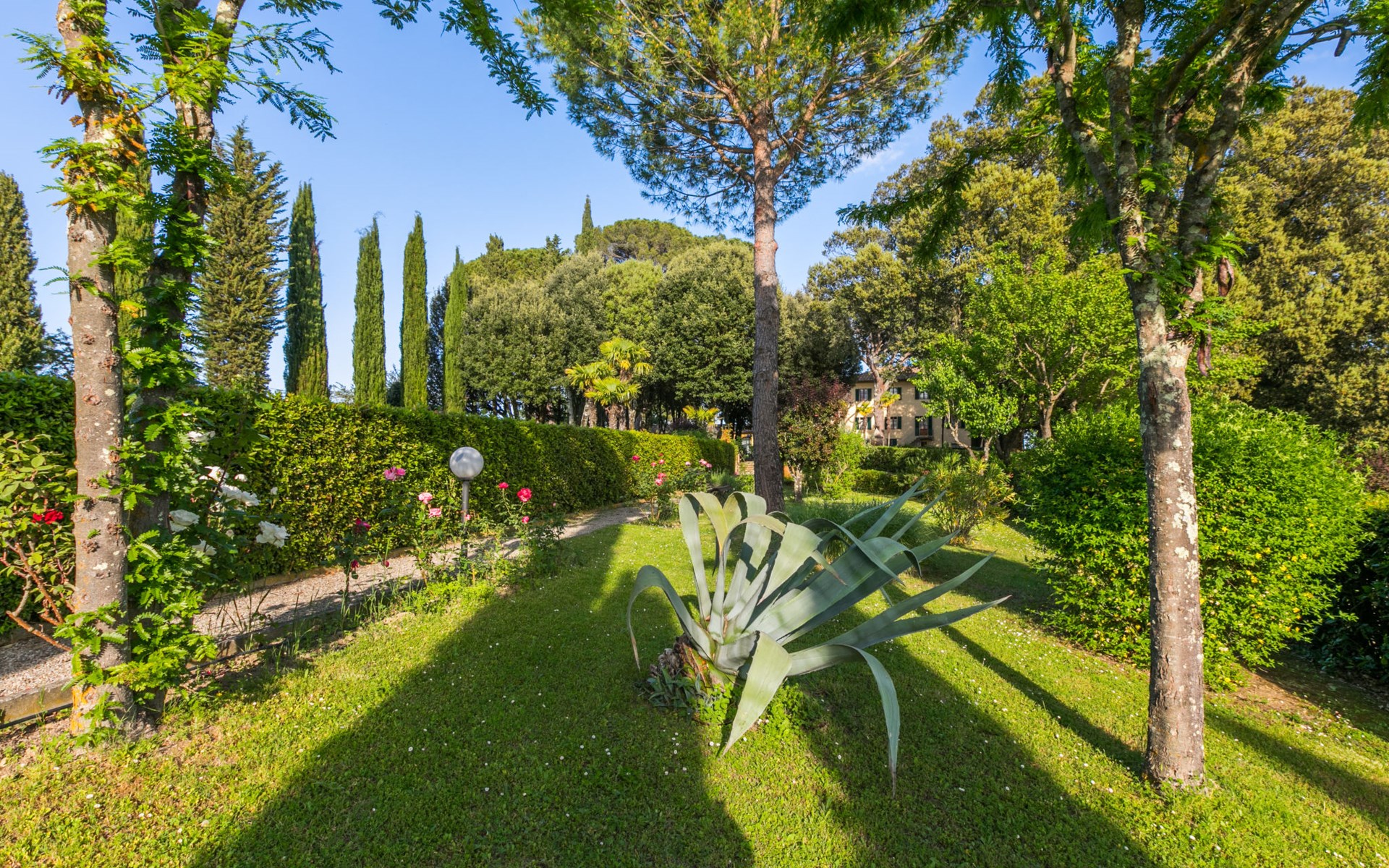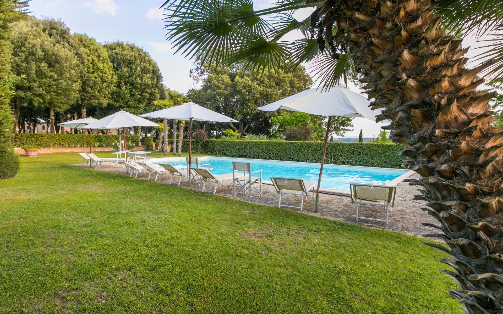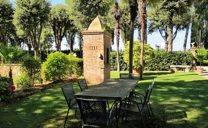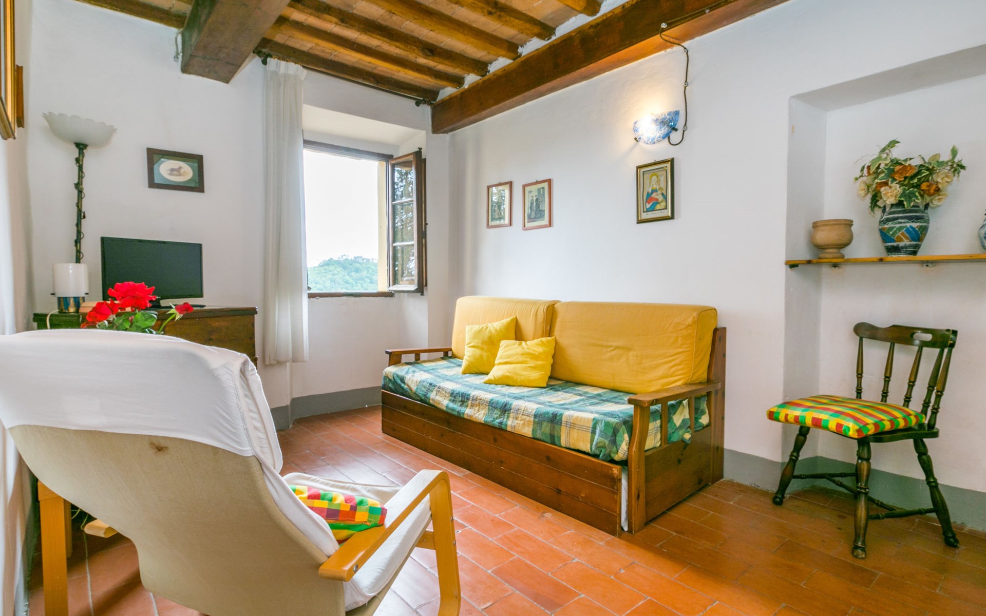 Cosy country house "Giuggiolo", surrounded by trees and vineyards. 3 houses in the residence. 4 apartments in the residence. In the hamlet Casaglia 4 km from the centre of Poggibonsi, 11 km from the centre of San Gimignano, 30 km from the centre of Siena, in a sunny position, in the countryside. For shared use: large, beautiful garden 5'000 m2 (fenced) with plants and trees, meadow, swimming pool (14 x 7 m, depth 120 - 160 cm, seasonal availability: 02.May. - 03.Oct.). Terrace, pool maintenance by the owner/gardener. Heating to be paid on the spot (01.Nov. - 31.Mar.). 800 m long motor access to the grounds (via unmade road). Parking on the premises. Supermarket 2 km, railway station "Poggibonsi" 4 km. Please note: residence with electric gates. The owner lives in the same residence. Wine tasting in a wine cellar near San Gimignano 17 km away 1x per stay included (on request).