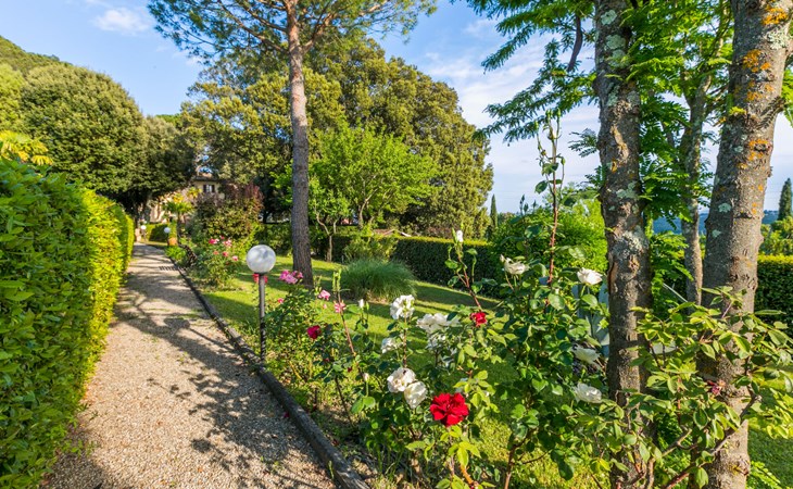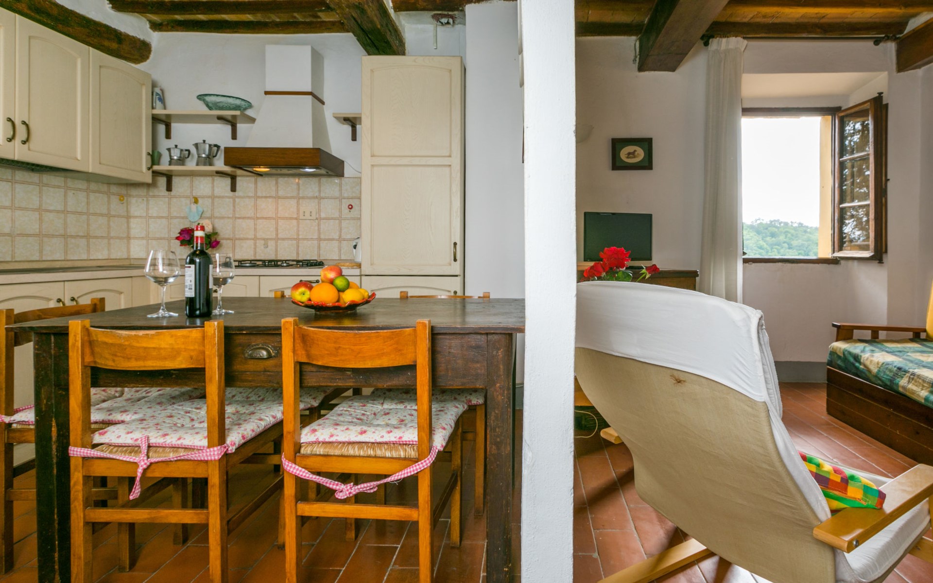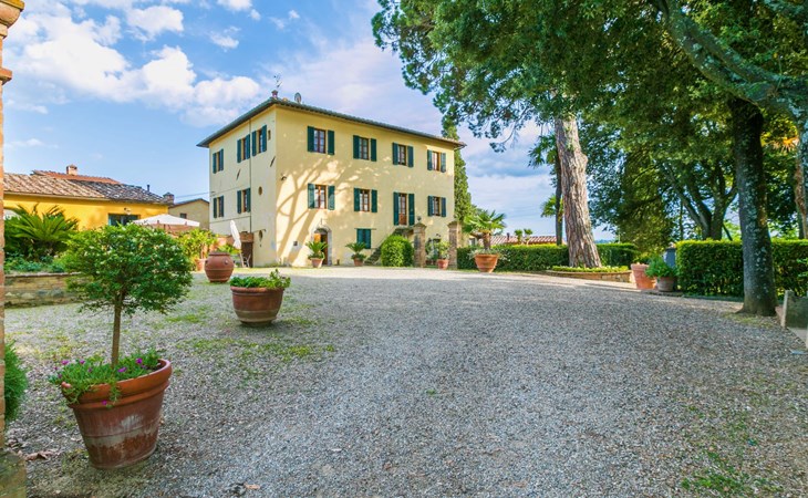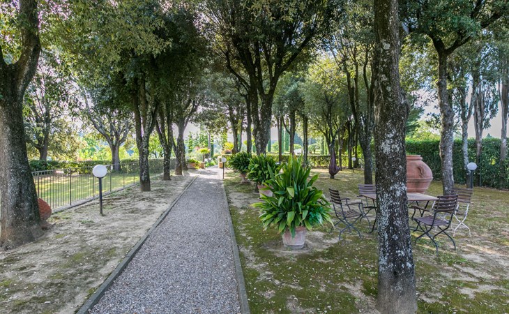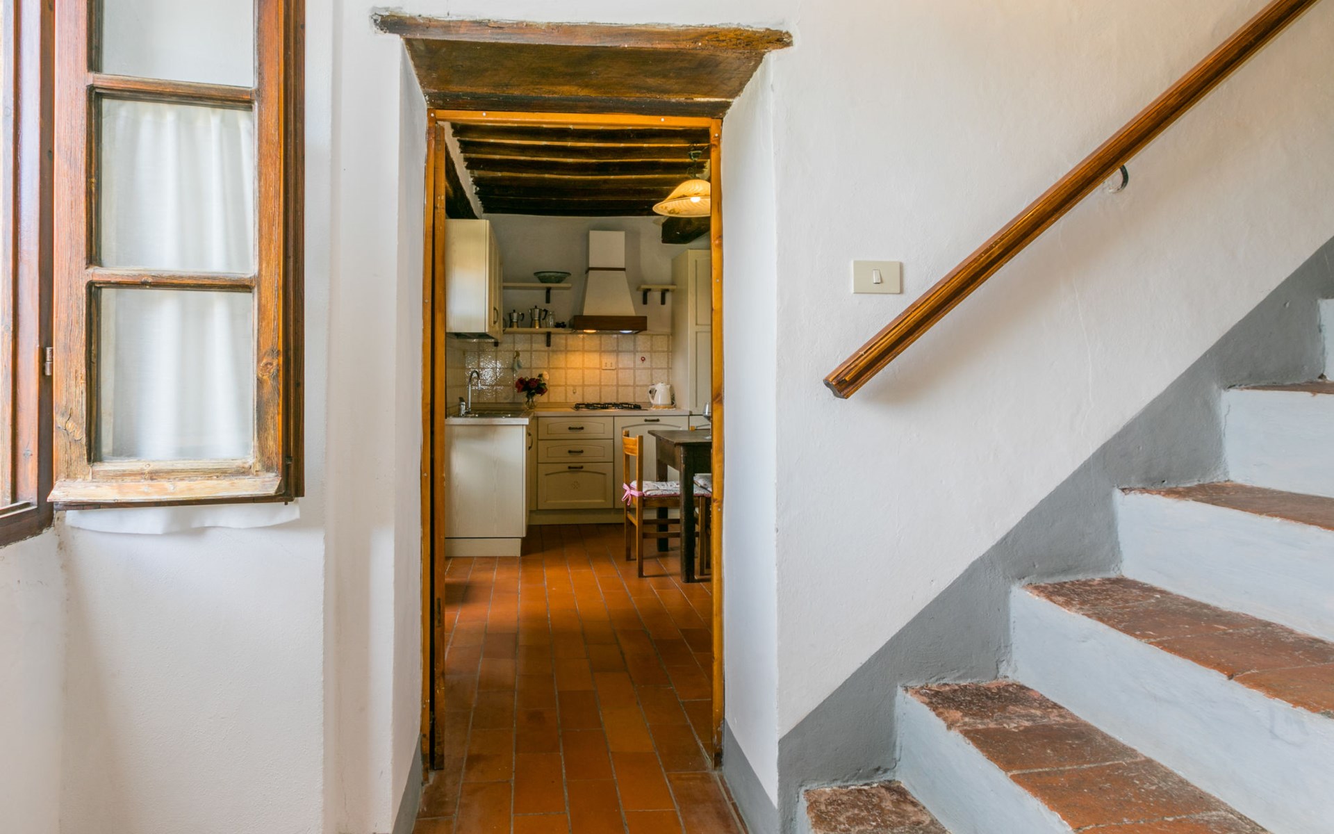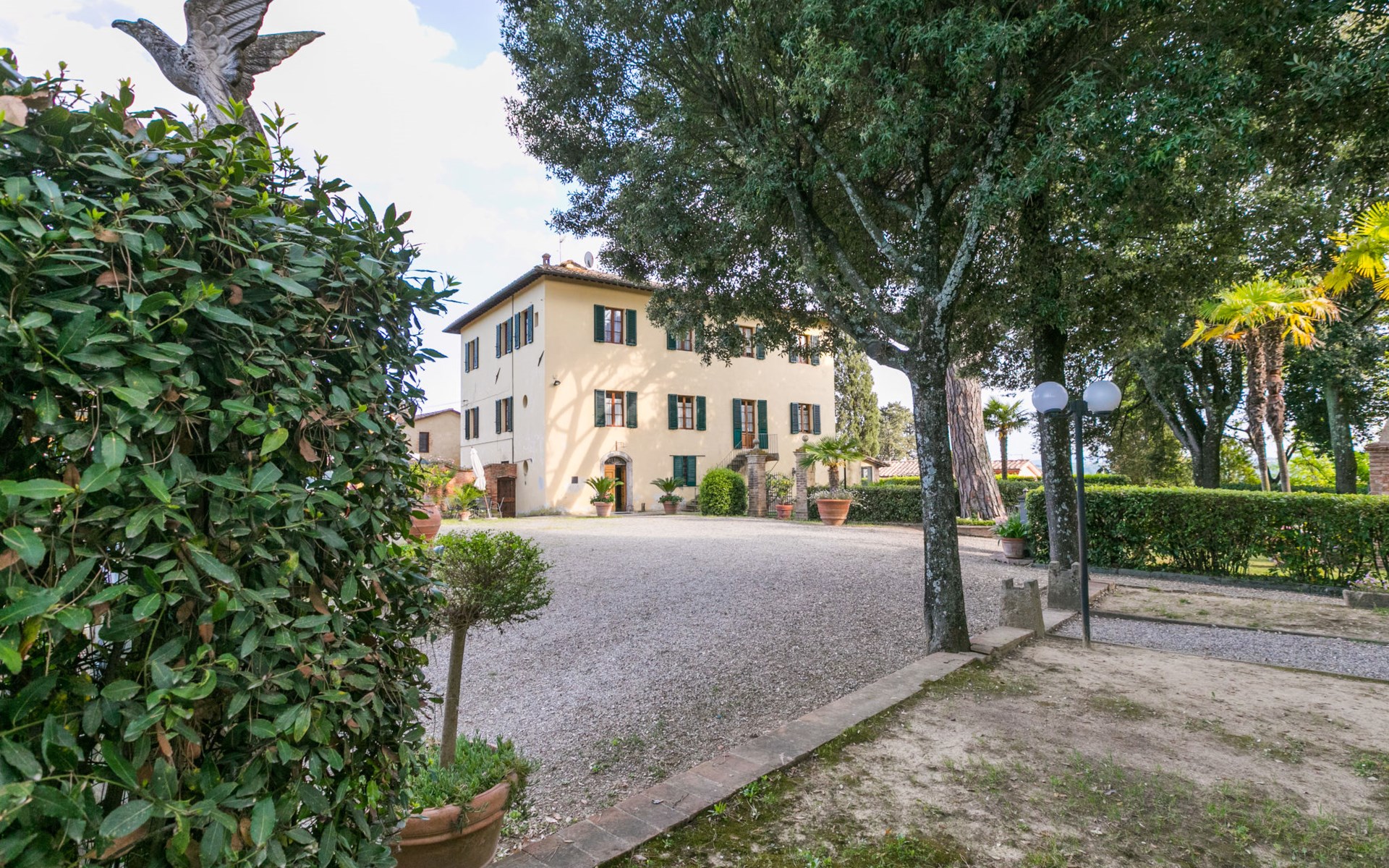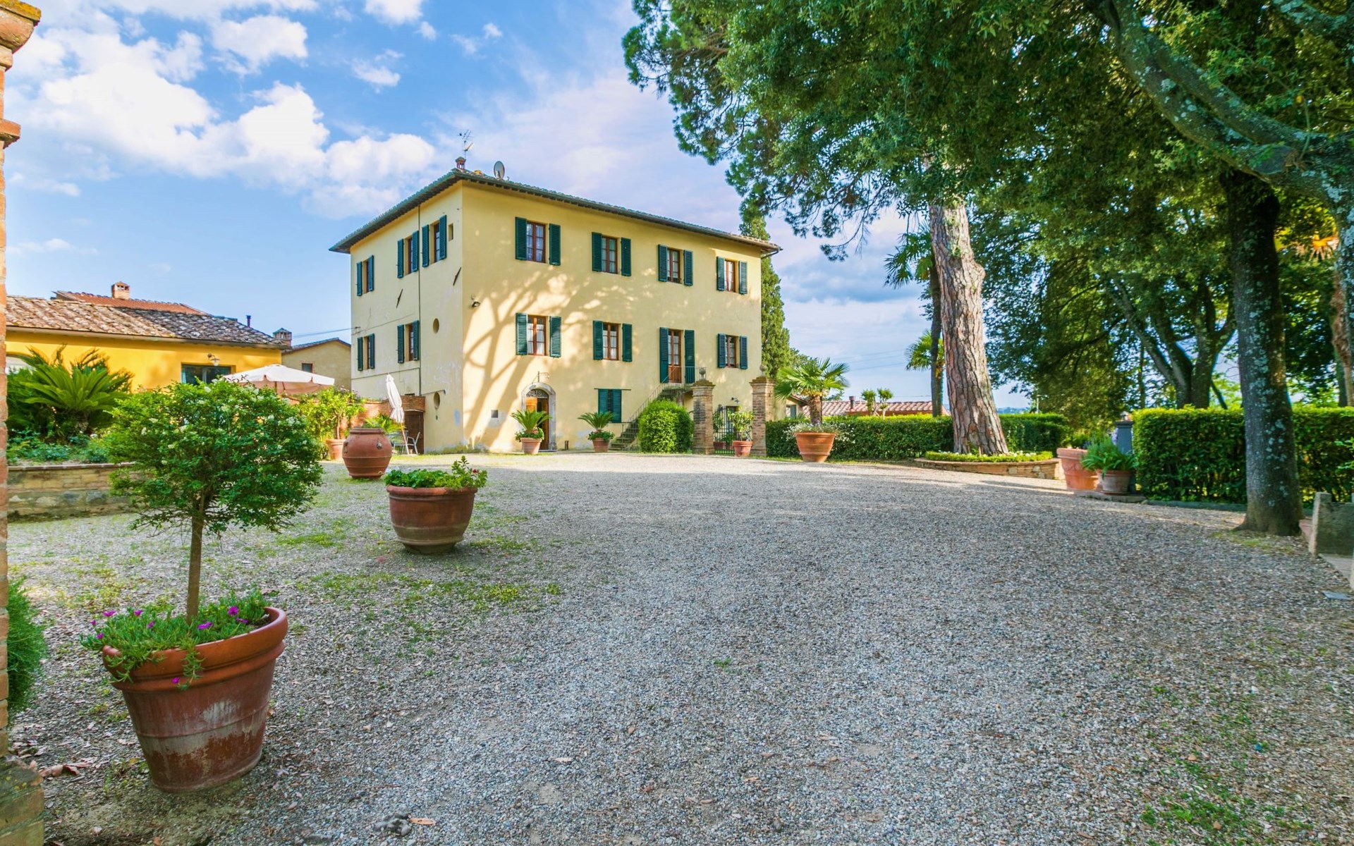 Cosy country house "Giuggiolo", surrounded by trees and vineyards. 3 houses in the residence. 4 apartments in the residence. In the hamlet Casaglia 4 km from the centre of Poggibonsi, 11 km from the centre of San Gimignano, 30 km from the centre of Siena, in a sunny position, in the countryside. For shared use: large, beautiful garden 5'000 m2 (fenced) with plants and trees, meadow, swimming pool (14 x 7 m, depth 120 - 160 cm, seasonal availability: 02.May. - 03.Oct.). Terrace, pool maintenance by the owner/gardener. Heating to be paid on the spot (01.Nov. - 31.Mar.). 800 m long motor access to the grounds (via unmade road). Parking on the premises. Supermarket 2 km, railway station "Poggibonsi" 4 km. Please note: residence with electric gates. The owner lives in the same residence. Wine tasting in a wine cellar near San Gimignano 17 km away 1x per stay included (on request).
