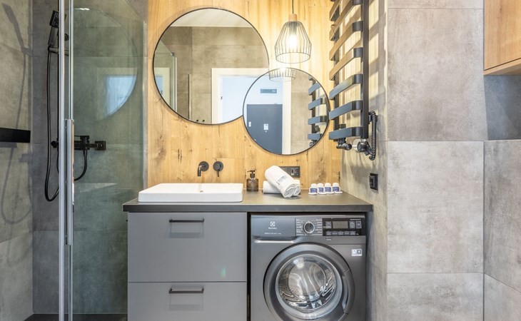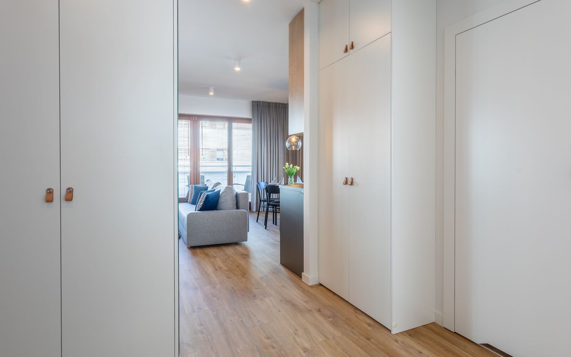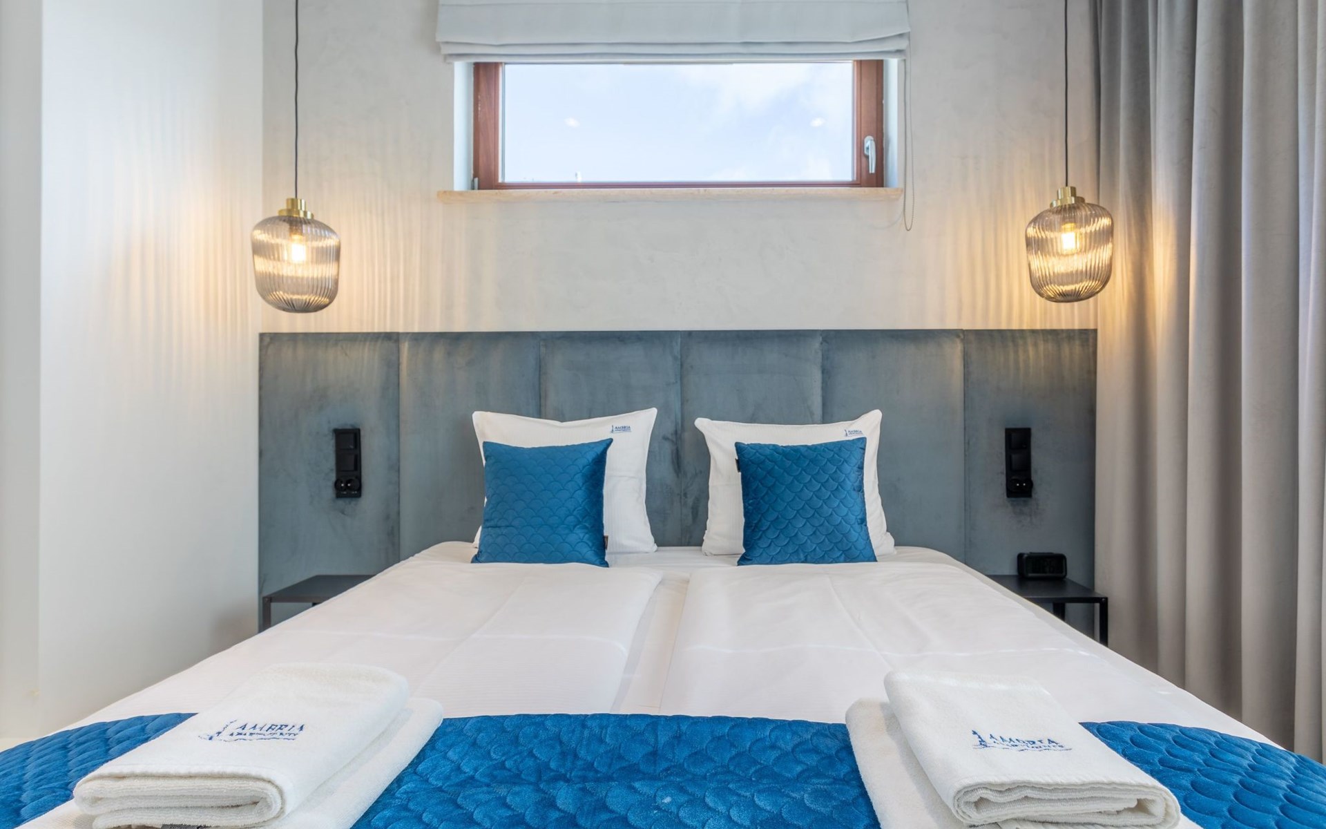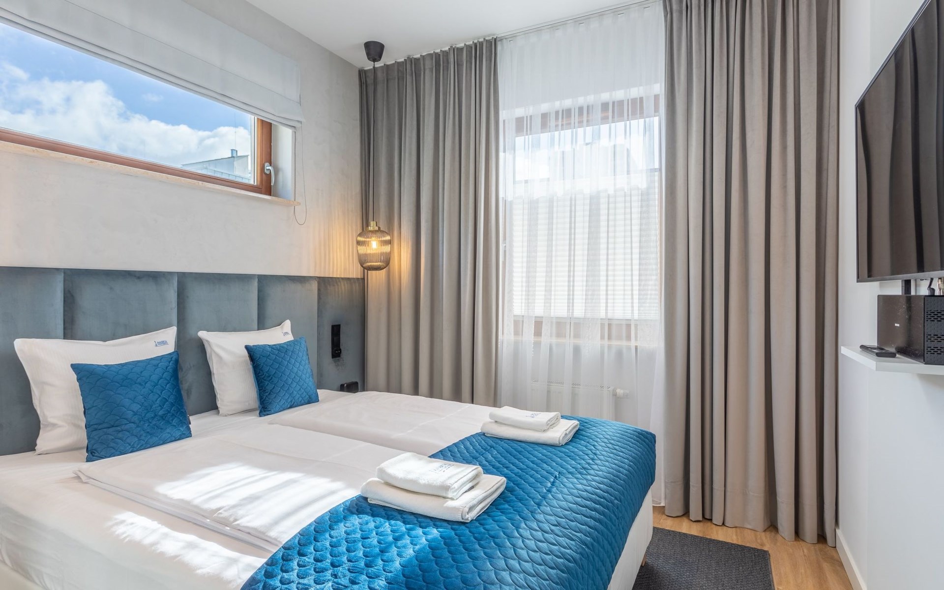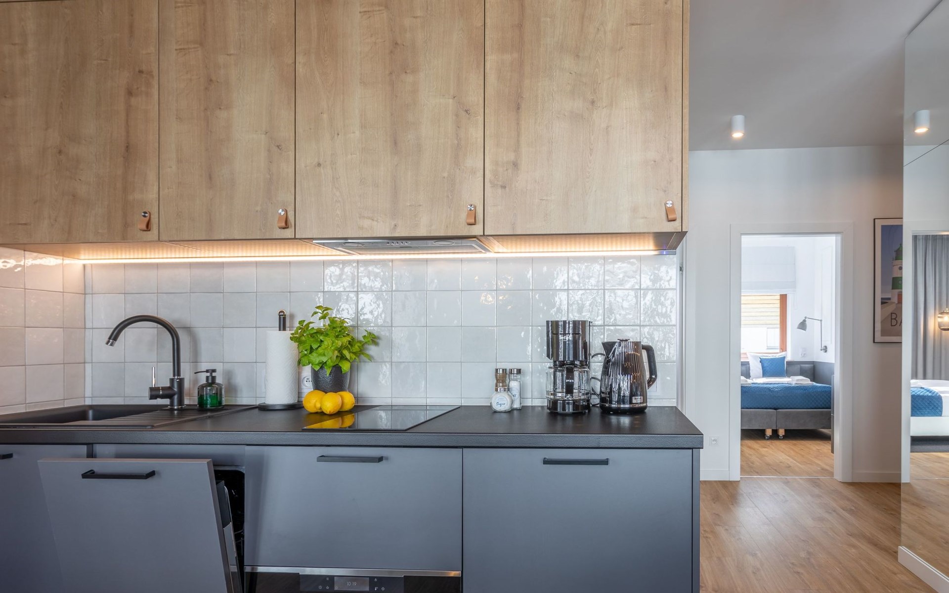 It is an extremely elegant and fully equipped flat with two bedrooms, a living room with a kitchenette and a bathroom with a total area of 56 m2. It is a modern interior with character, designed for the comfort of the residents, where functionality and originality play a significant role, as simplicity is broken by sophisticated accessories and intense but natural colours. As a result, the interior pulsates with energy, encourages coastal activities and prolongs anchoring in Świnoujście.