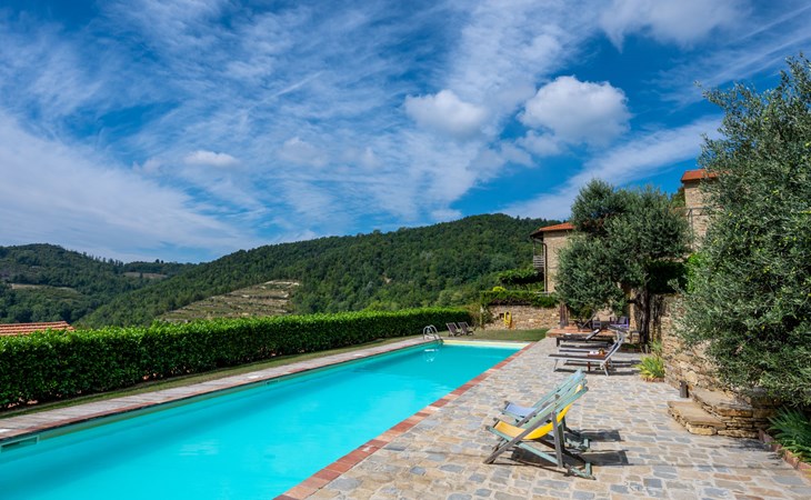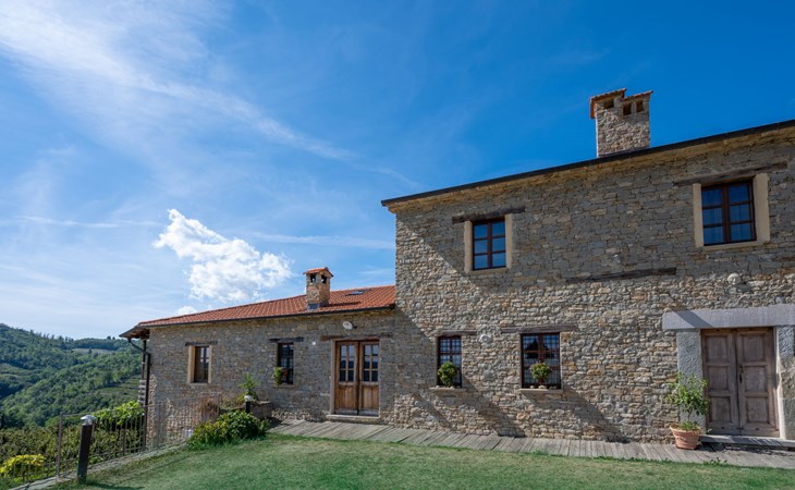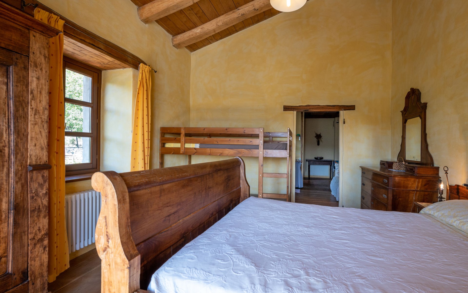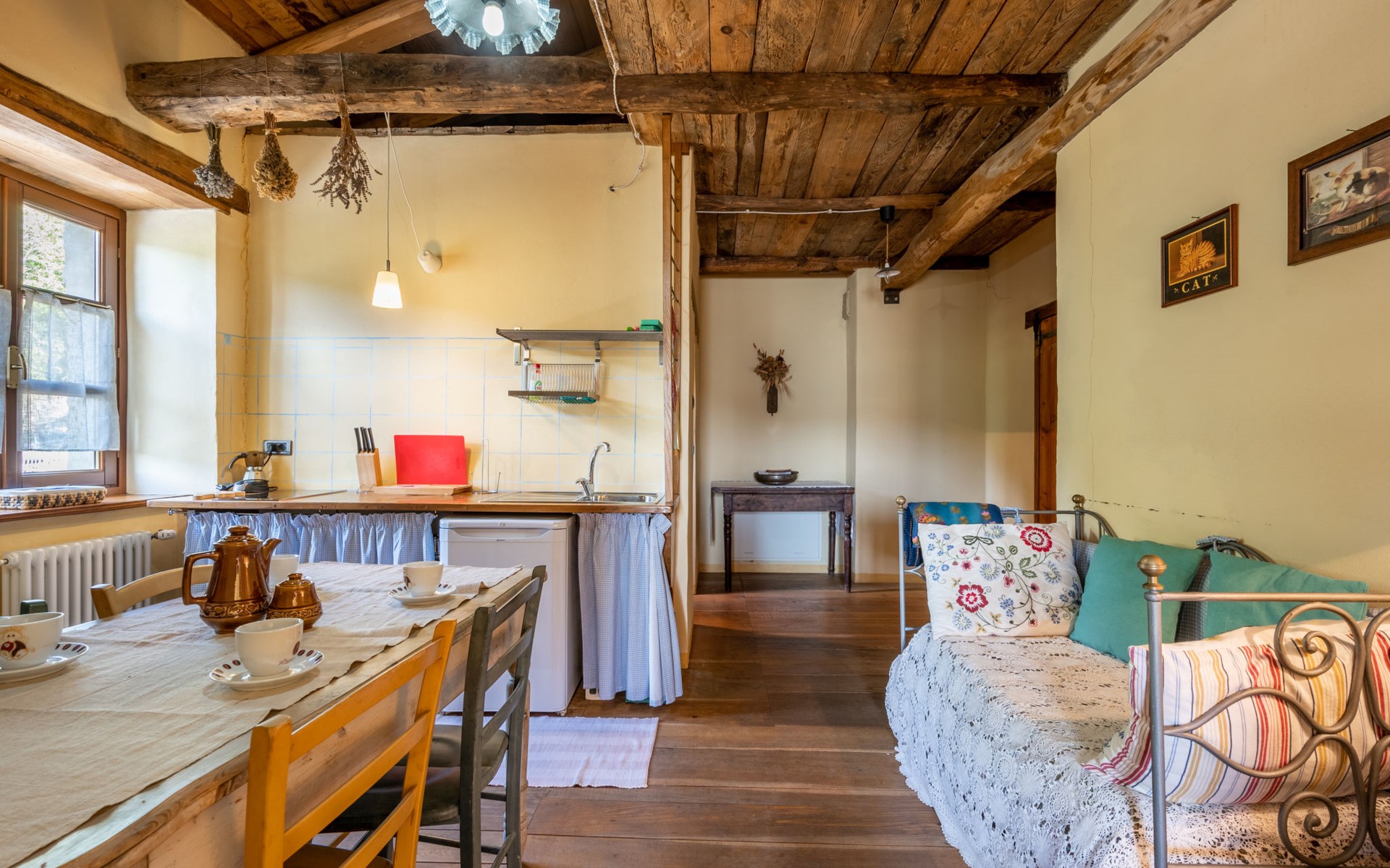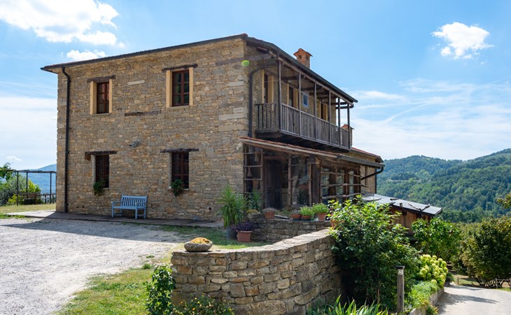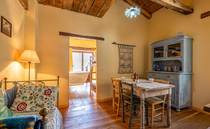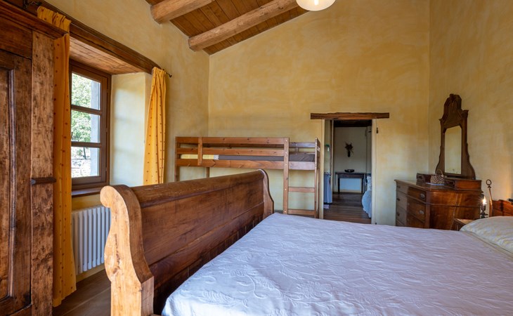 Rustic agricultural estate "Cascina Barroero", 650 m a.s.l.. 4 apartments in the residence. 5 km from the centre of Cortemilia, 30 km from the centre of Alba, 35 km from the centre of Acqui Terme, 55 km from the sea, in the countryside, in the woods. For shared use: property 10'000 m2 with lawn and trees, meadow, lawn for sunbathing, swimming pool (19 x 4 m, depth 120 - 180 cm, seasonal availability: 01.May. - 31.Oct.). Pergola, garden furniture. In the house: washing machine (extra), tumble dryer (for shared use, extra). 4 km long very narrow motor access. Parking (for 4 cars) at the house on the premises. E-charging station. Shop 5 km, supermarket 5 km, bus stop "Cravanzana" 5 km, railway station "Alba" 30 km. Local sale of farm products. Please note: the owner lives on the same property. Animals in the neighbourhood.