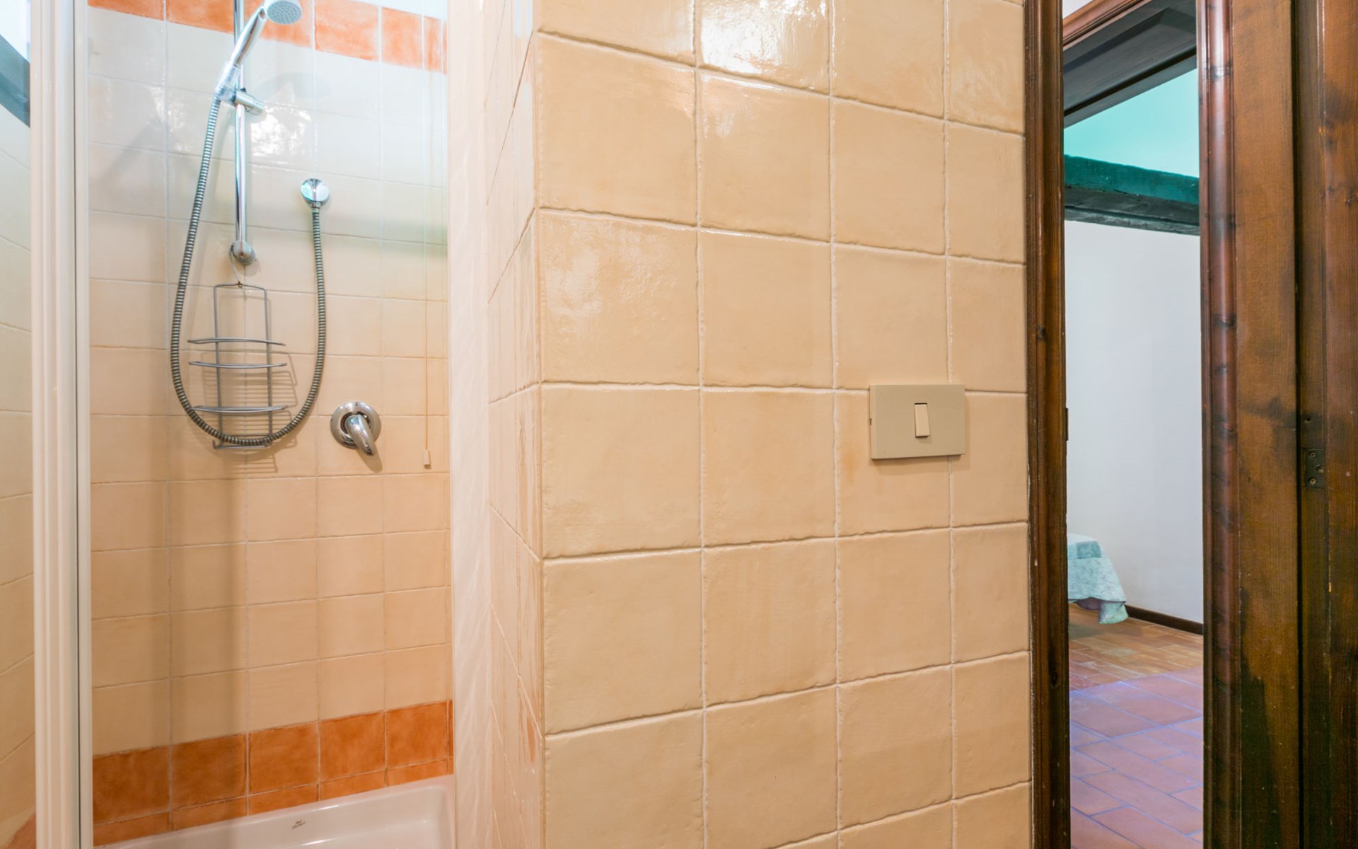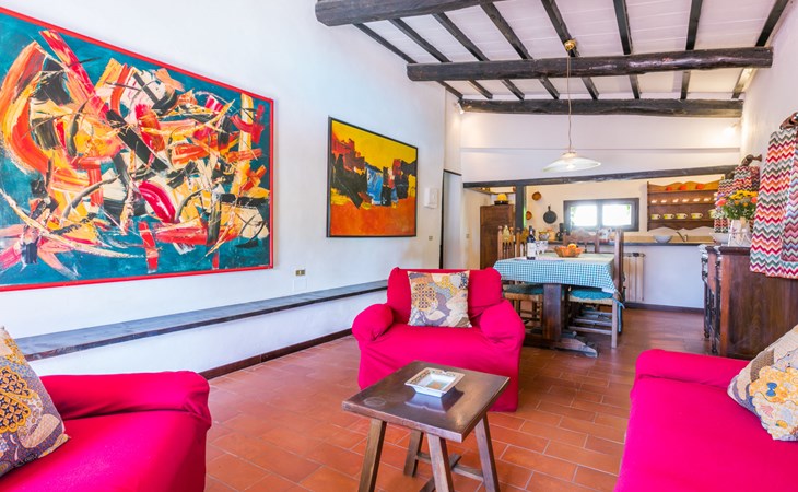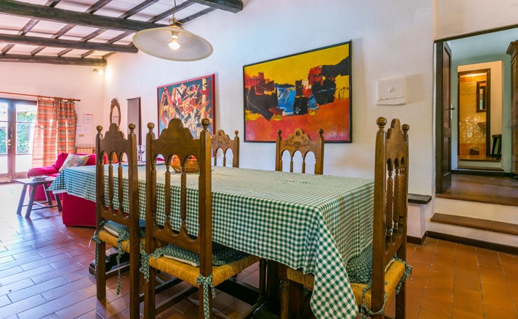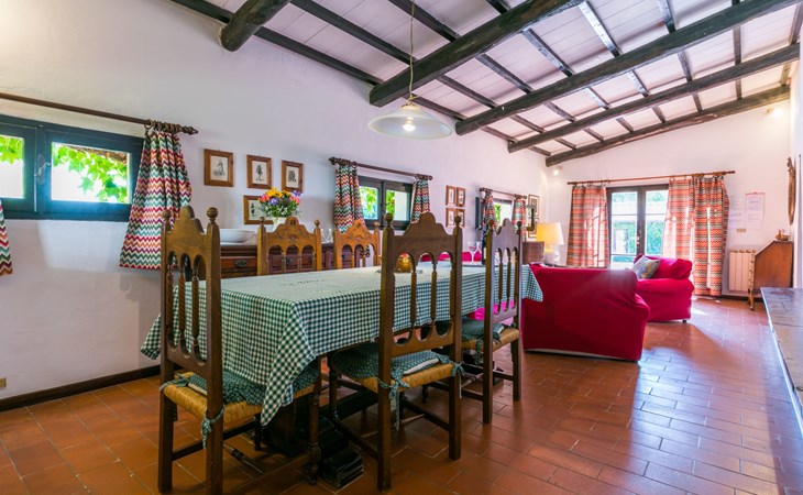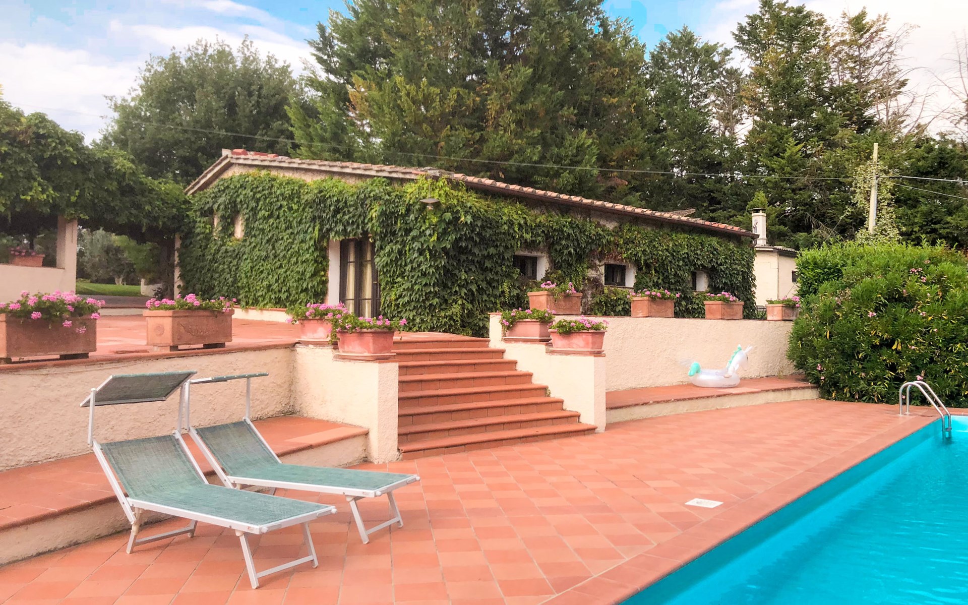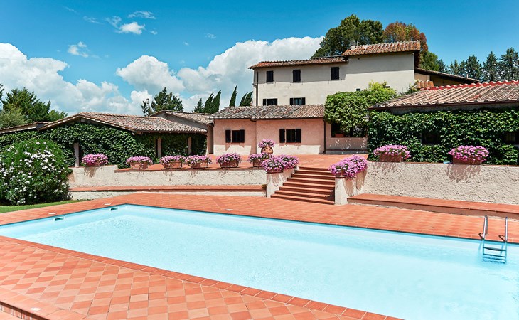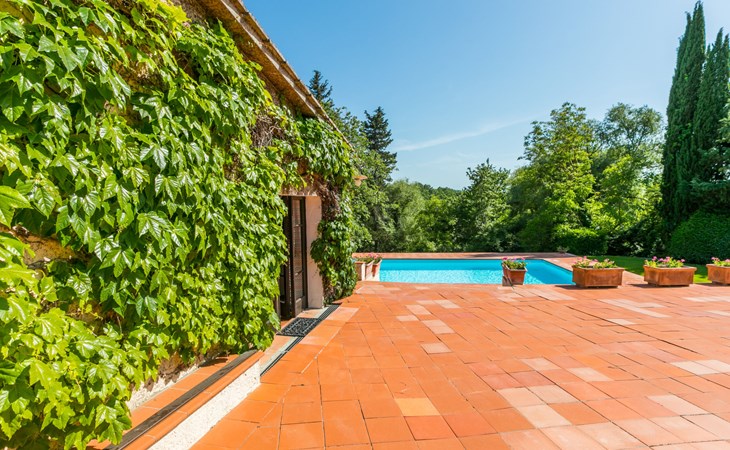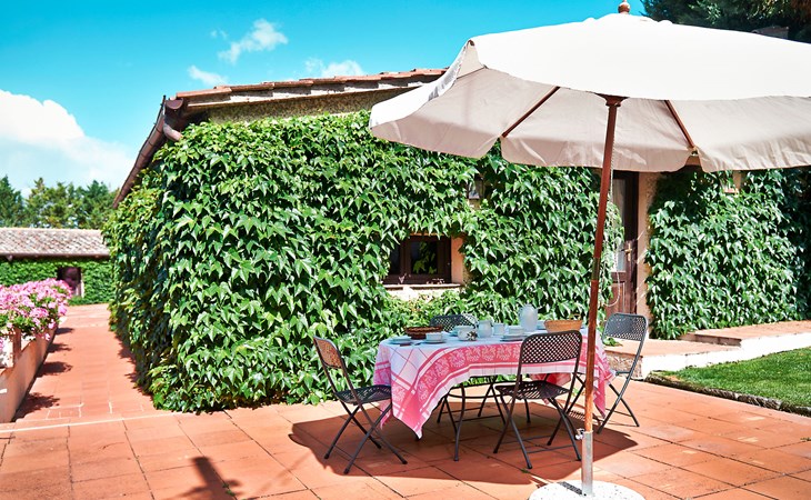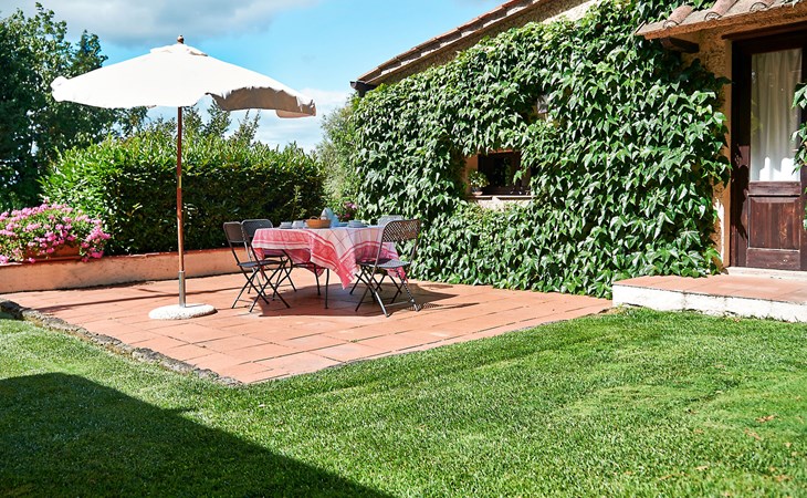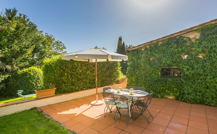 Agriturismo "Bardeggiano", 2 storeys, surrounded by trees and fields. 5 houses in the residence. 9 apartments in the residence. 4 km from the centre of Colle di Val d'Elsa, 8.5 km from the centre of Monteriggioni, 26 km from the centre of Siena, in a central, secluded position, 70 km from the sea, in the countryside. For shared use: well-kept garden 12 ha (fenced) with plants and trees, swimming pool (15 x 6 m, depth 150 cm, seasonal availability: 13.May. - 04.Nov.). Outdoor shower, terrace, barbecue, pool maintenance by the owner/gardener. In the complex: WiFi, washing machine (for shared use, extra). Linen change (suppl. charge extra). Towel change (suppl. charge extra). Roofed, parking on the premises. Grocery 1 km, supermarket 4 km, restaurant 4 km, bakery 1 km, bus stop 2 km, railway station "Colle di Val d'Elsa" 4 km, sandy beach "Follonica" 88 km. Nearby attractions: San Gimignano 20 km, Firenze 52 km, Volterra 55 km. Please note: baby equipment (included). Residence with electric gates. The owner lives on the same property. All houses/apartments are individually designed/furnished.