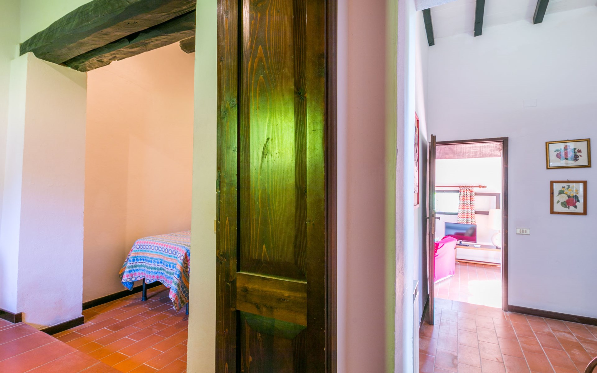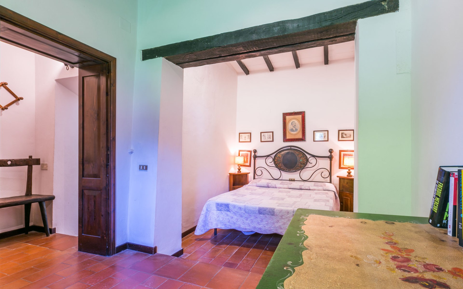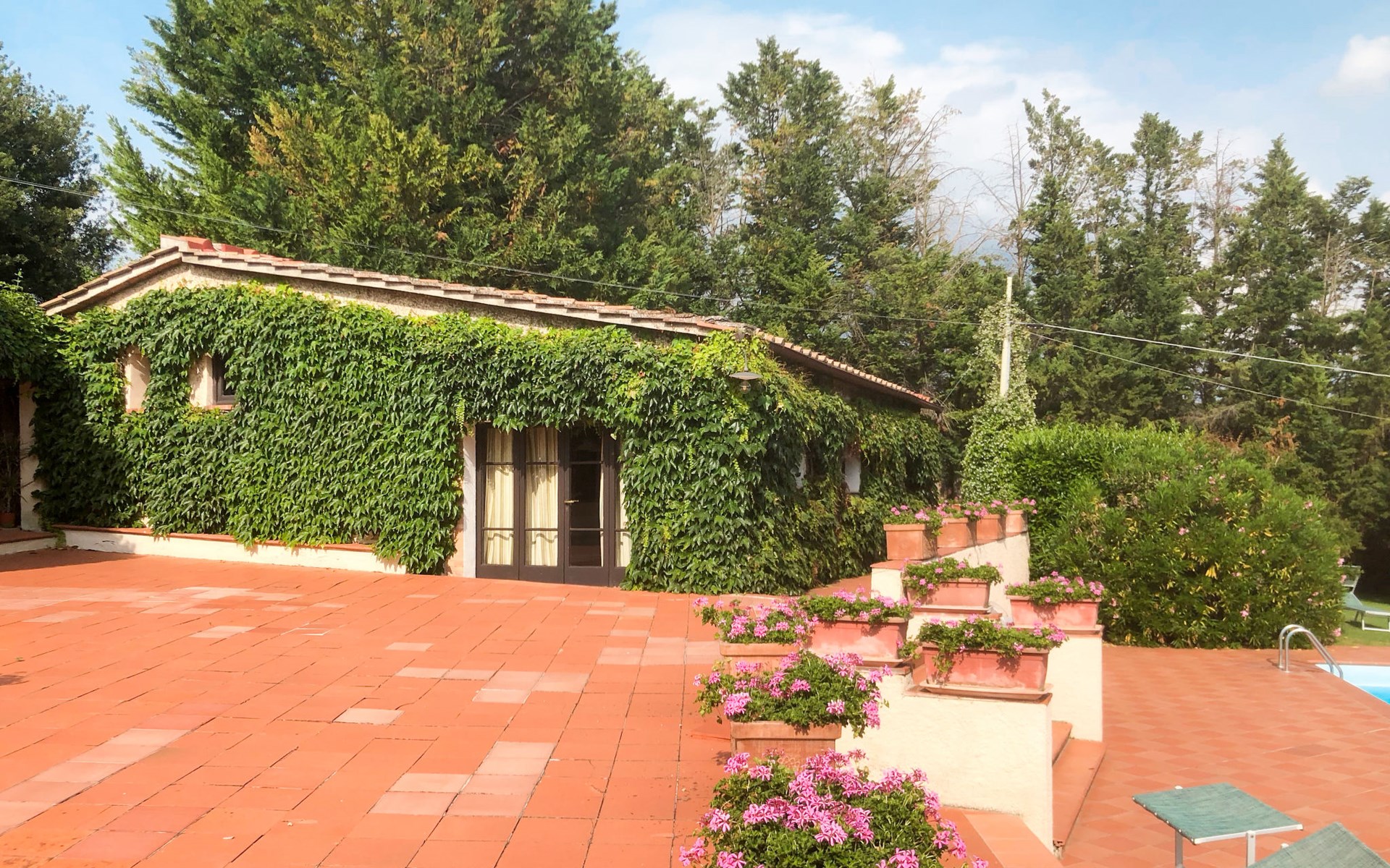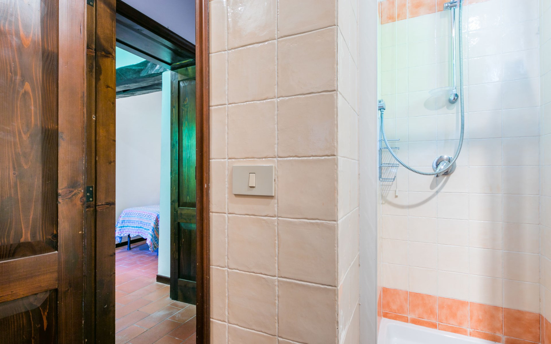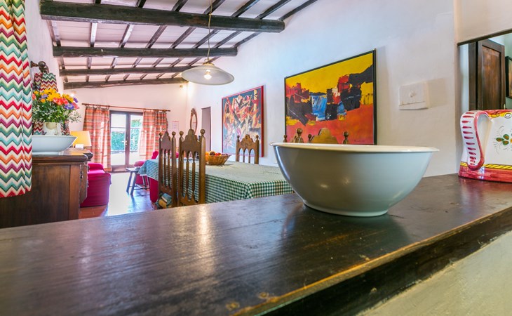 Agriturismo "Bardeggiano", 2 storeys, surrounded by trees and fields. 5 houses in the residence. 9 apartments in the residence. 4 km from the centre of Colle di Val d'Elsa, 8.5 km from the centre of Monteriggioni, 26 km from the centre of Siena, in a central, secluded position, 70 km from the sea, in the countryside. For shared use: well-kept garden 12 ha (fenced) with plants and trees, swimming pool (15 x 6 m, depth 150 cm, seasonal availability: 13.May. - 04.Nov.). Outdoor shower, terrace, barbecue, pool maintenance by the owner/gardener. In the complex: WiFi, washing machine (for shared use, extra). Linen change (suppl. charge extra). Towel change (suppl. charge extra). Roofed, parking on the premises. Grocery 1 km, supermarket 4 km, restaurant 4 km, bakery 1 km, bus stop 2 km, railway station "Colle di Val d'Elsa" 4 km, sandy beach "Follonica" 88 km. Nearby attractions: San Gimignano 20 km, Firenze 52 km, Volterra 55 km. Please note: baby equipment (included). Residence with electric gates. The owner lives on the same property. All houses/apartments are individually designed/furnished.