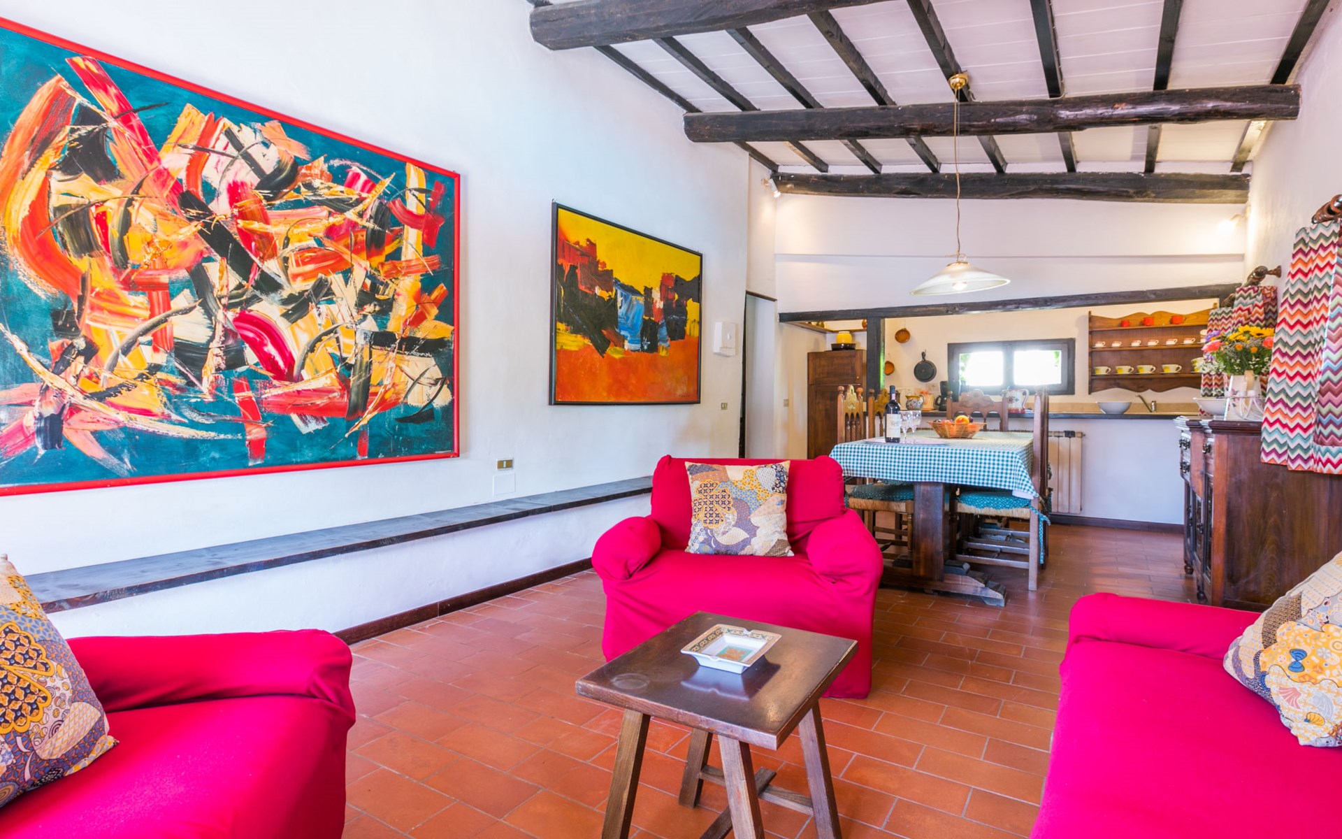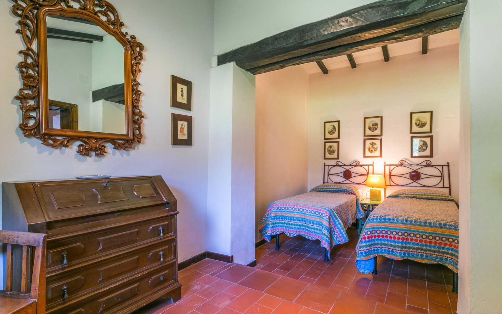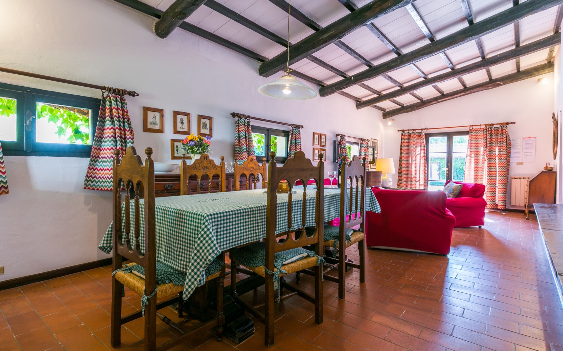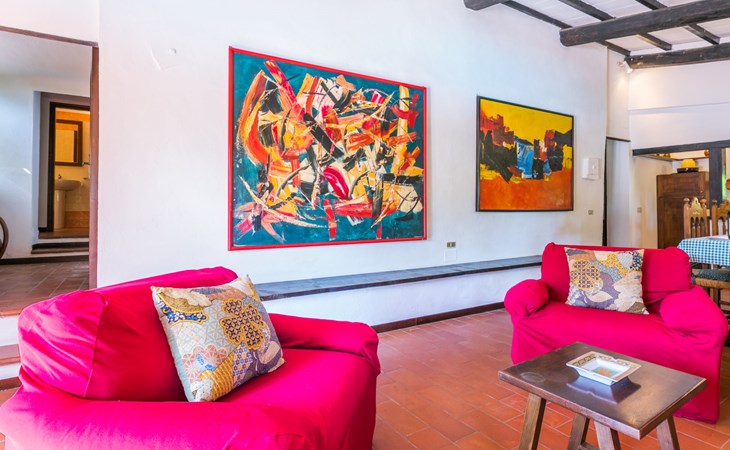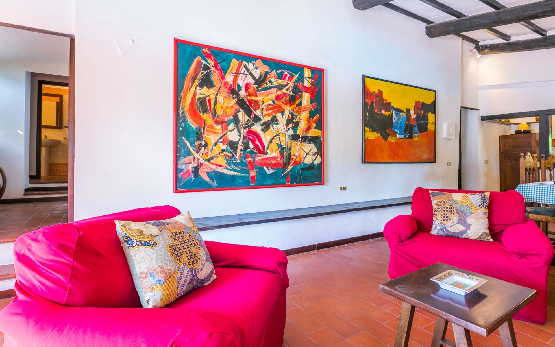 Agriturismo "Bardeggiano", 2 storeys, surrounded by trees and fields. 5 houses in the residence. 9 apartments in the residence. 4 km from the centre of Colle di Val d'Elsa, 8.5 km from the centre of Monteriggioni, 26 km from the centre of Siena, in a central, secluded position, 70 km from the sea, in the countryside. For shared use: well-kept garden 12 ha (fenced) with plants and trees, swimming pool (15 x 6 m, depth 150 cm, seasonal availability: 13.May. - 04.Nov.). Outdoor shower, terrace, barbecue, pool maintenance by the owner/gardener. In the complex: WiFi, washing machine (for shared use, extra). Linen change (suppl. charge extra). Towel change (suppl. charge extra). Roofed, parking on the premises. Grocery 1 km, supermarket 4 km, restaurant 4 km, bakery 1 km, bus stop 2 km, railway station "Colle di Val d'Elsa" 4 km, sandy beach "Follonica" 88 km. Nearby attractions: San Gimignano 20 km, Firenze 52 km, Volterra 55 km. Please note: baby equipment (included). Residence with electric gates. The owner lives on the same property. All houses/apartments are individually designed/furnished.