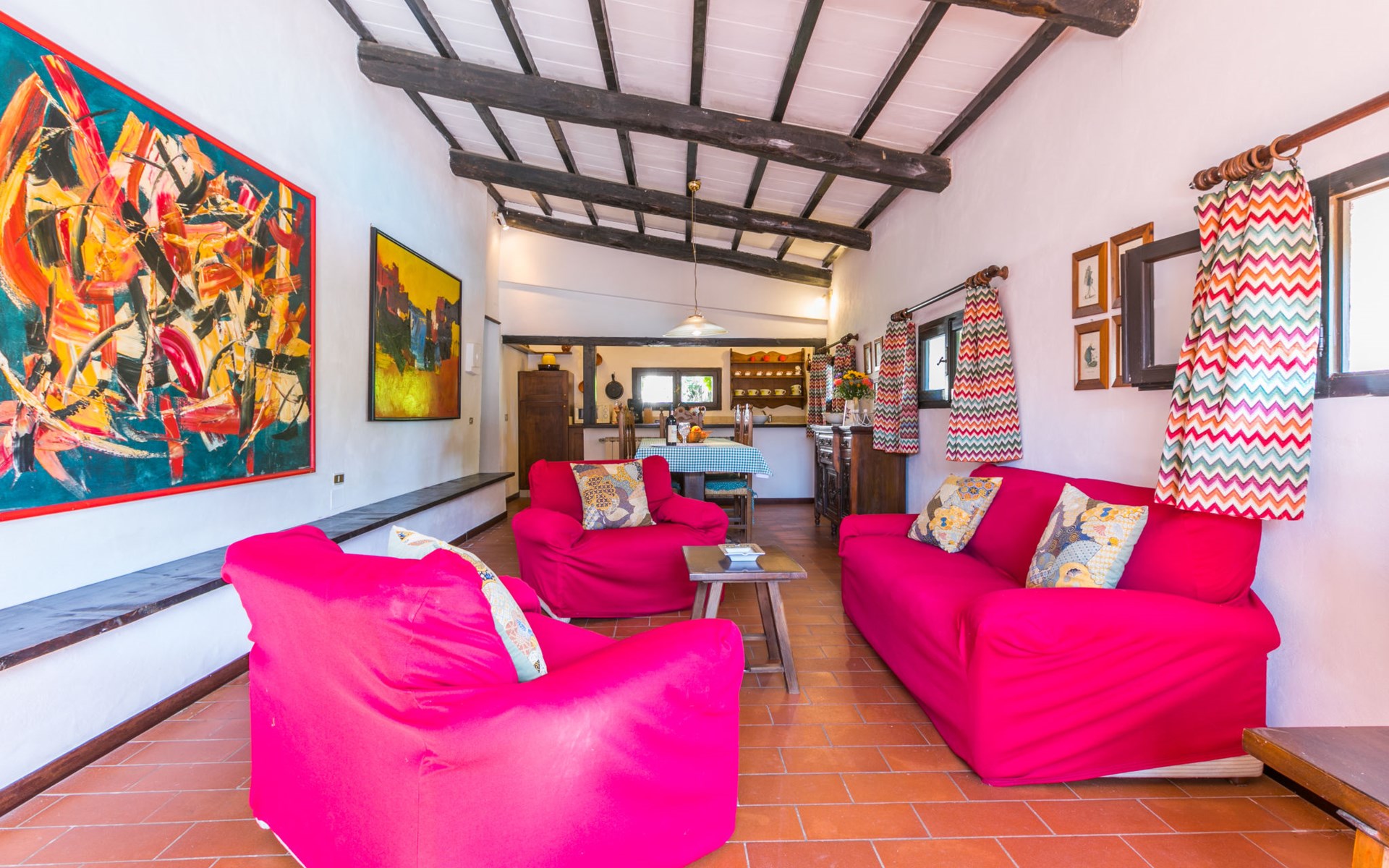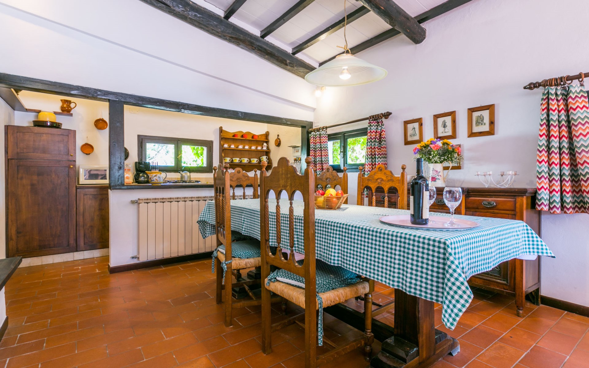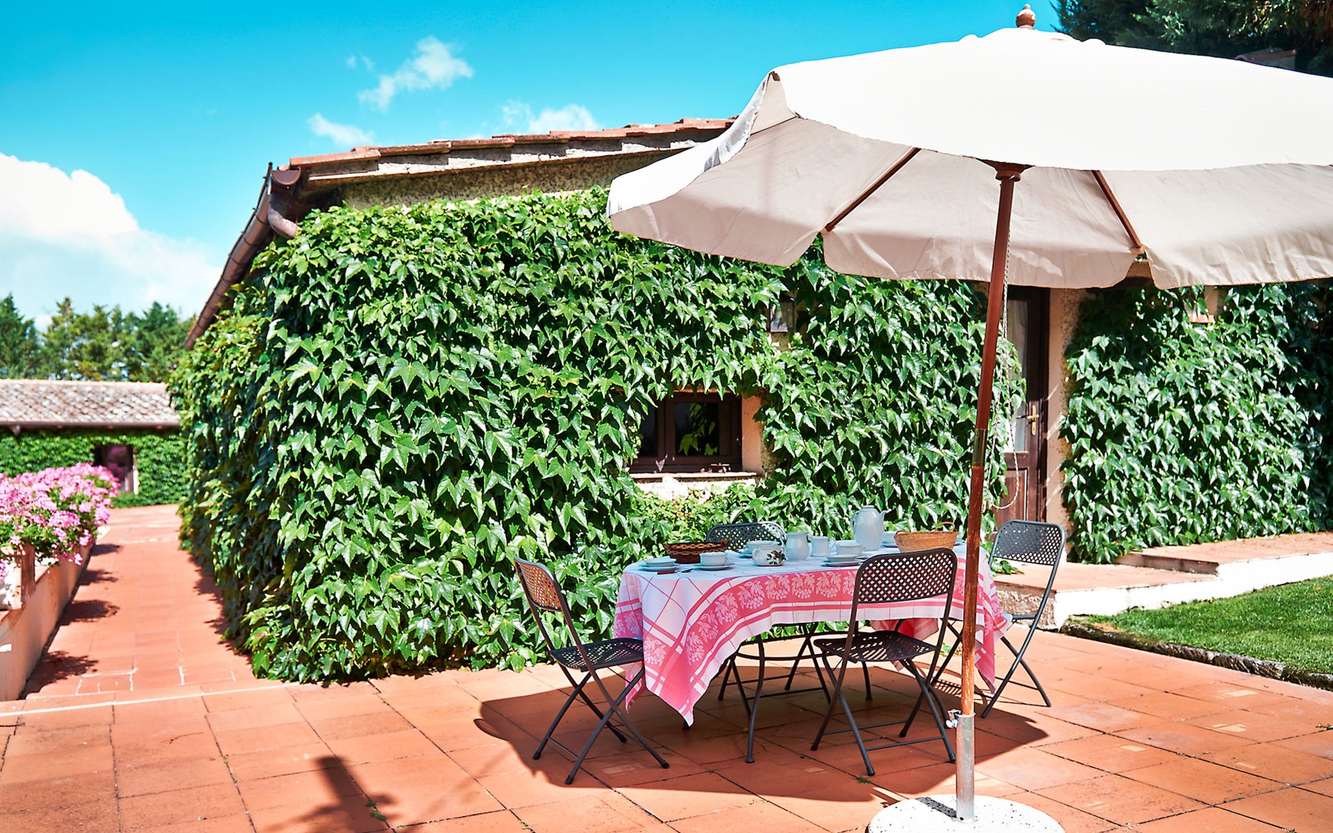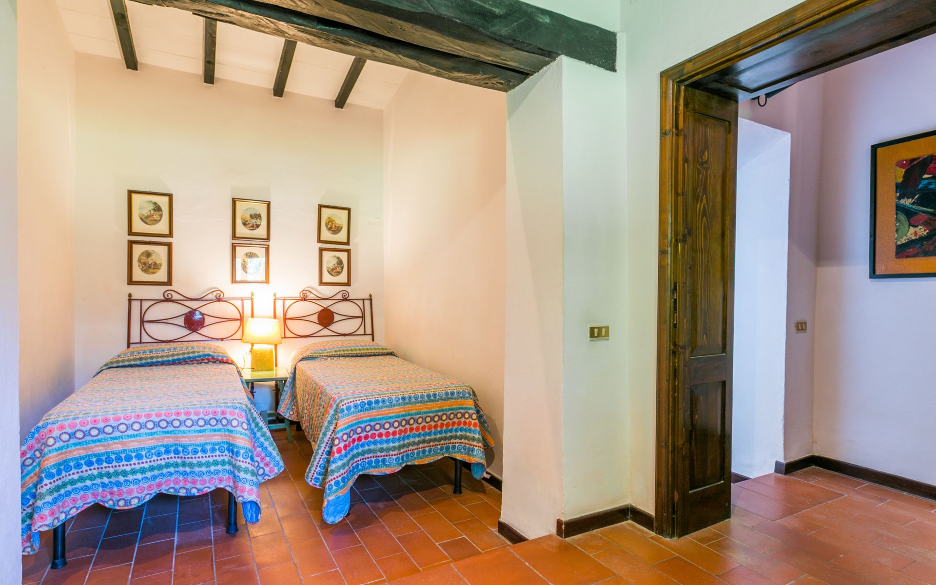 Agriturismo "Bardeggiano", 2 storeys, surrounded by trees and fields. 5 houses in the residence. 9 apartments in the residence. 4 km from the centre of Colle di Val d'Elsa, 8.5 km from the centre of Monteriggioni, 26 km from the centre of Siena, in a central, secluded position, 70 km from the sea, in the countryside. For shared use: well-kept garden 12 ha (fenced) with plants and trees, swimming pool (15 x 6 m, depth 150 cm, seasonal availability: 13.May. - 04.Nov.). Outdoor shower, terrace, barbecue, pool maintenance by the owner/gardener. In the complex: WiFi, washing machine (for shared use, extra). Linen change (suppl. charge extra). Towel change (suppl. charge extra). Roofed, parking on the premises. Grocery 1 km, supermarket 4 km, restaurant 4 km, bakery 1 km, bus stop 2 km, railway station "Colle di Val d'Elsa" 4 km, sandy beach "Follonica" 88 km. Nearby attractions: San Gimignano 20 km, Firenze 52 km, Volterra 55 km. Please note: baby equipment (included). Residence with electric gates. The owner lives on the same property. All houses/apartments are individually designed/furnished.