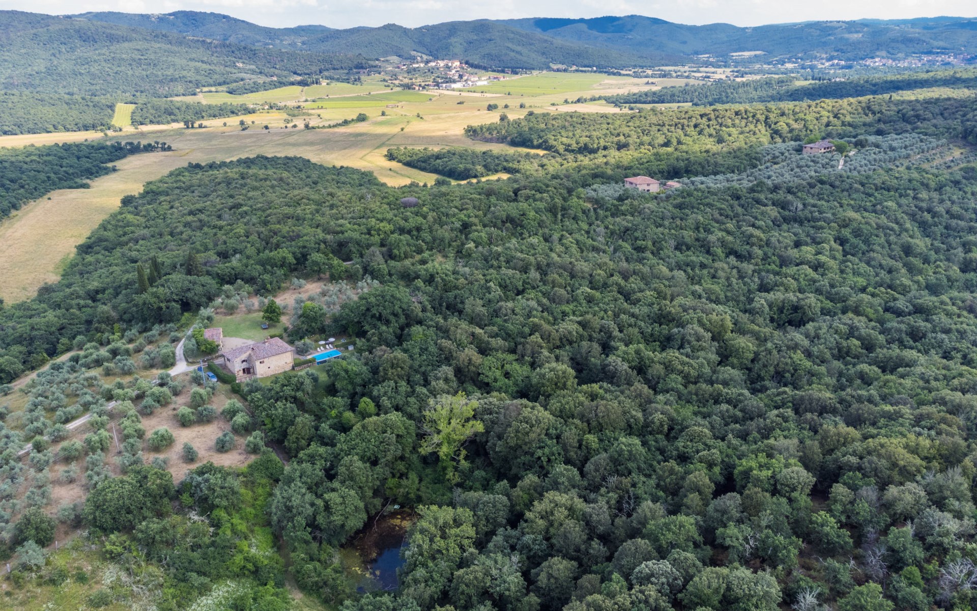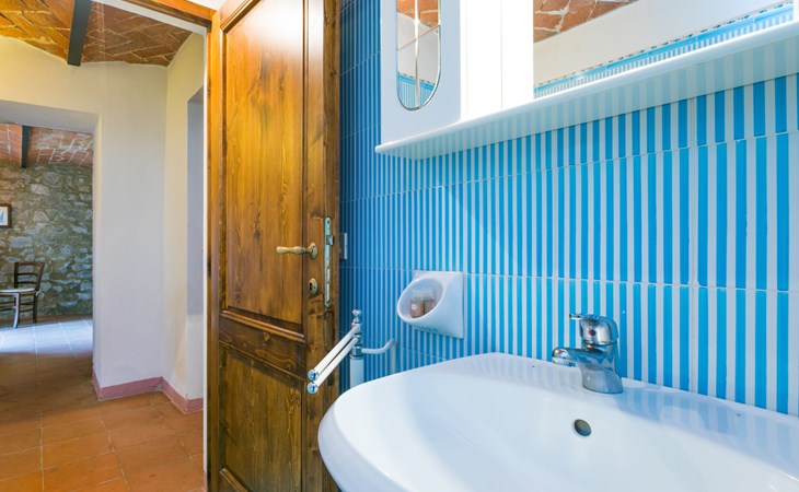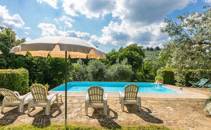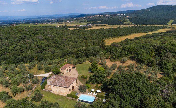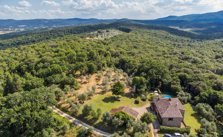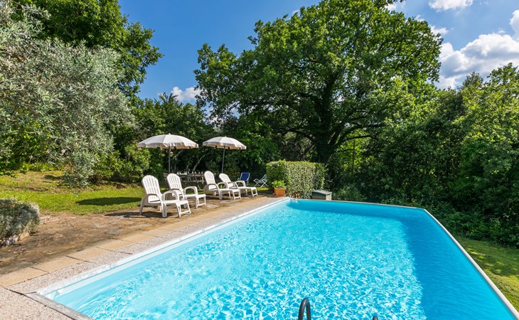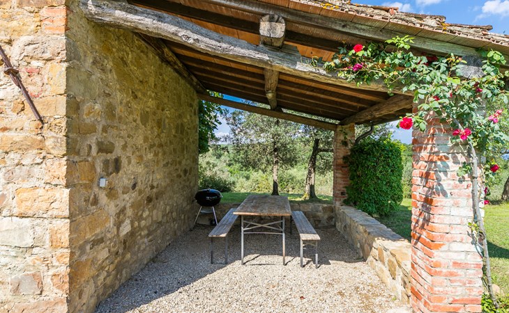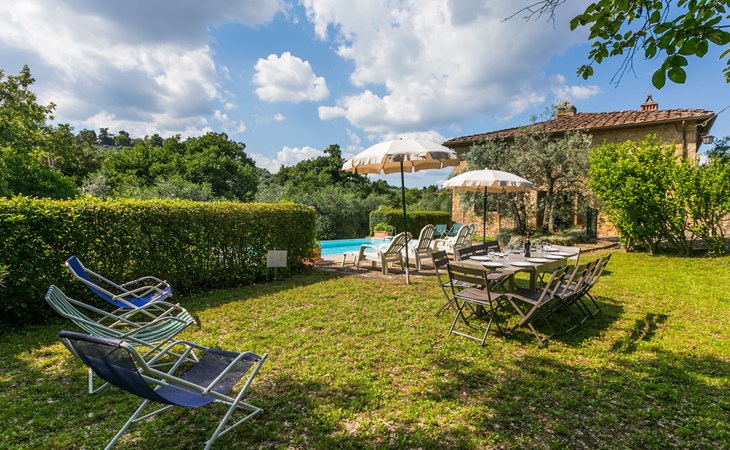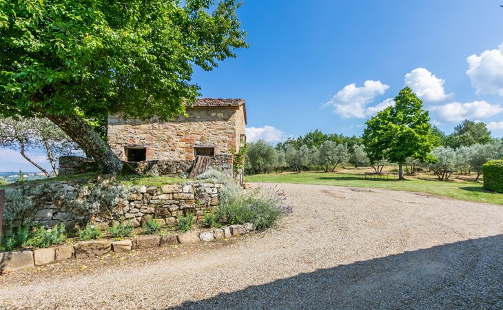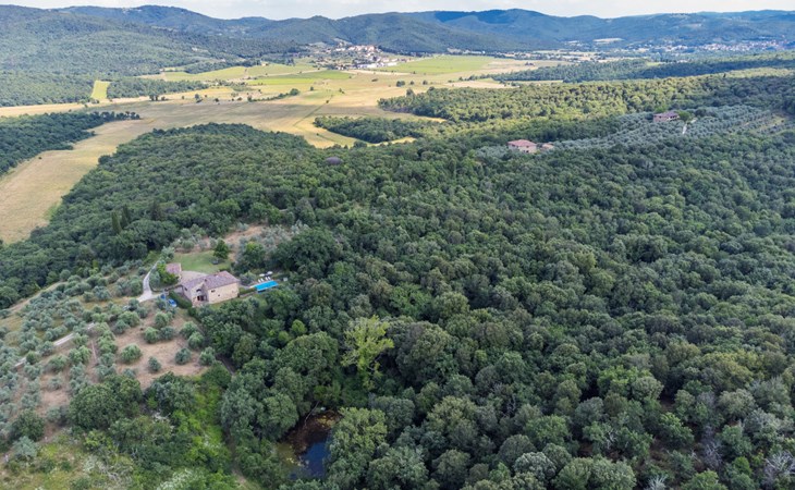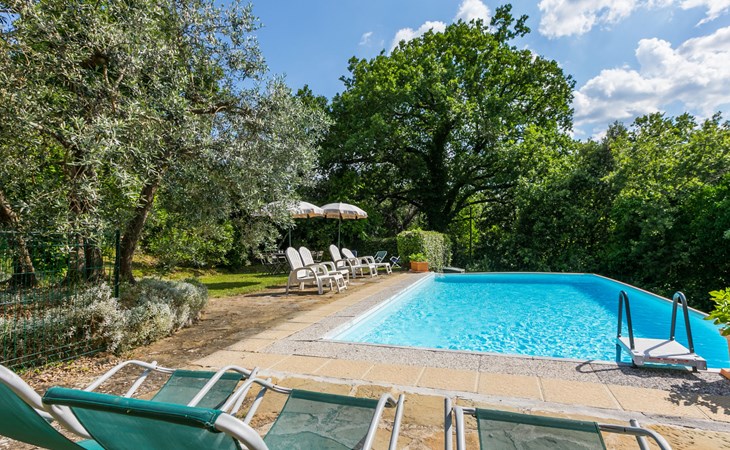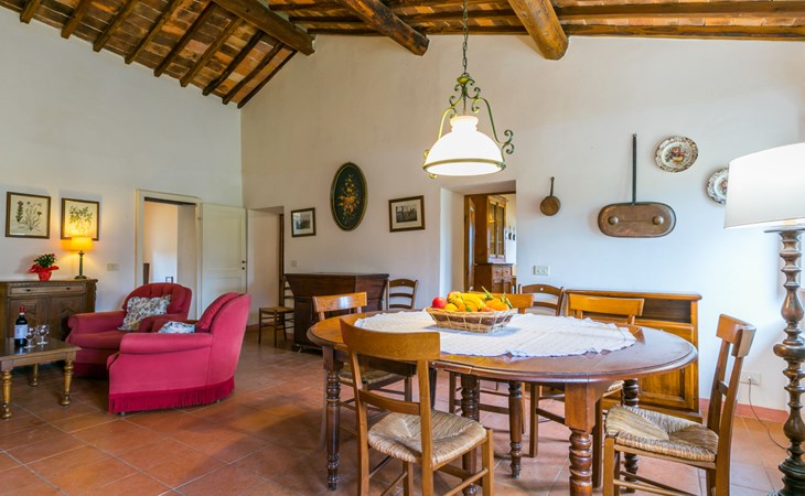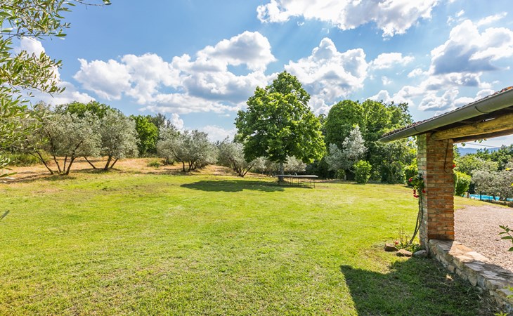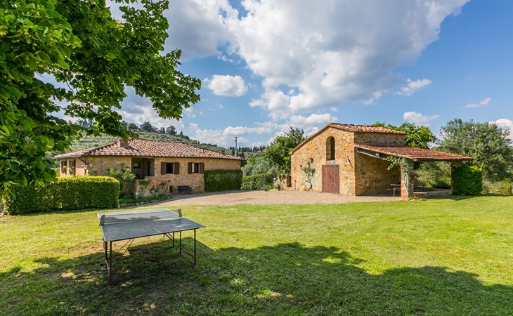 "rustico" cottage "Il Laghetto". 4 km from the centre of Pergine Valdarno, 25 km from the centre of Arezzo, 35 km from the centre of Siena, in a quiet position. Private: property, trees, natural garden, meadow, swimming pool (above ground) (8 x 4 m, seasonal availability: 15.May. - 01.Oct.). Table tennis. Motor access (2.9 km via unmade road). Parking on the premises. Shop 4 km, supermarket 5 km, railway station "Laterina" 3 km. Nearby attractions: Castello di Montozzi reception 1.8 km. Local sale of farm products.