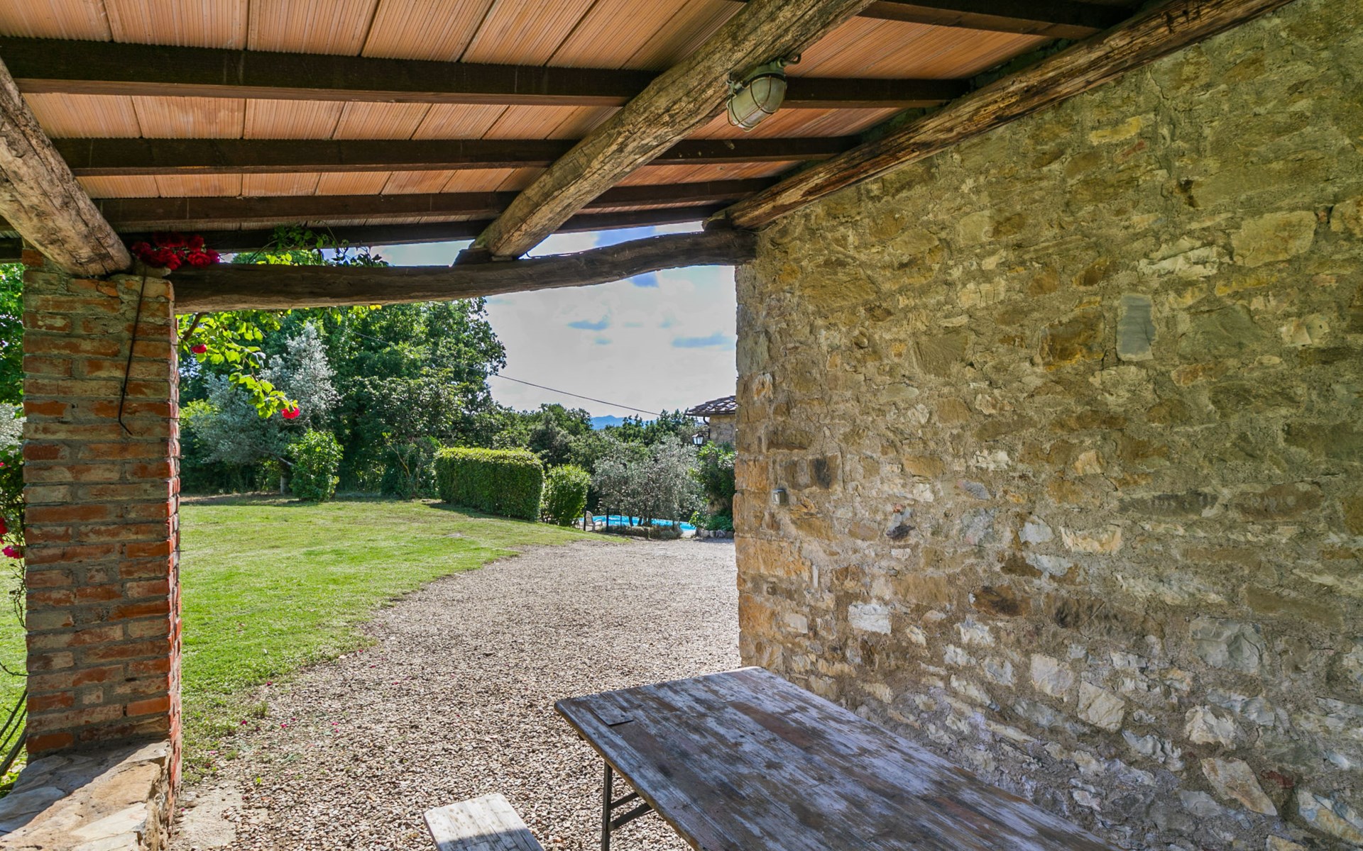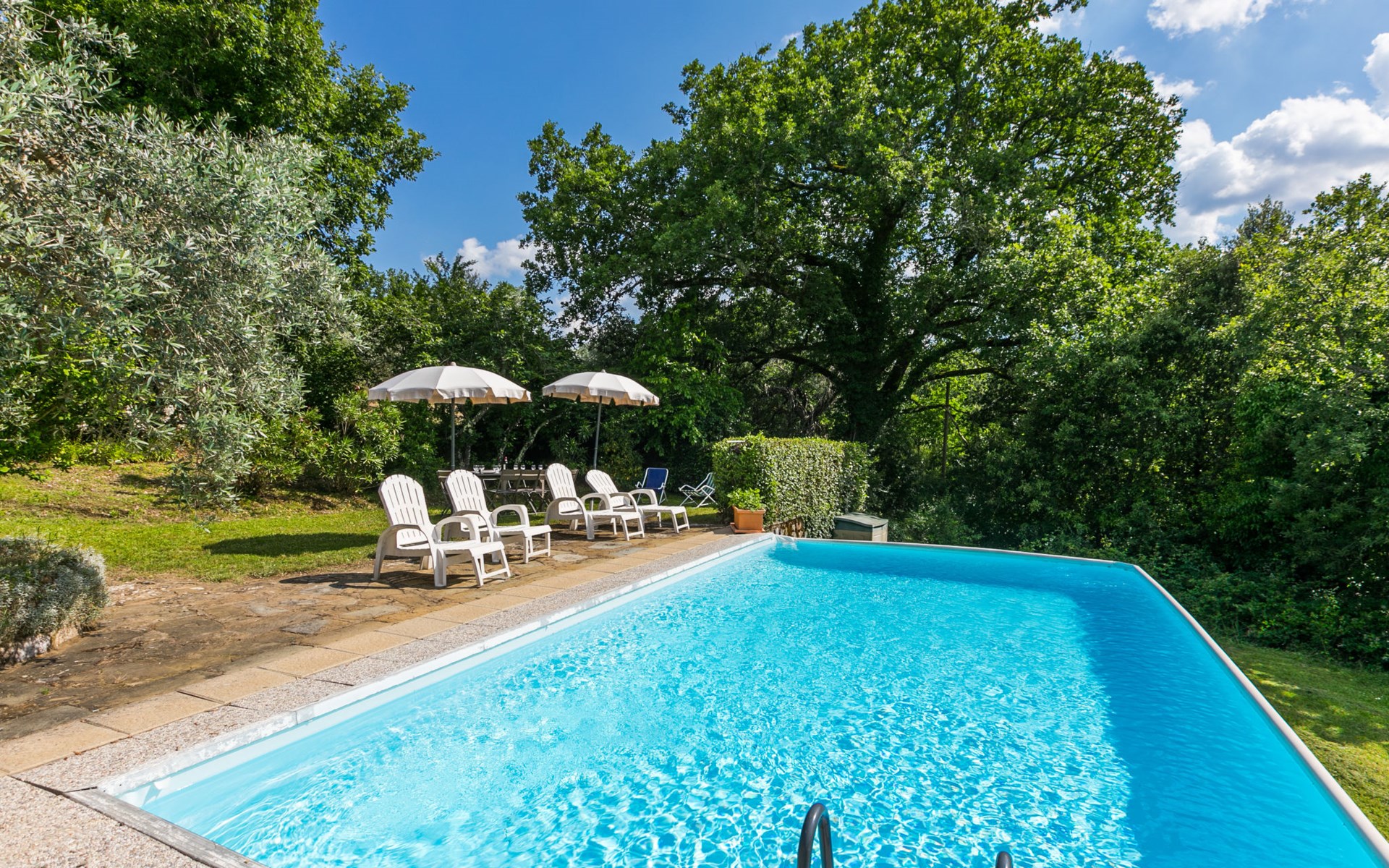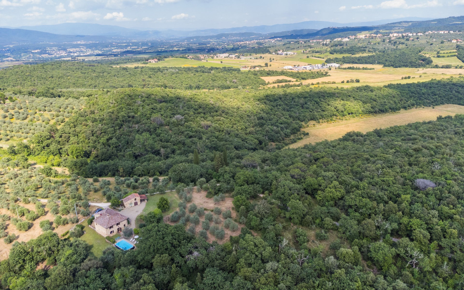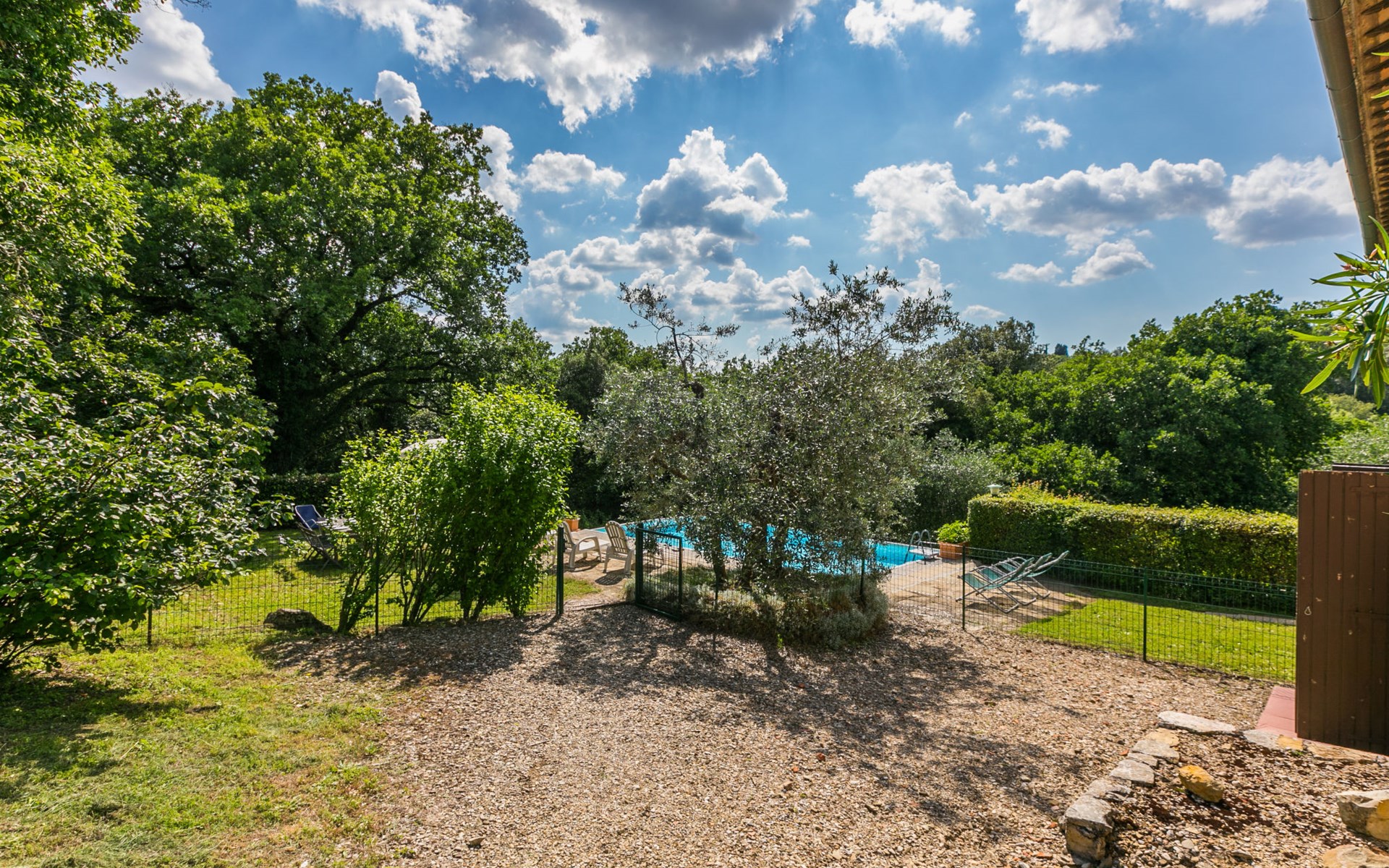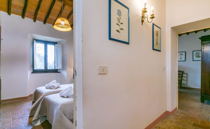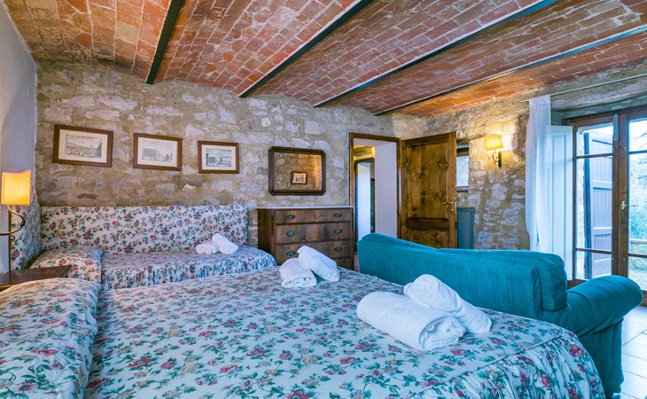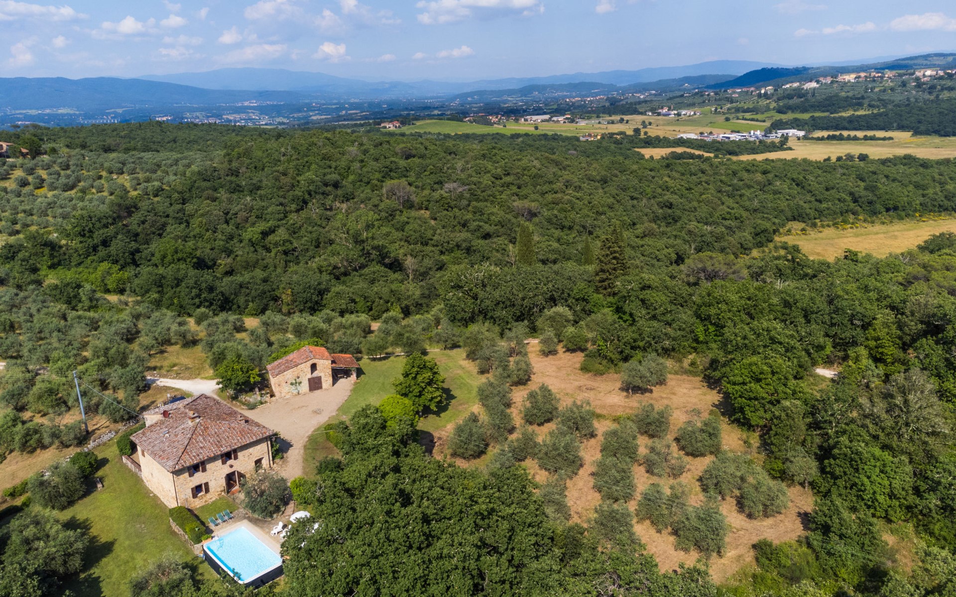"rustico" cottage "Il Laghetto". 4 km from the centre of Pergine Valdarno, 25 km from the centre of Arezzo, 35 km from the centre of Siena, in a quiet position. Private: property, trees, natural garden, meadow, swimming pool (above ground) (8 x 4 m, seasonal availability: 15.May. - 01.Oct.). Table tennis. Motor access (2.9 km via unmade road). Parking on the premises. Shop 4 km, supermarket 5 km, railway station "Laterina" 3 km. Nearby attractions: Castello di Montozzi reception 1.8 km. Local sale of farm products.
