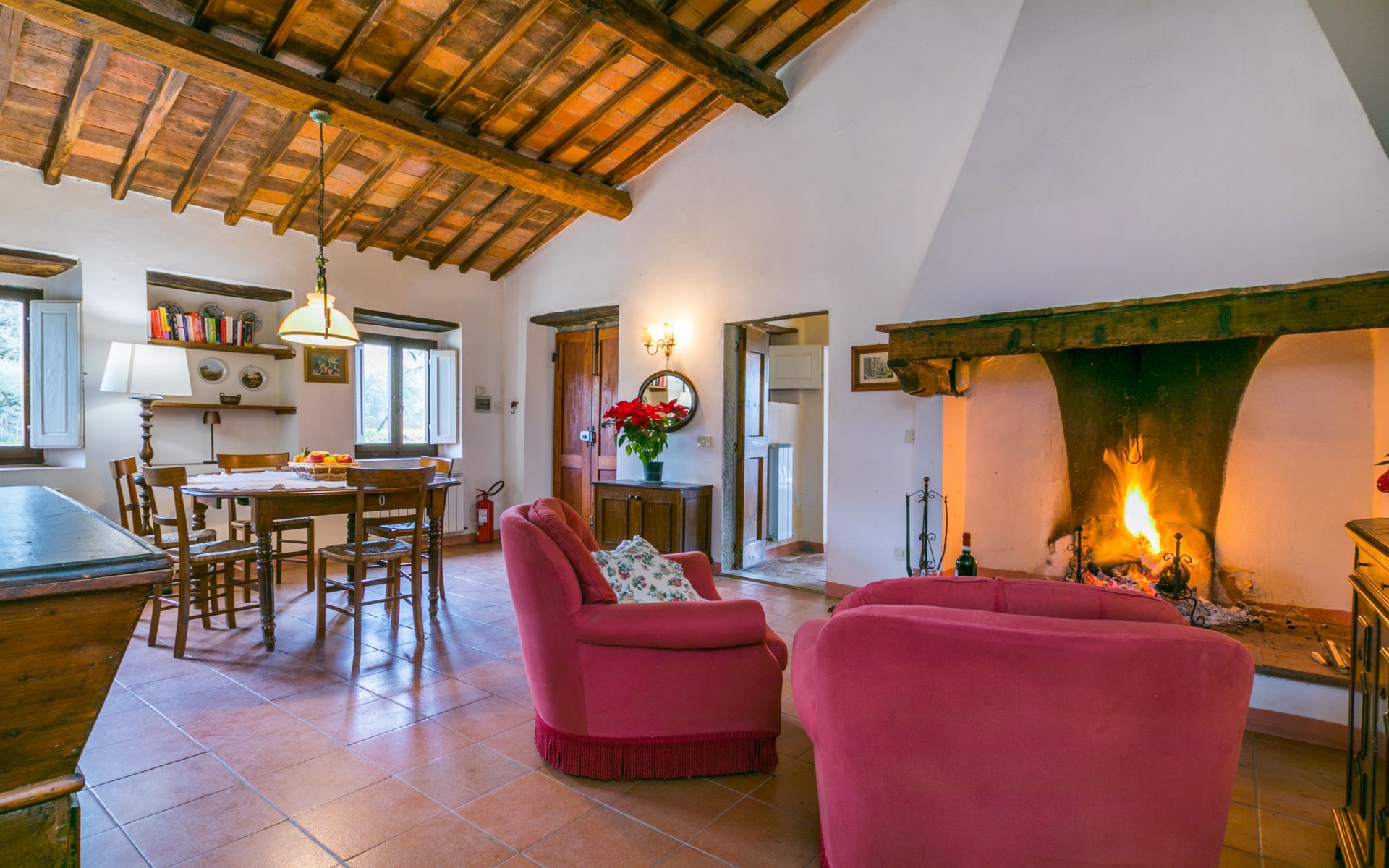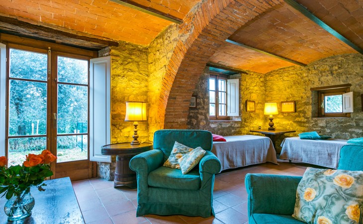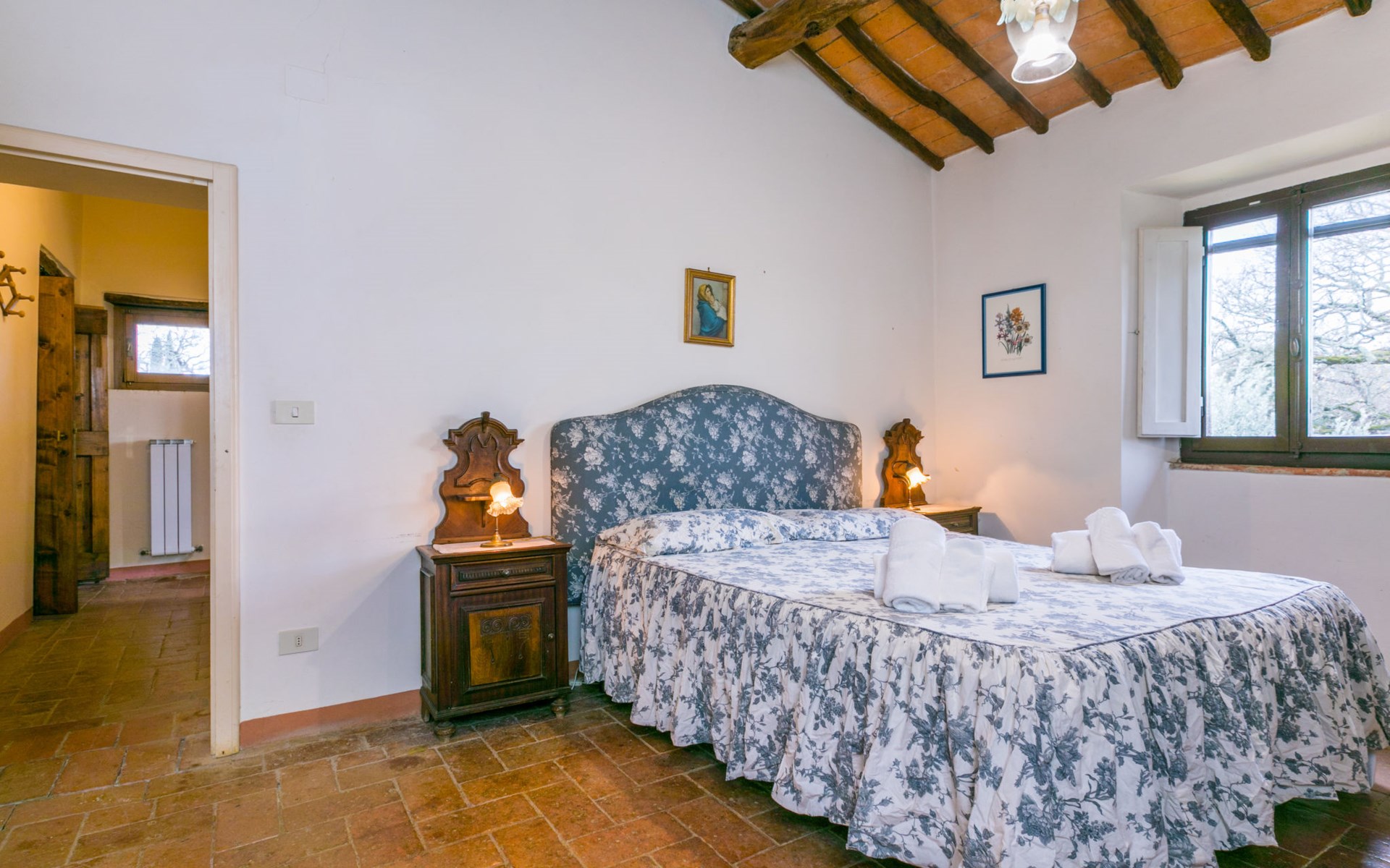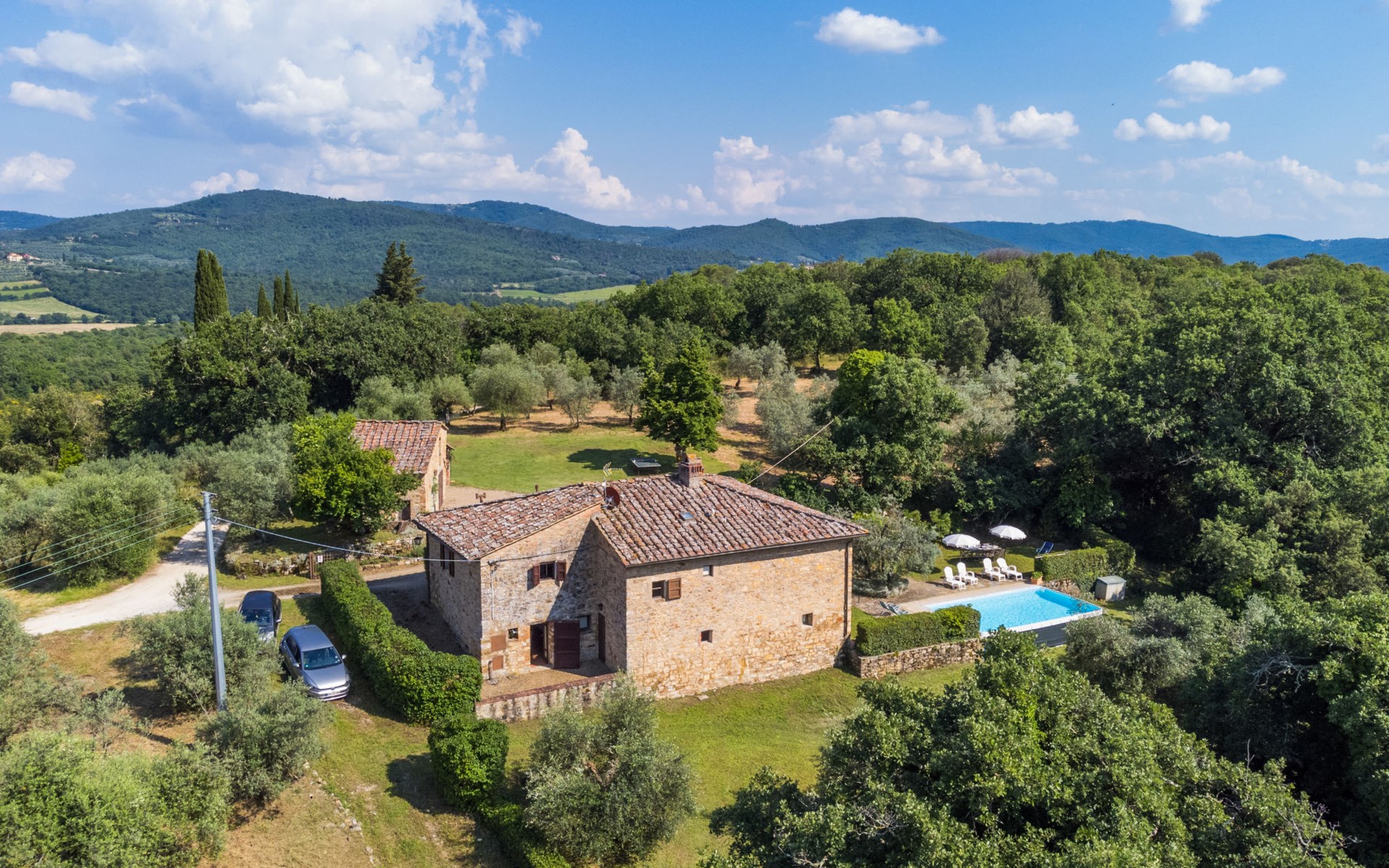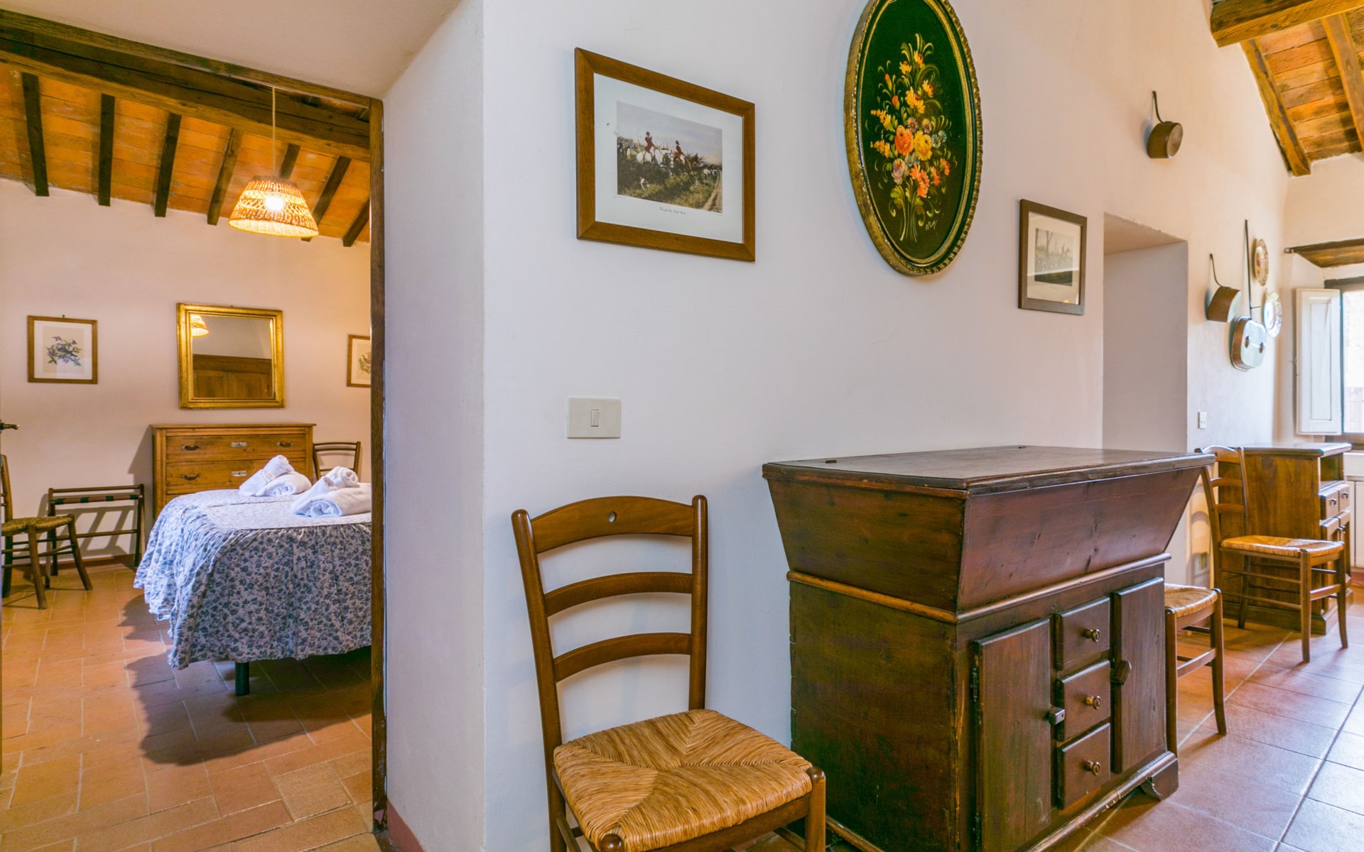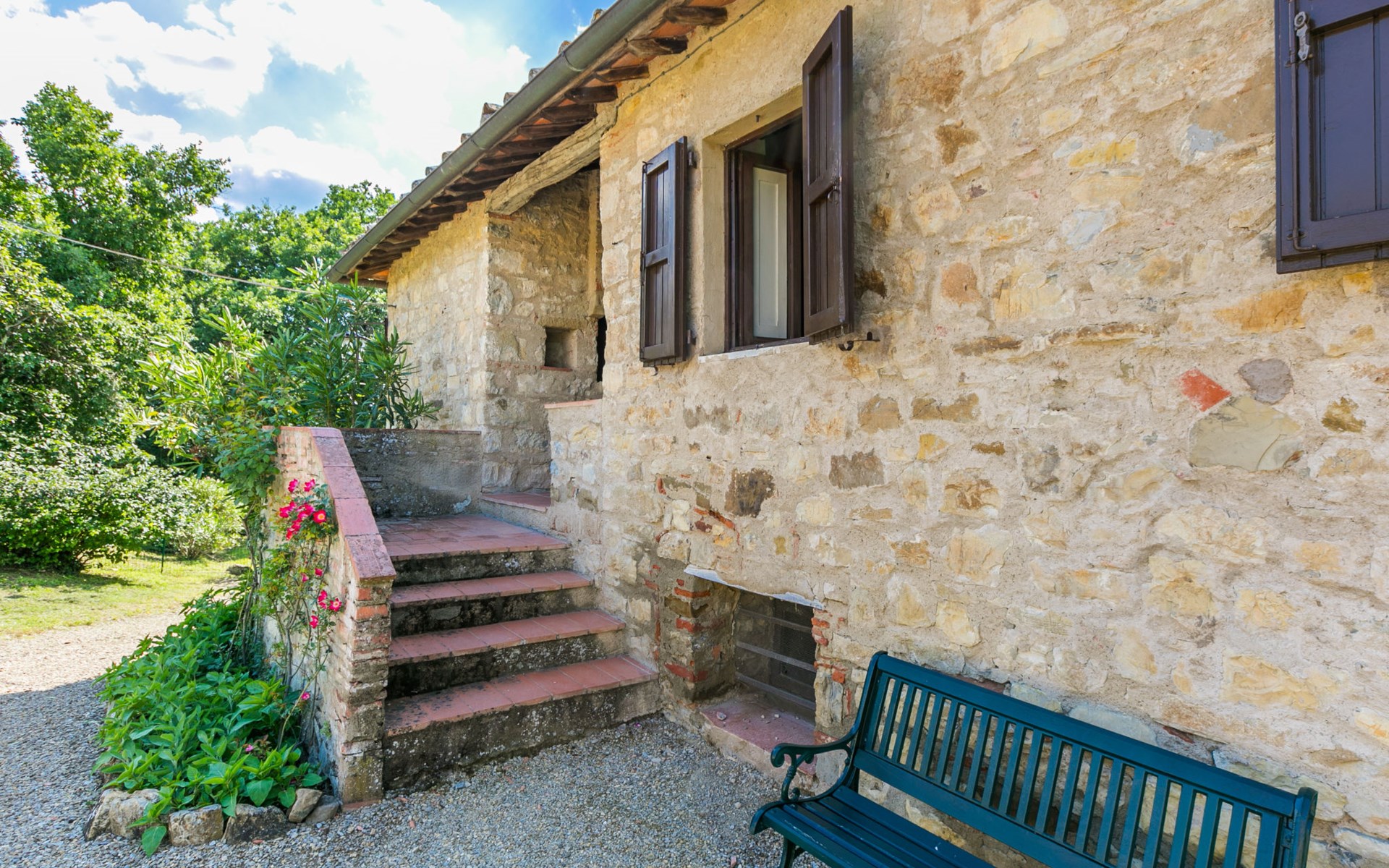 "rustico" cottage "Il Laghetto". 4 km from the centre of Pergine Valdarno, 25 km from the centre of Arezzo, 35 km from the centre of Siena, in a quiet position. Private: property, trees, natural garden, meadow, swimming pool (above ground) (8 x 4 m, seasonal availability: 15.May. - 01.Oct.). Table tennis. Motor access (2.9 km via unmade road). Parking on the premises. Shop 4 km, supermarket 5 km, railway station "Laterina" 3 km. Nearby attractions: Castello di Montozzi reception 1.8 km. Local sale of farm products.