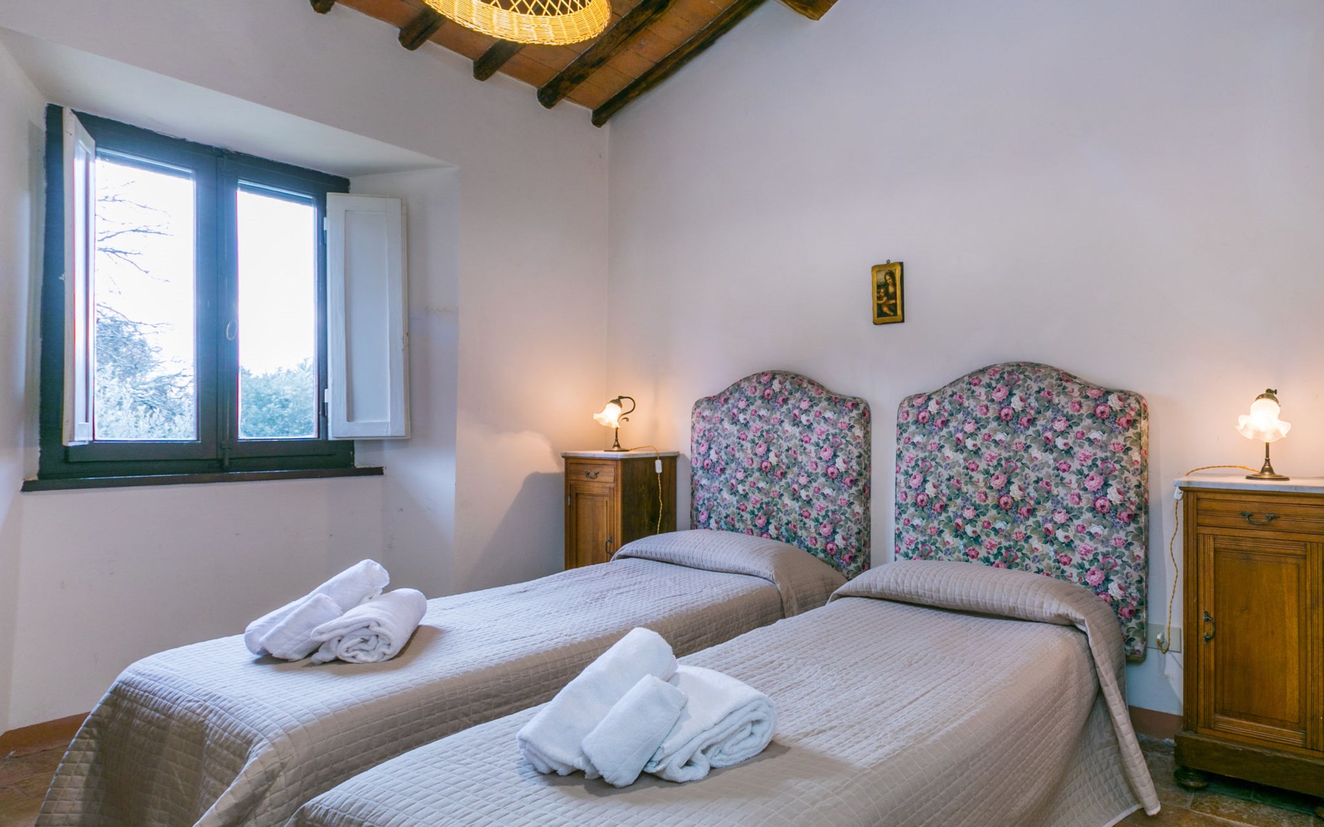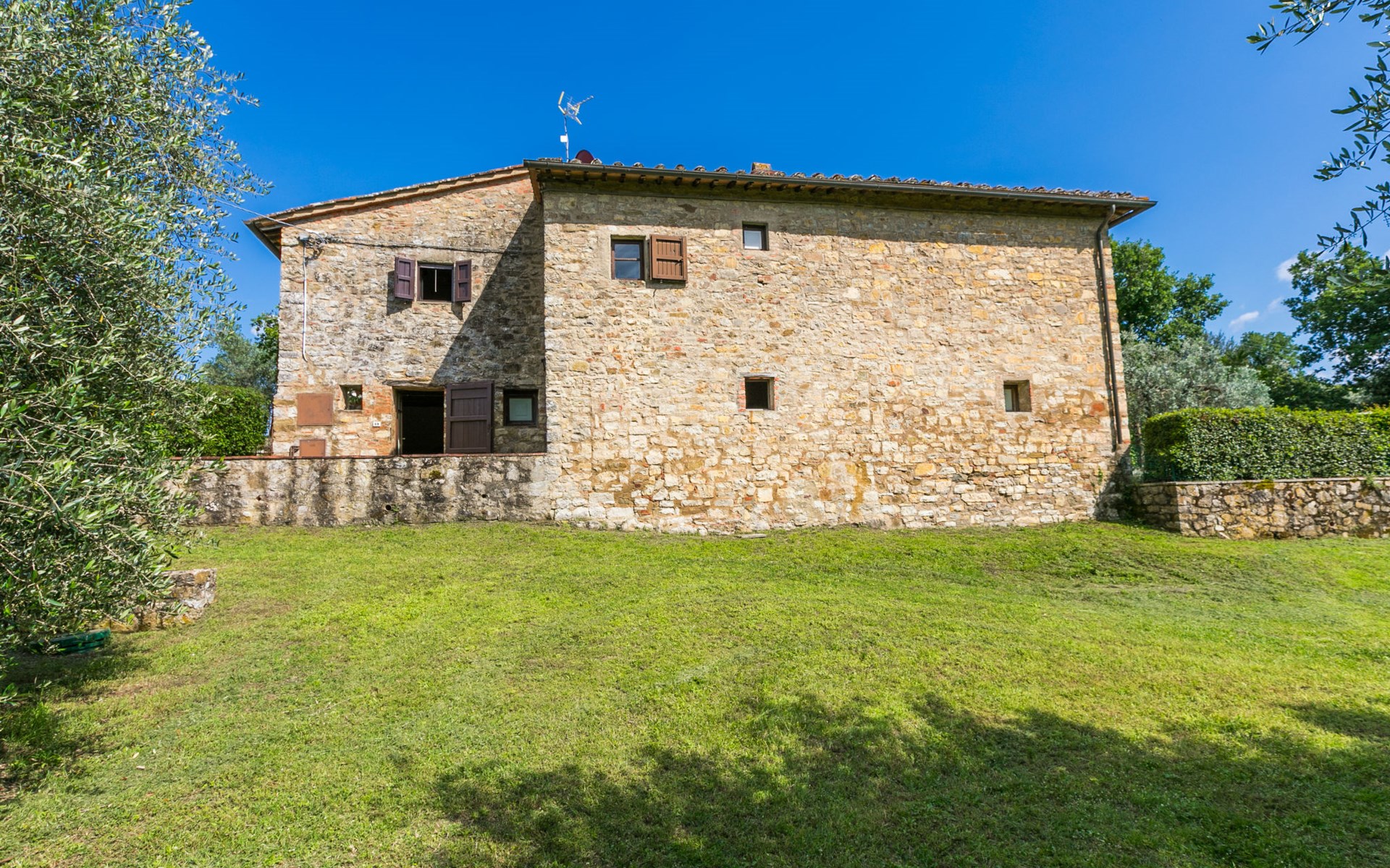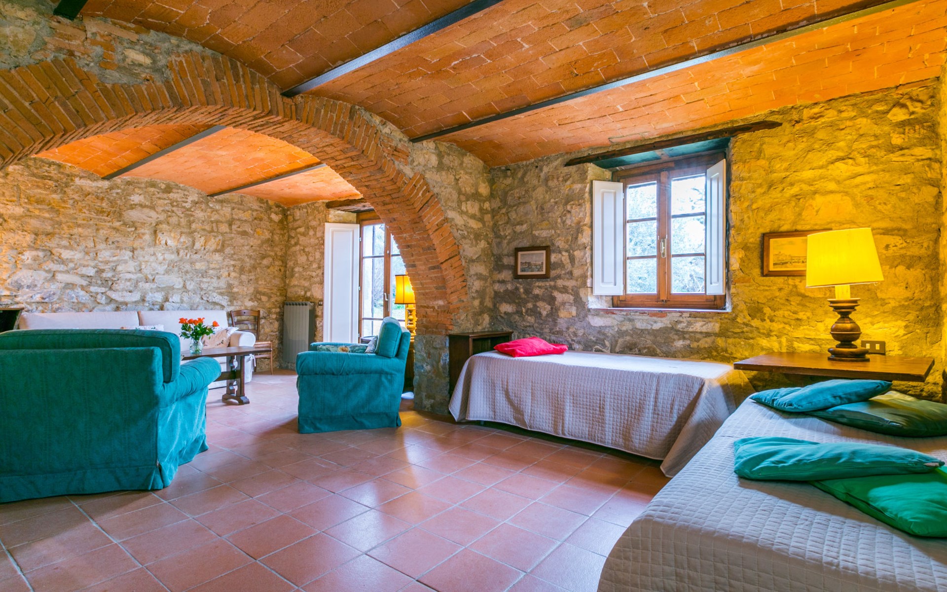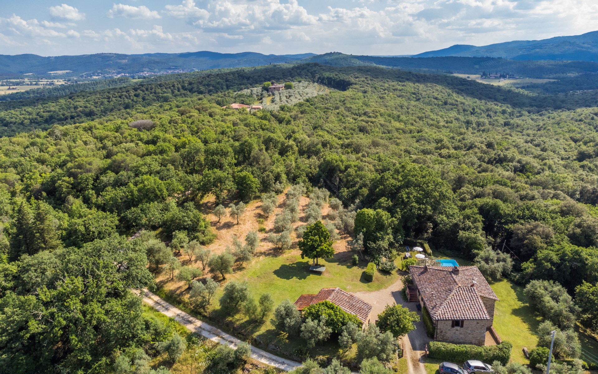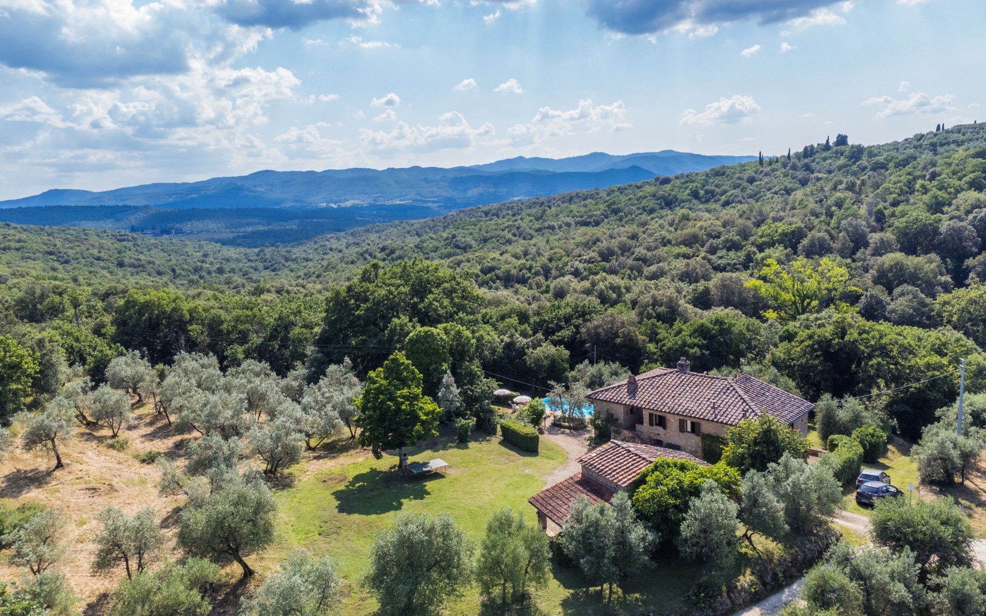 "rustico" cottage "Il Laghetto". 4 km from the centre of Pergine Valdarno, 25 km from the centre of Arezzo, 35 km from the centre of Siena, in a quiet position. Private: property, trees, natural garden, meadow, swimming pool (above ground) (8 x 4 m, seasonal availability: 15.May. - 01.Oct.). Table tennis. Motor access (2.9 km via unmade road). Parking on the premises. Shop 4 km, supermarket 5 km, railway station "Laterina" 3 km. Nearby attractions: Castello di Montozzi reception 1.8 km. Local sale of farm products.