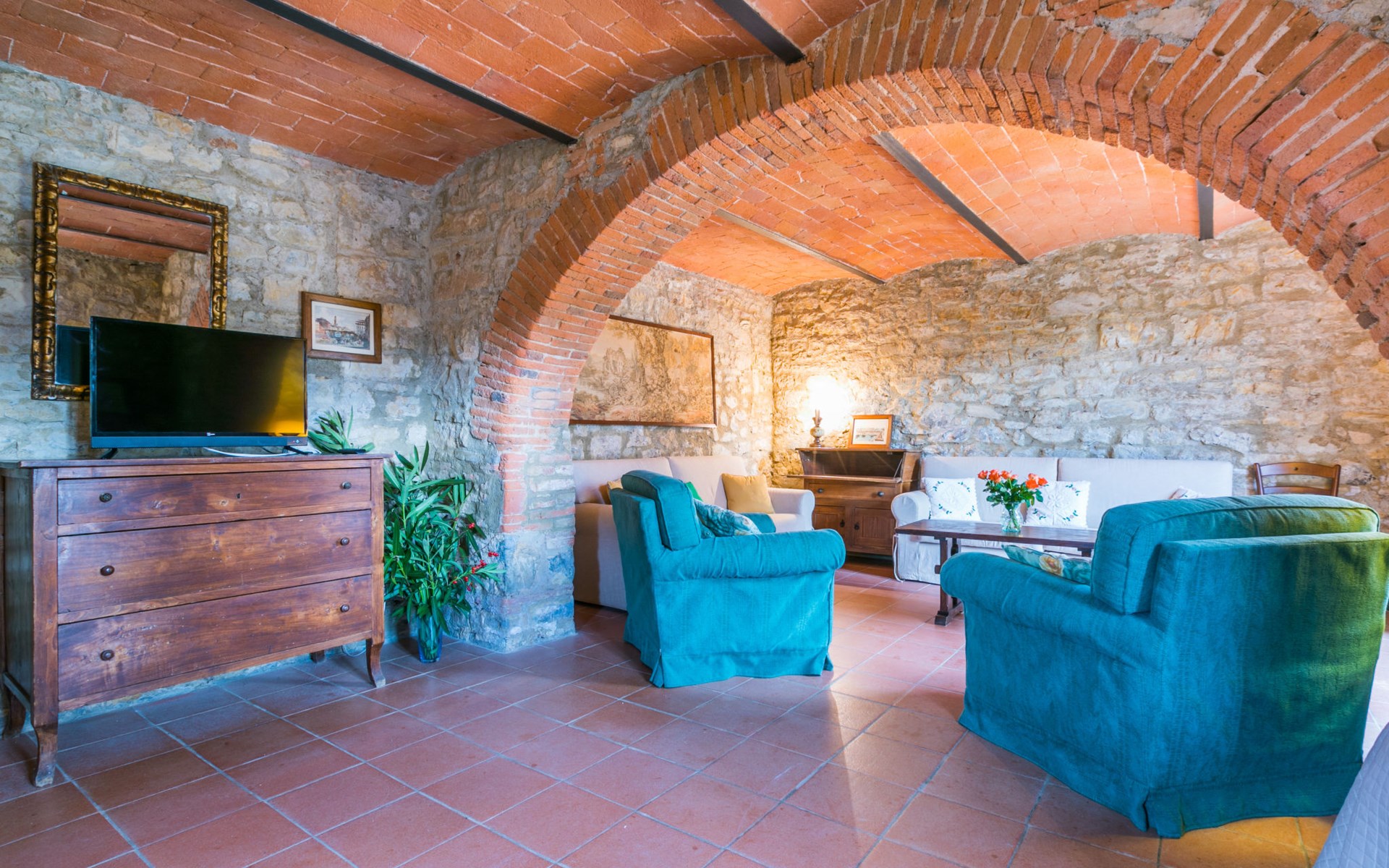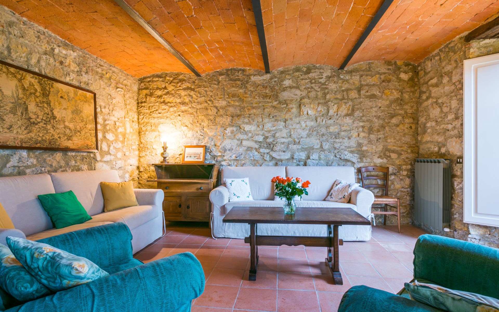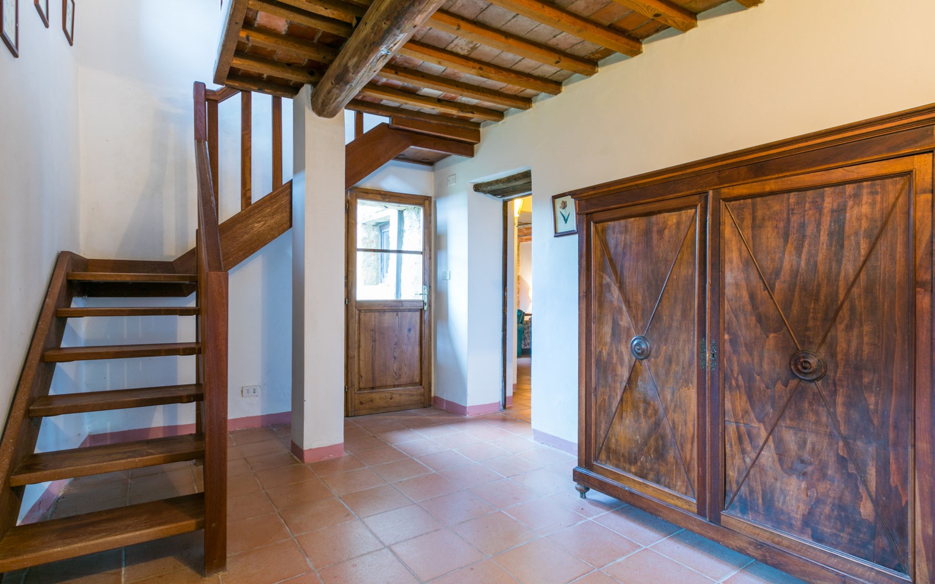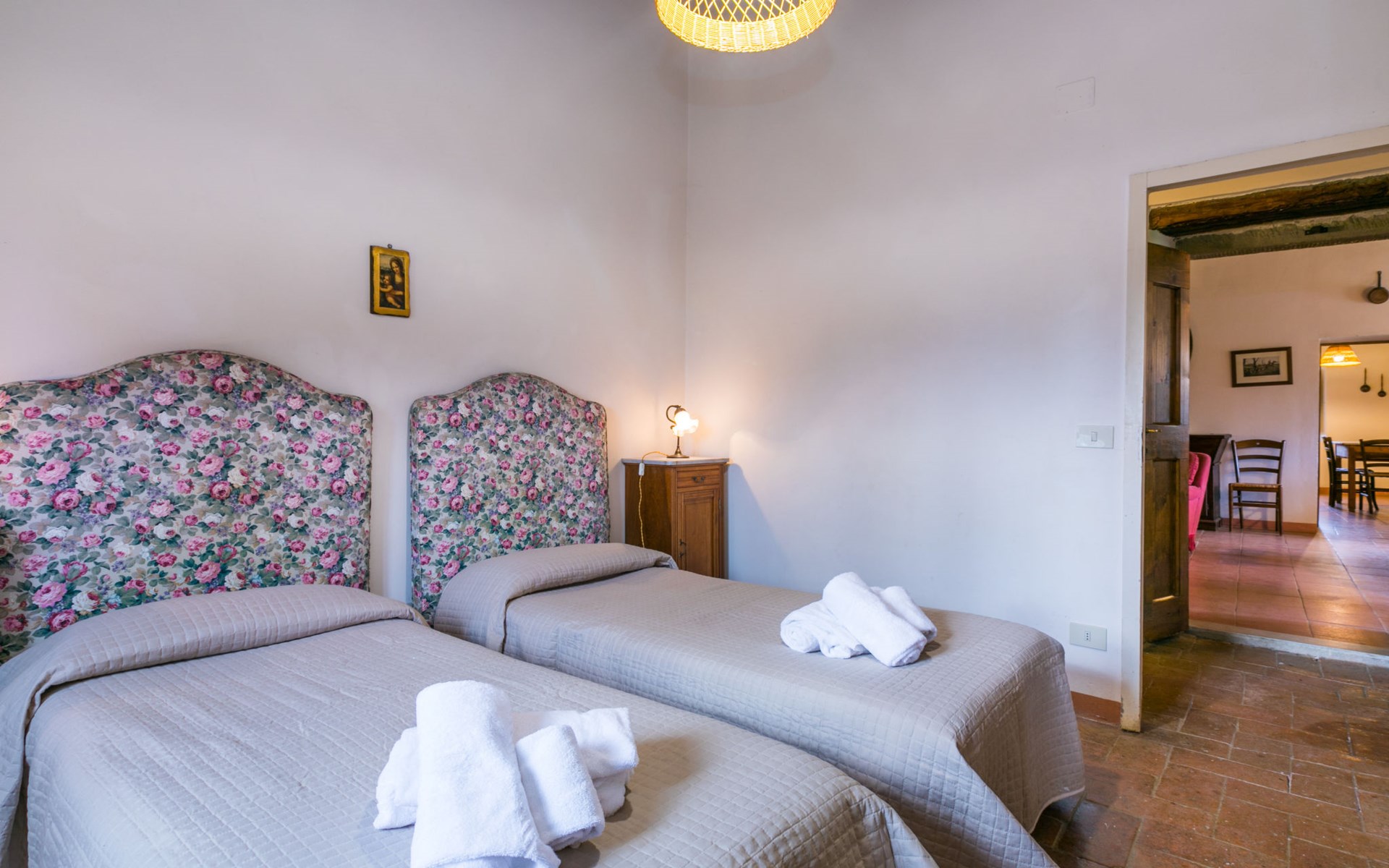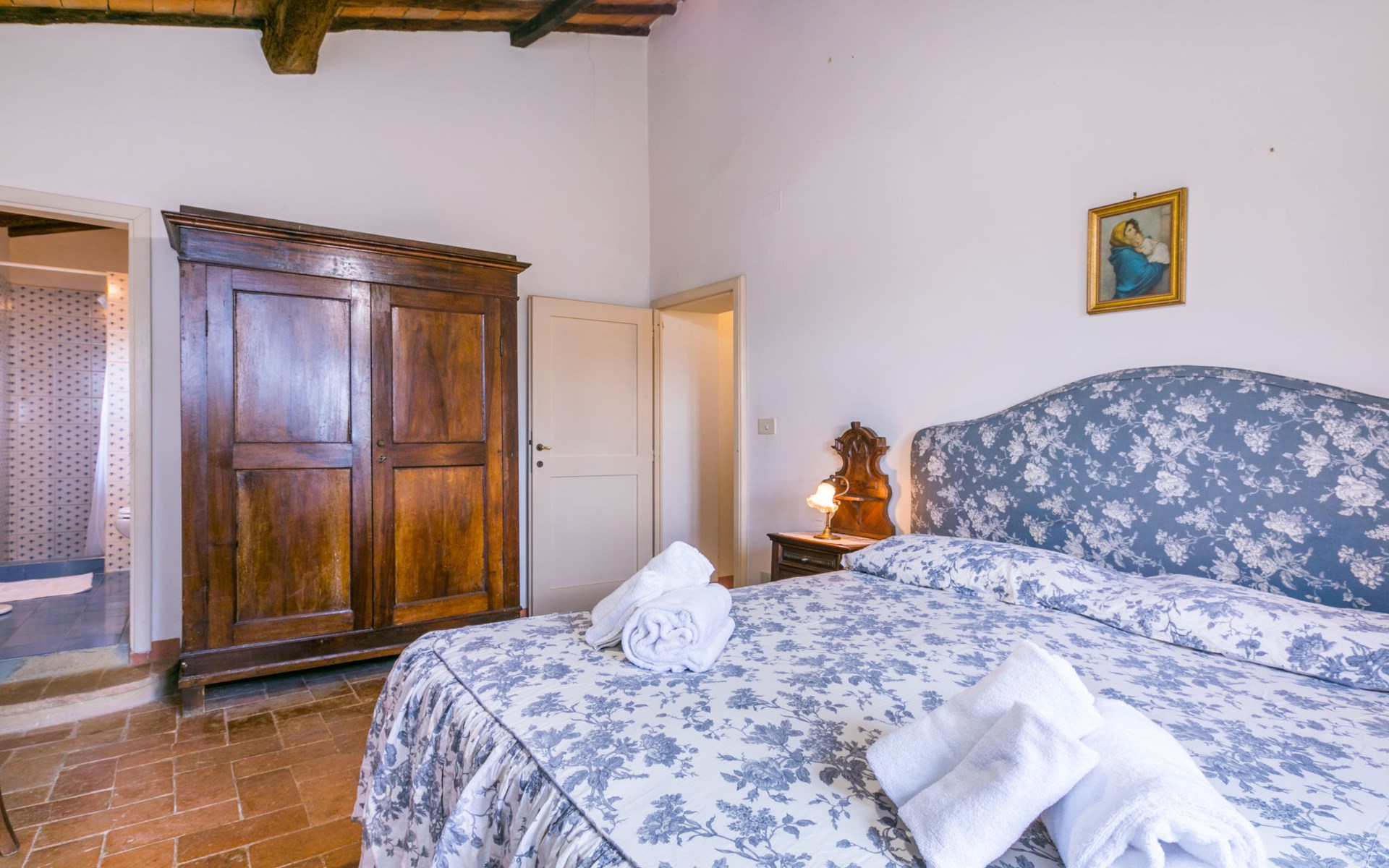 "rustico" cottage "Il Laghetto". 4 km from the centre of Pergine Valdarno, 25 km from the centre of Arezzo, 35 km from the centre of Siena, in a quiet position. Private: property, trees, natural garden, meadow, swimming pool (above ground) (8 x 4 m, seasonal availability: 15.May. - 01.Oct.). Table tennis. Motor access (2.9 km via unmade road). Parking on the premises. Shop 4 km, supermarket 5 km, railway station "Laterina" 3 km. Nearby attractions: Castello di Montozzi reception 1.8 km. Local sale of farm products.