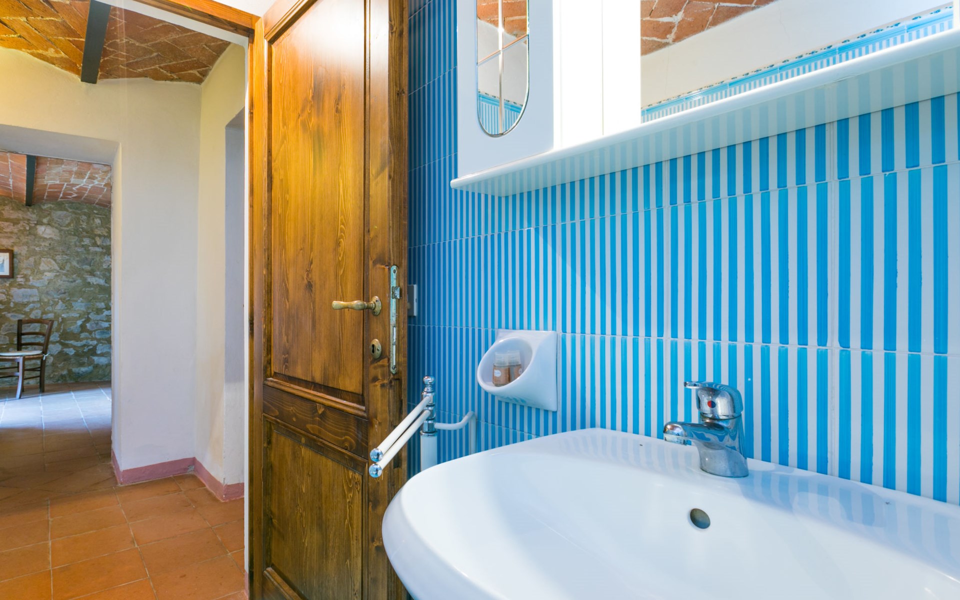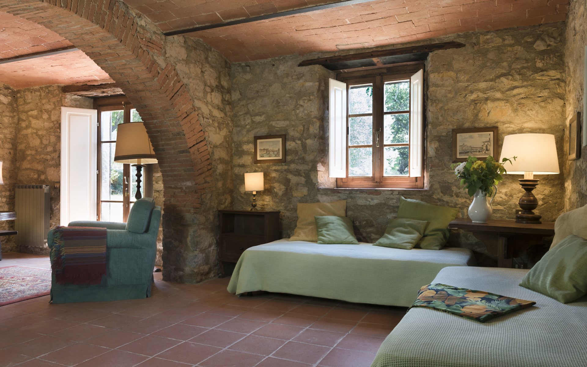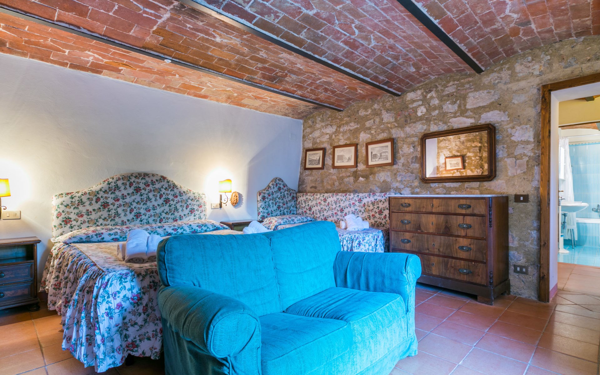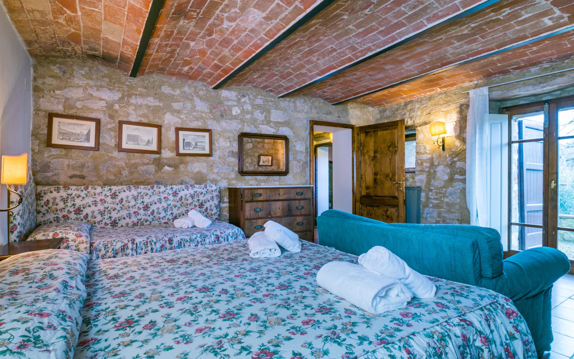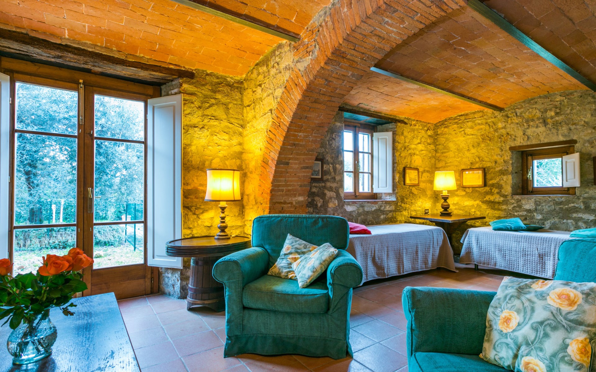 "rustico" cottage "Il Laghetto". 4 km from the centre of Pergine Valdarno, 25 km from the centre of Arezzo, 35 km from the centre of Siena, in a quiet position. Private: property, trees, natural garden, meadow, swimming pool (above ground) (8 x 4 m, seasonal availability: 15.May. - 01.Oct.). Table tennis. Motor access (2.9 km via unmade road). Parking on the premises. Shop 4 km, supermarket 5 km, railway station "Laterina" 3 km. Nearby attractions: Castello di Montozzi reception 1.8 km. Local sale of farm products.