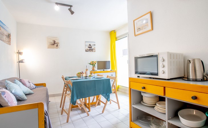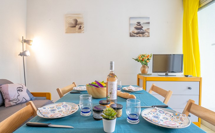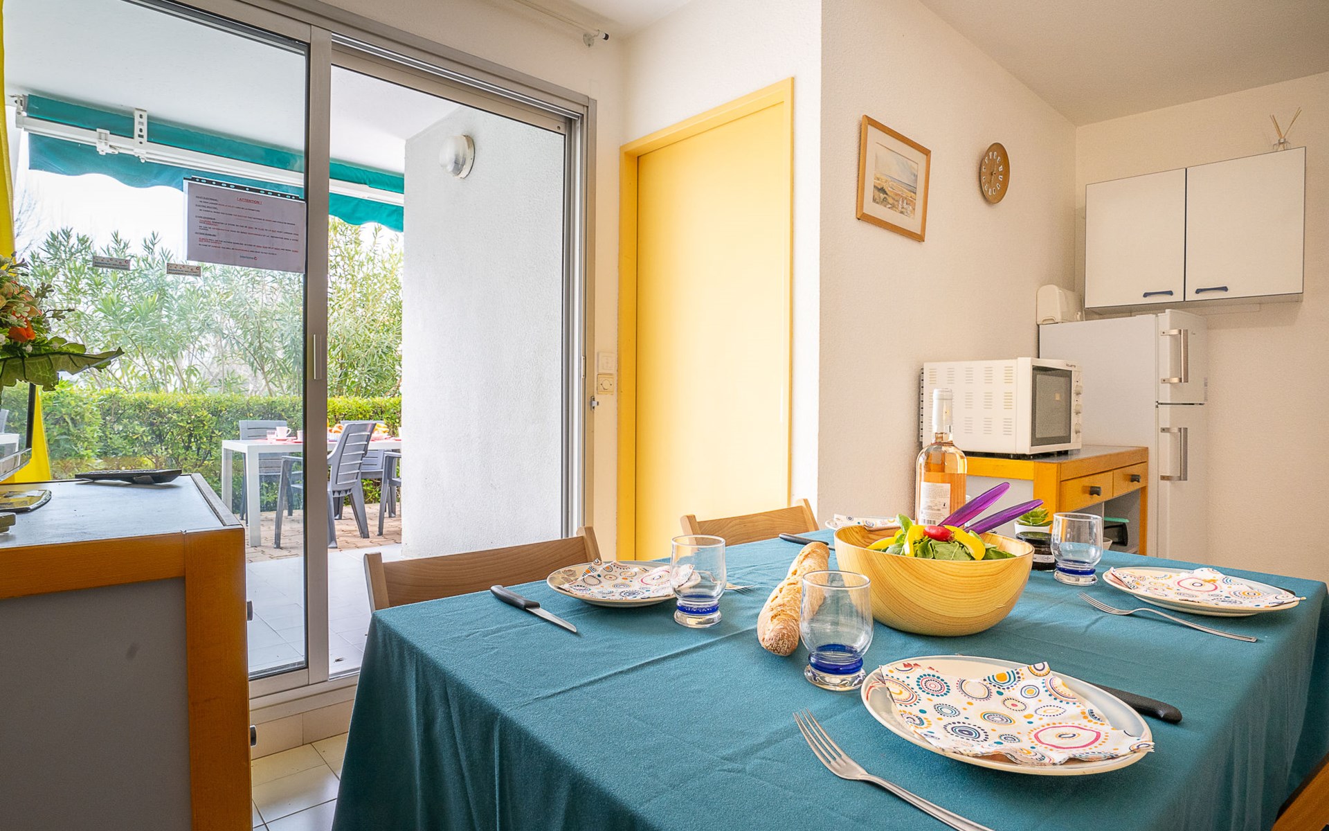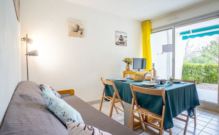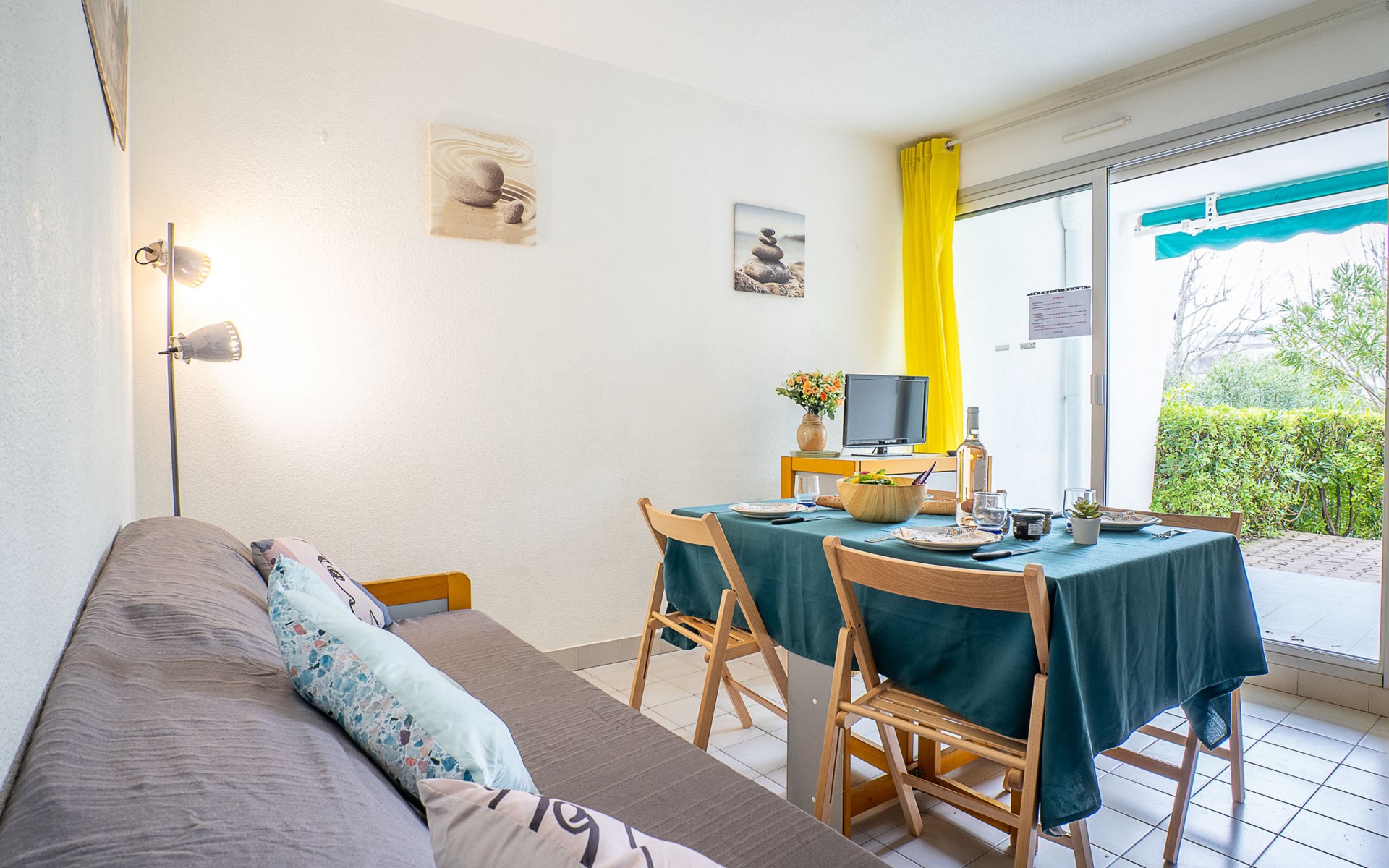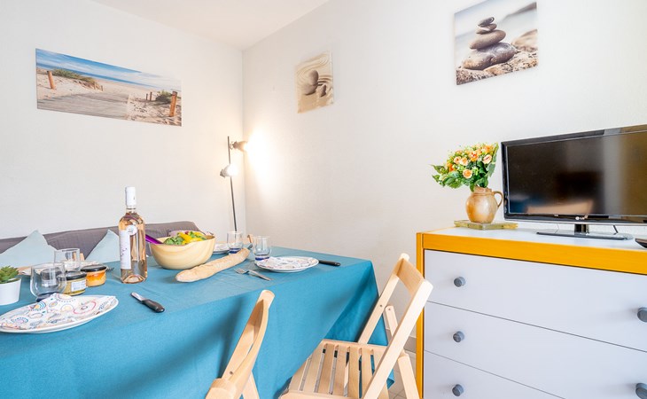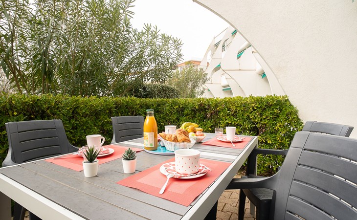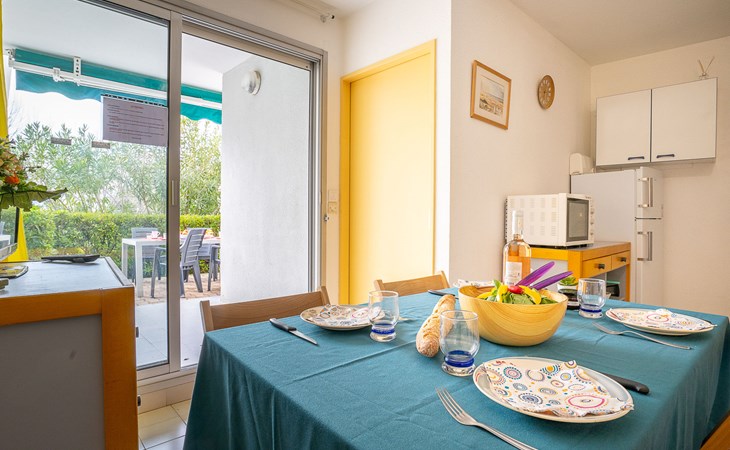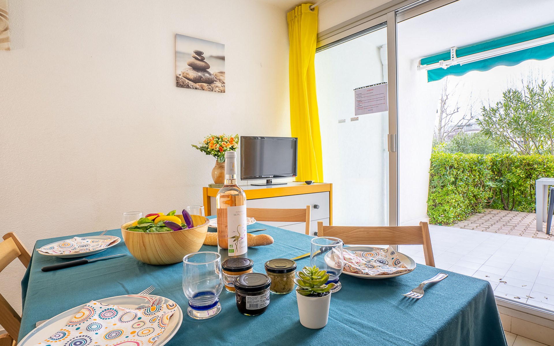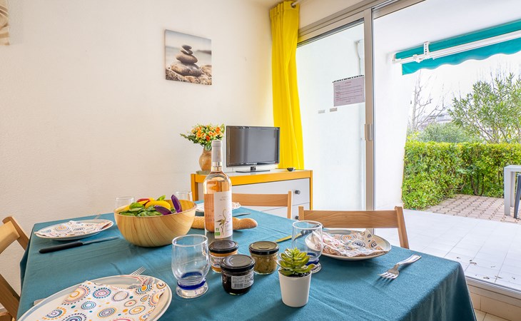 Residence "Jamaïc". In the district of La Motte du Couchant, 2 km from the centre, 300 m from the sea. Shopping centre 100 m, restaurant, bus stop 100 m, railway station "Montpellier" 25 km, sandy beach 250 m, indoor swimming pool 3.5 km, thermal baths "Thalasso Spa" 4 km. Sports harbour 1 km, golf course (18 hole) 4 km, sailing school 1 km, tennis 3.5 km, riding stable 1.5 km. Nearby attractions: Le Seaquarium du Grau Du Roi 10 km, Les Remparts d'Aigues Mortes 12 km, Les Saintes Maries de la Mer 40 km. Please note: airfield close by 20 km from the property.