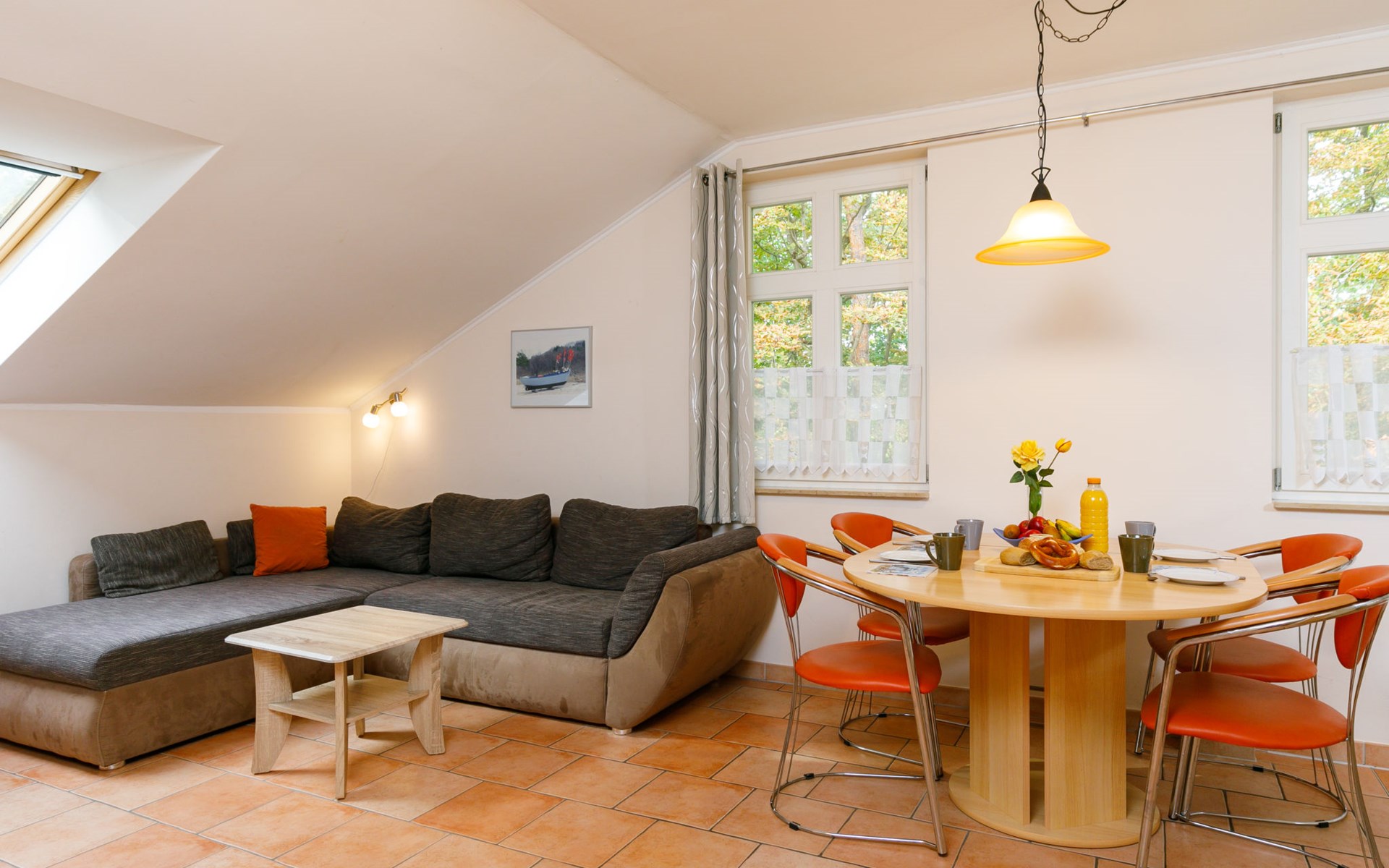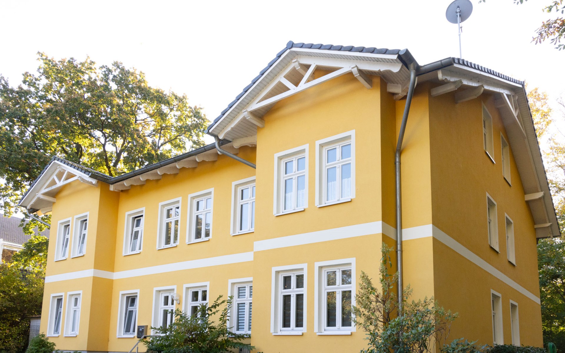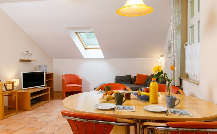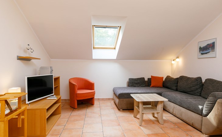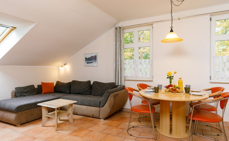 Apartment house, 2 storeys. In the centre of Zinnowitz, on a slope, 500 m from the sea, 500 m from the beach. In the house: central heating system. Parking on the premises. Supermarket 450 m, restaurant 350 m, bakery, café, bus stop 550 m, railway station 1.3 km, sandy beach 500 m, thermal baths "Bernsteintherme" 1.1 km. Marina 1.8 km, golf course (18 hole) 25 km, surf school 1.2 km, tennis 170 m, minigolf 1.1 km.