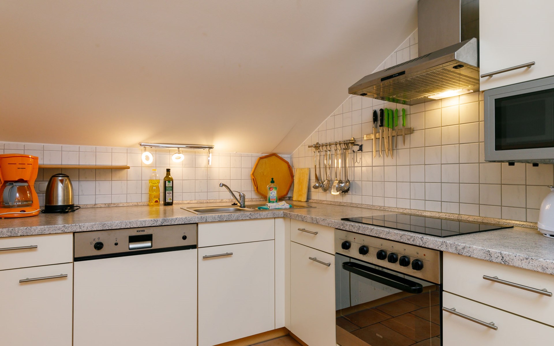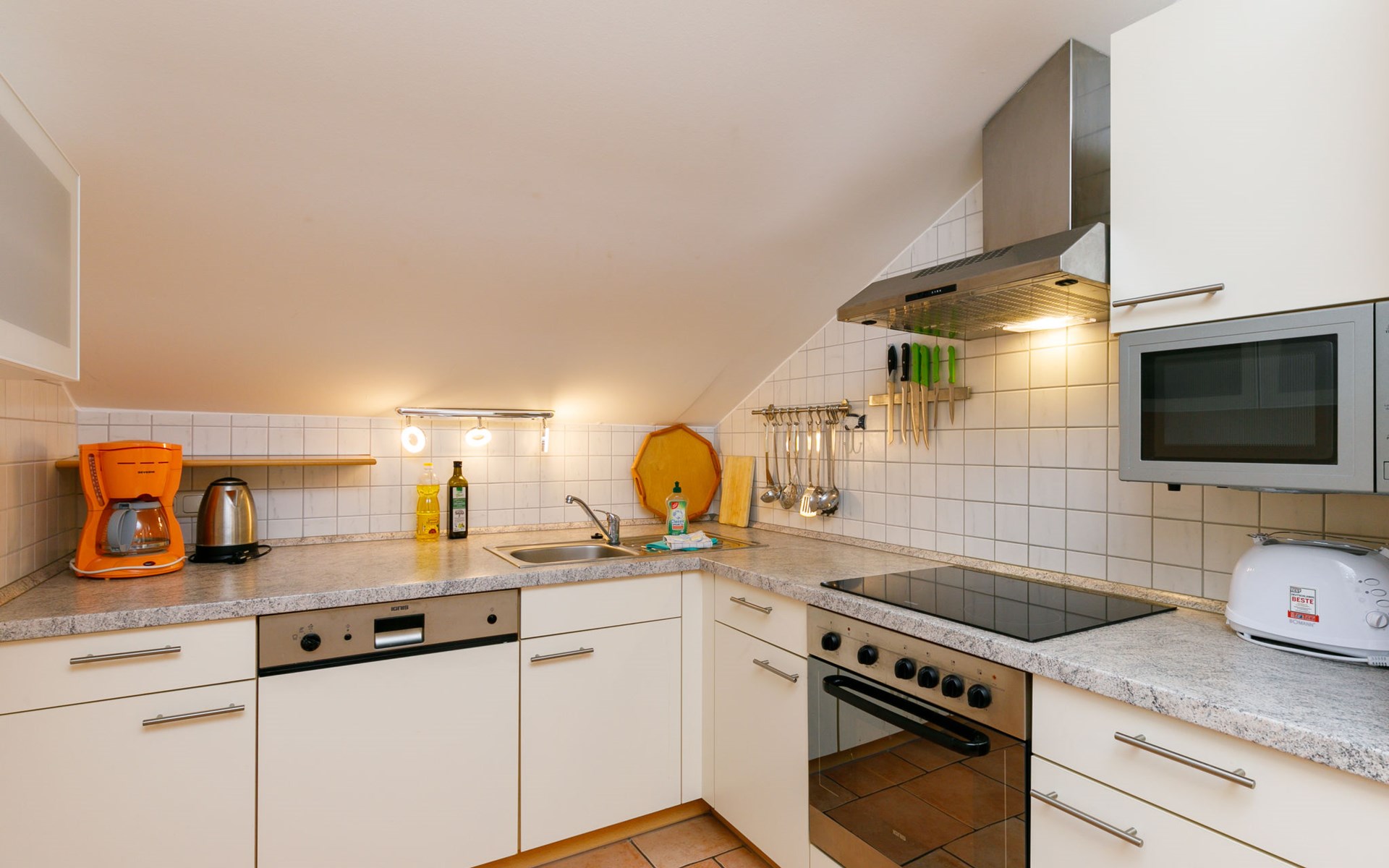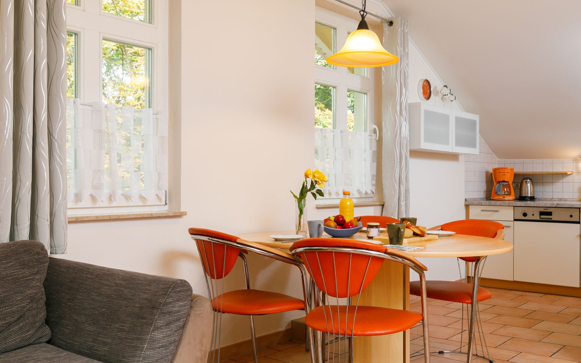 Apartment house, 2 storeys. In the centre of Zinnowitz, on a slope, 500 m from the sea, 500 m from the beach. In the house: central heating system. Parking on the premises. Supermarket 450 m, restaurant 350 m, bakery, café, bus stop 550 m, railway station 1.3 km, sandy beach 500 m, thermal baths "Bernsteintherme" 1.1 km. Marina 1.8 km, golf course (18 hole) 25 km, surf school 1.2 km, tennis 170 m, minigolf 1.1 km.