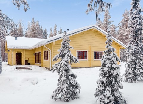 Wooden chalet suitable for disabled persons 2011, living room/kitchen, hall, large bedroom 2 beds, bedroom double bed, bedroom 2 beds, utility room, washroom, sauna (electric stove) and terraces. Chalet has underfloor heating, mechanical ventilation and central vacuum cleaning system.
