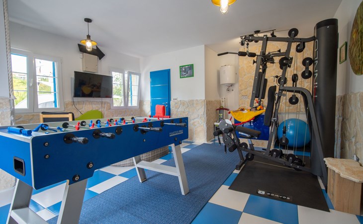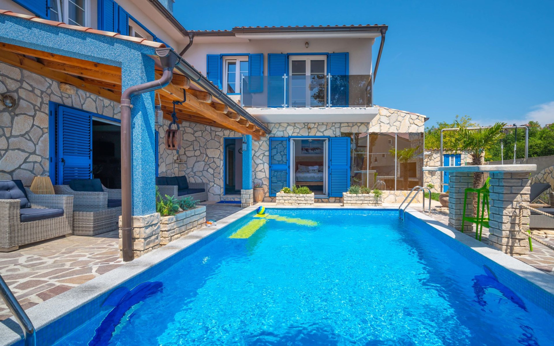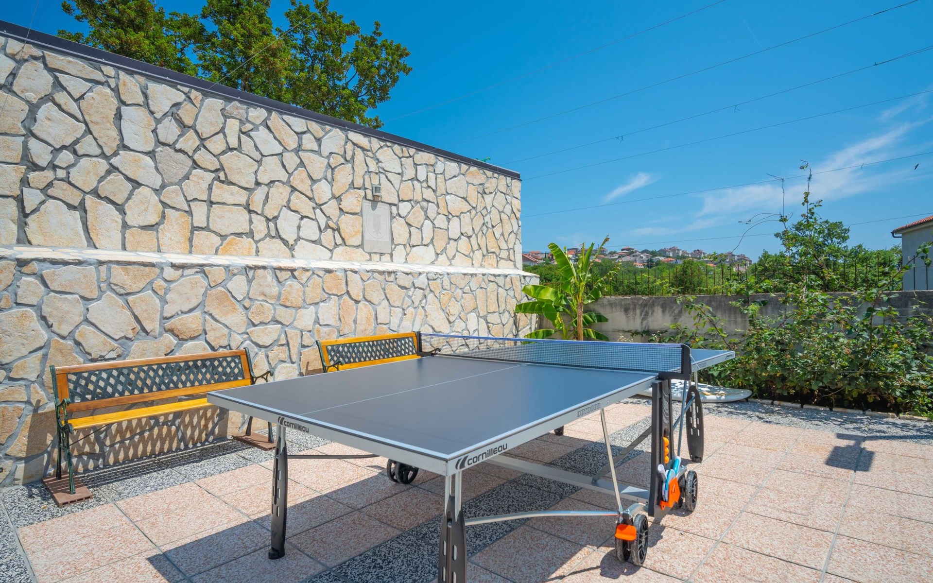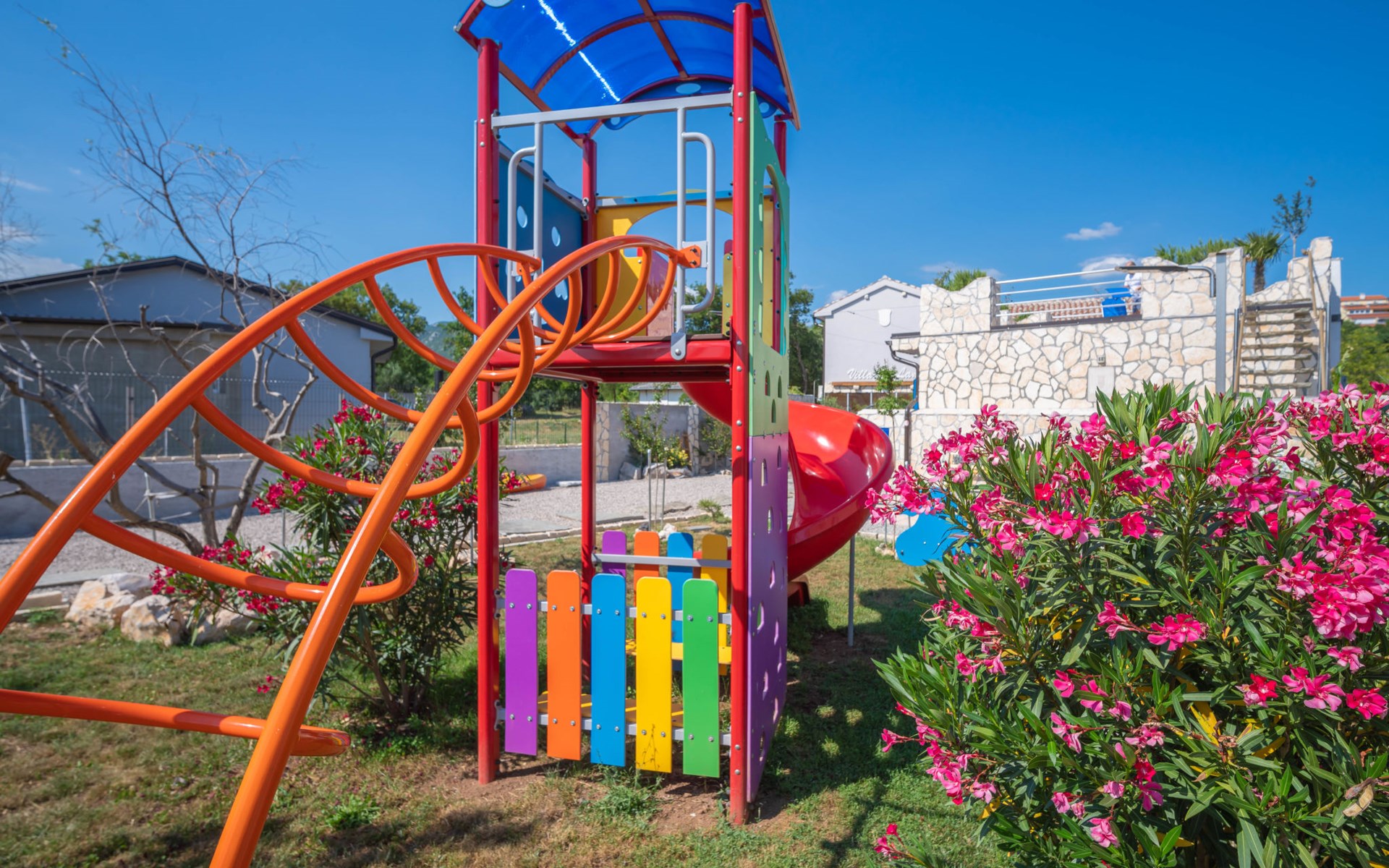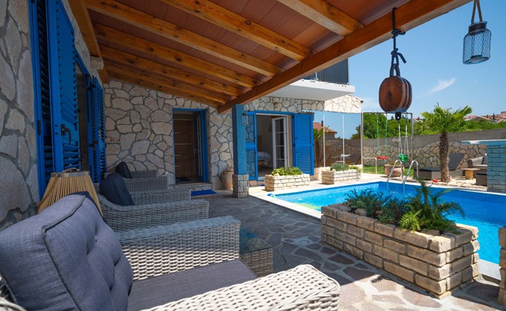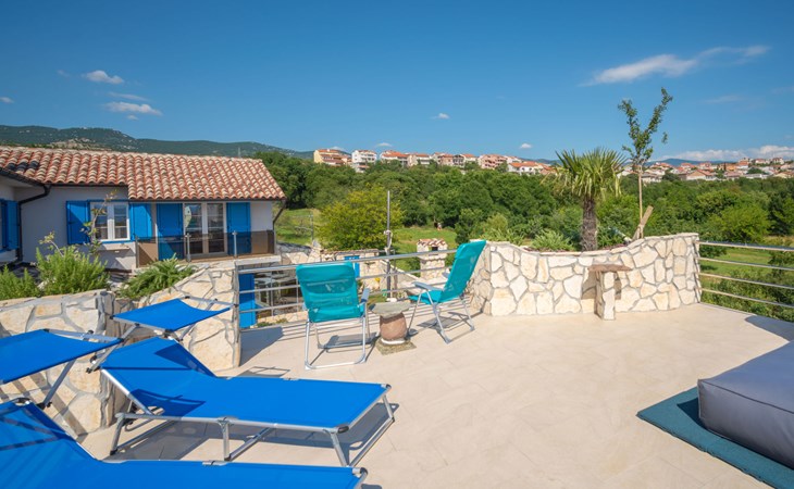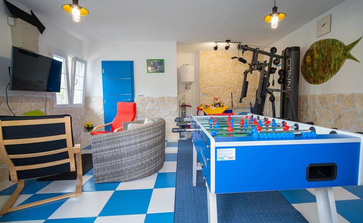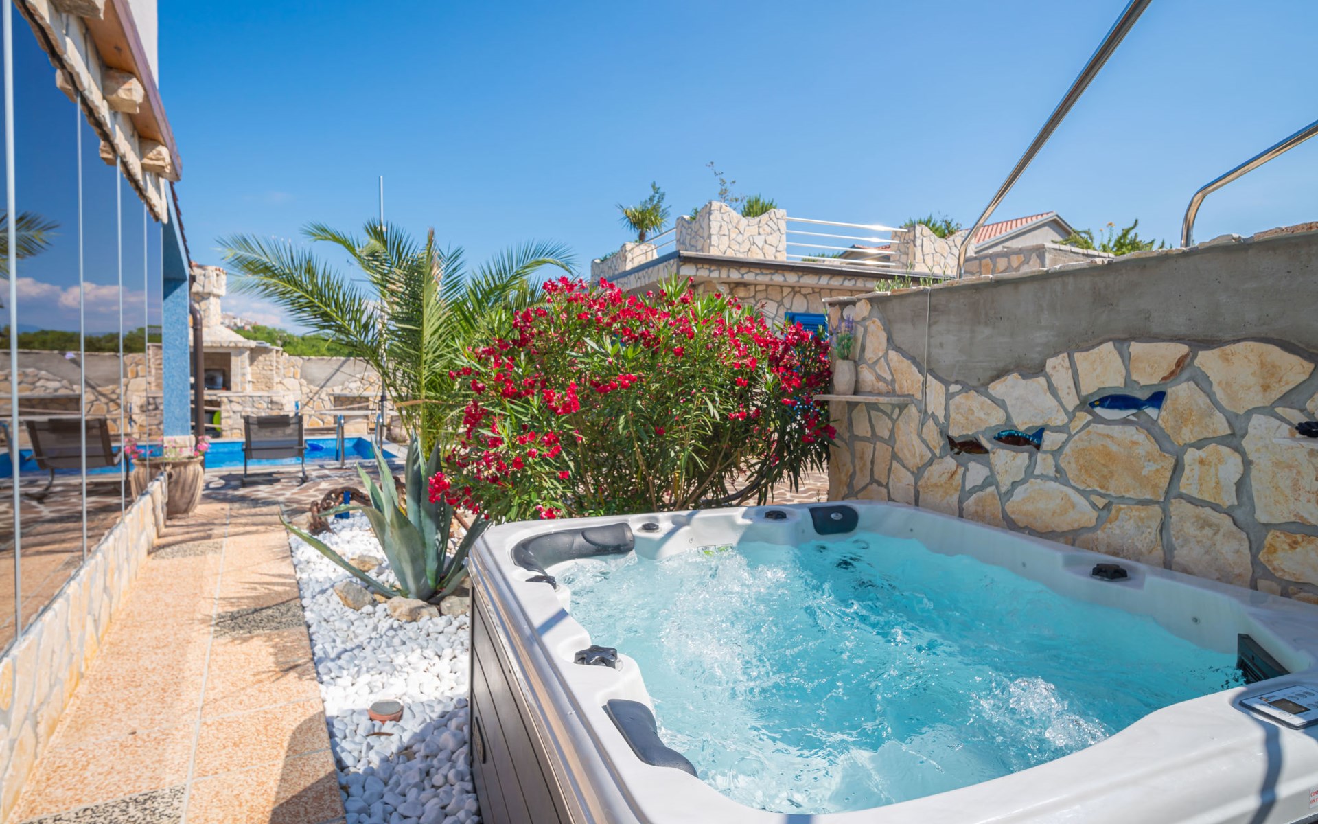 Villa "Lea Lana", 2 storeys. 500 m from the centre of Novi Vinodolski, in a quiet, sunny position, 700 m from the sea, 900 m from the beach. Private: property 1'000 m2 (fenced) with wildlife garden, swimming pool angular (7 x 4 m, depth 150 cm, seasonal availability: 01.May. - 15.Oct.) with internal staircase. WC in the pool area, outdoor shower, hot tub, pool house, table tennis, terrace (50 m2), garden furniture, barbecue, children's playground (slide, swing). In the house: internet access, table football, burglar alarm system, washing machine. Parking (for 3 cars) at the house on the premises. Shop, supermarket, restaurant 500 m, bus stop 1.4 km, pebble beach, public bathing area, concrete beach 900 m. Please note: suitable for families. Groups of teenagers on request only. By groups of young people double deposit is requested on arrival. Organizing a party is not allowed. Pool house arranged as a playroom (table football, darts, play station). Available: multifunctional exercise machine. Welcome drink and snack upon arrival.