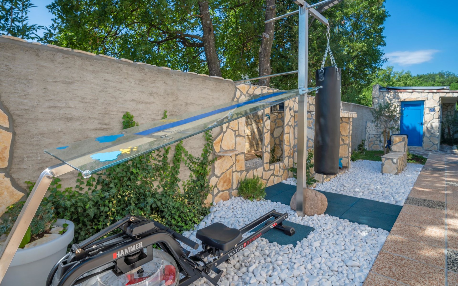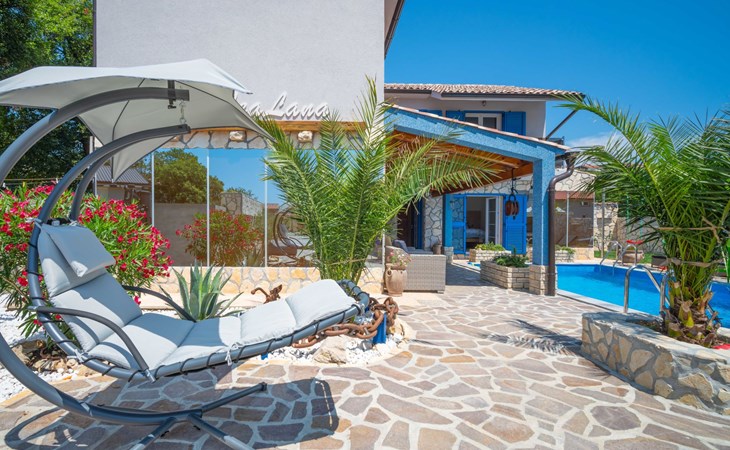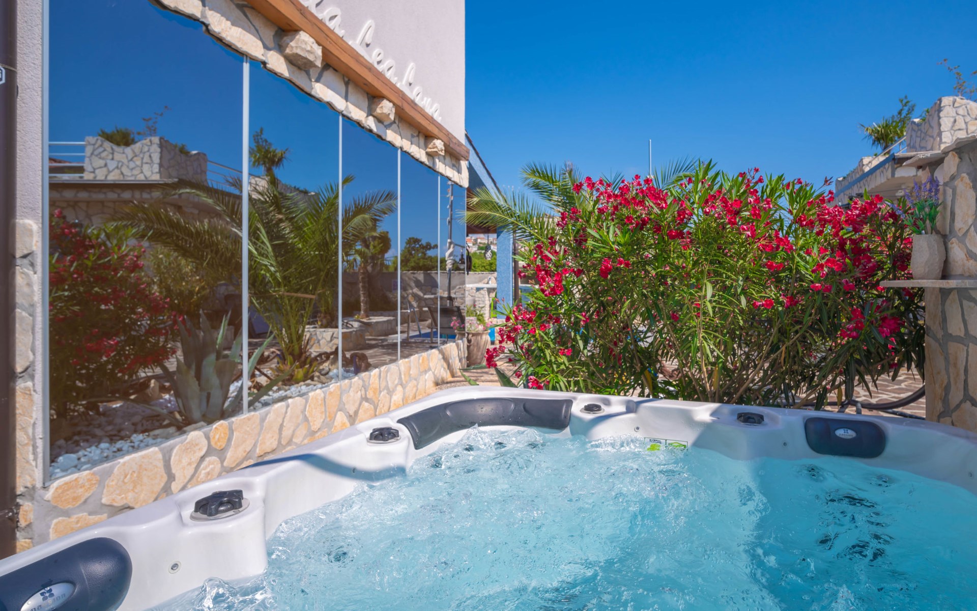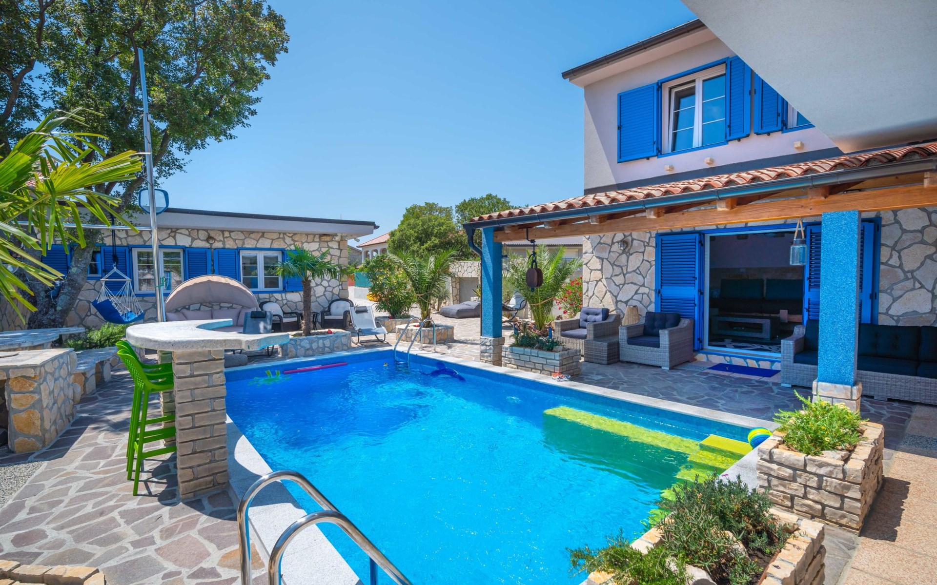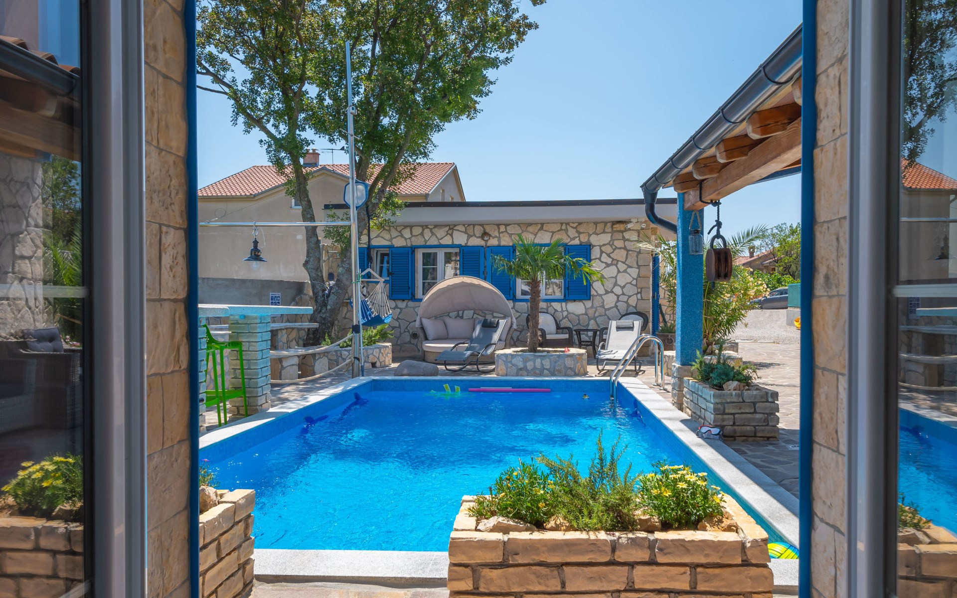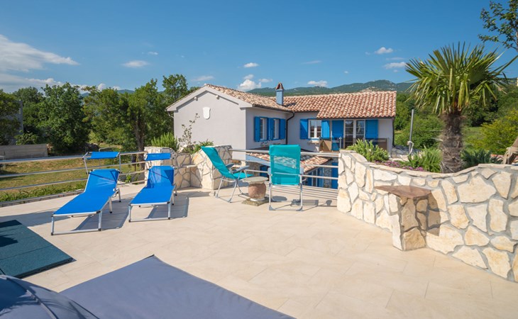 Villa "Lea Lana", 2 storeys. 500 m from the centre of Novi Vinodolski, in a quiet, sunny position, 700 m from the sea, 900 m from the beach. Private: property 1'000 m2 (fenced) with wildlife garden, swimming pool angular (7 x 4 m, depth 150 cm, seasonal availability: 01.May. - 15.Oct.) with internal staircase. WC in the pool area, outdoor shower, hot tub, pool house, table tennis, terrace (50 m2), garden furniture, barbecue, children's playground (slide, swing). In the house: internet access, table football, burglar alarm system, washing machine. Parking (for 3 cars) at the house on the premises. Shop, supermarket, restaurant 500 m, bus stop 1.4 km, pebble beach, public bathing area, concrete beach 900 m. Please note: suitable for families. Groups of teenagers on request only. By groups of young people double deposit is requested on arrival. Organizing a party is not allowed. Pool house arranged as a playroom (table football, darts, play station). Available: multifunctional exercise machine. Welcome drink and snack upon arrival.
