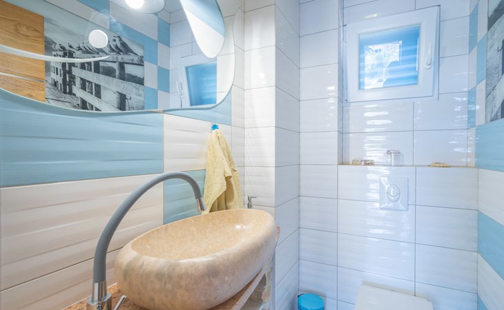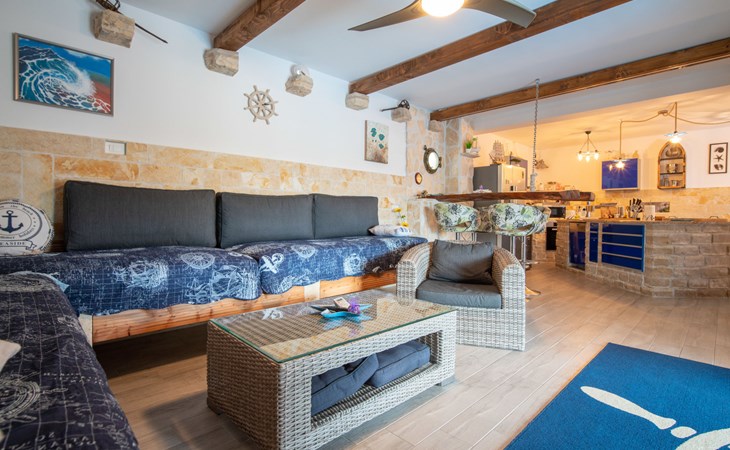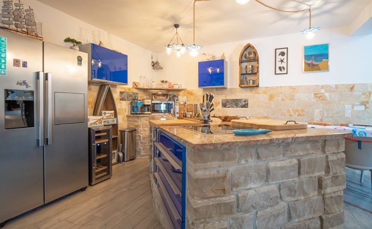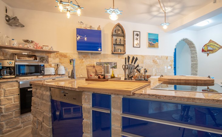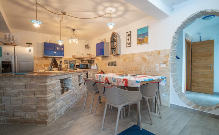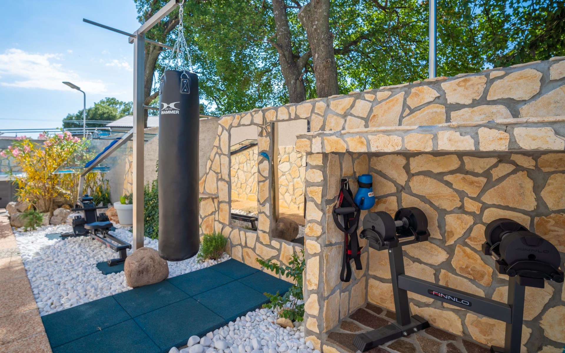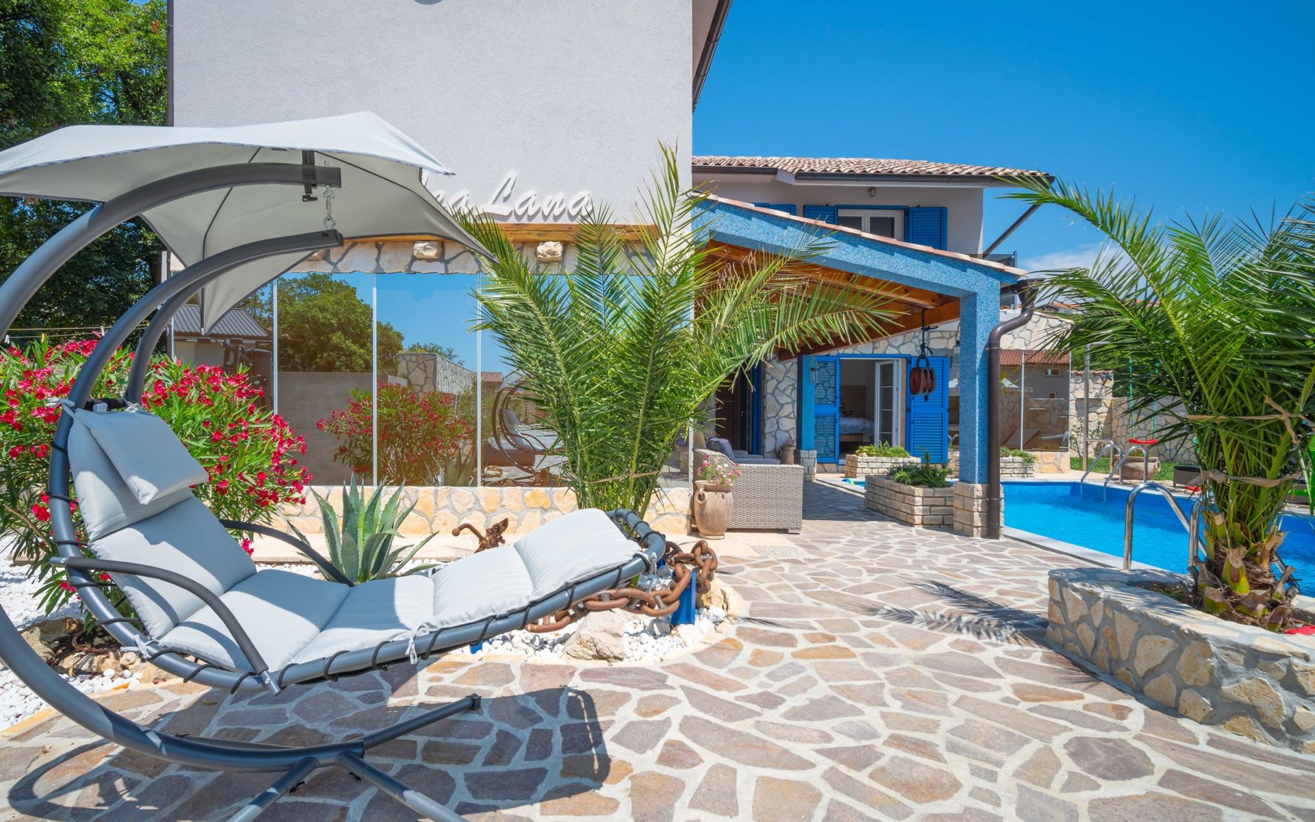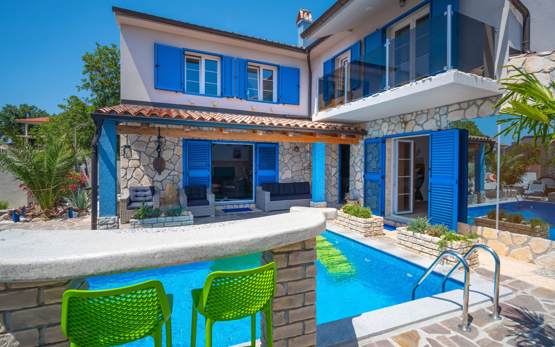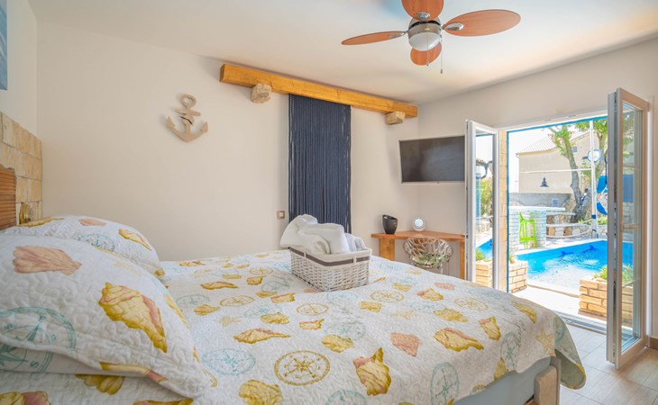 Villa "Lea Lana", 2 storeys. 500 m from the centre of Novi Vinodolski, in a quiet, sunny position, 700 m from the sea, 900 m from the beach. Private: property 1'000 m2 (fenced) with wildlife garden, swimming pool angular (7 x 4 m, depth 150 cm, seasonal availability: 01.May. - 15.Oct.) with internal staircase. WC in the pool area, outdoor shower, hot tub, pool house, table tennis, terrace (50 m2), garden furniture, barbecue, children's playground (slide, swing). In the house: internet access, table football, burglar alarm system, washing machine. Parking (for 3 cars) at the house on the premises. Shop, supermarket, restaurant 500 m, bus stop 1.4 km, pebble beach, public bathing area, concrete beach 900 m. Please note: suitable for families. Groups of teenagers on request only. By groups of young people double deposit is requested on arrival. Organizing a party is not allowed. Pool house arranged as a playroom (table football, darts, play station). Available: multifunctional exercise machine. Welcome drink and snack upon arrival.