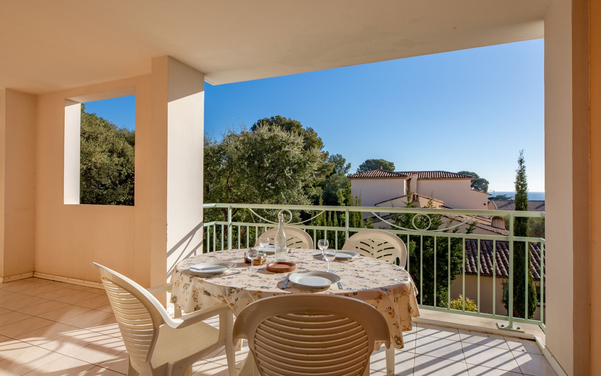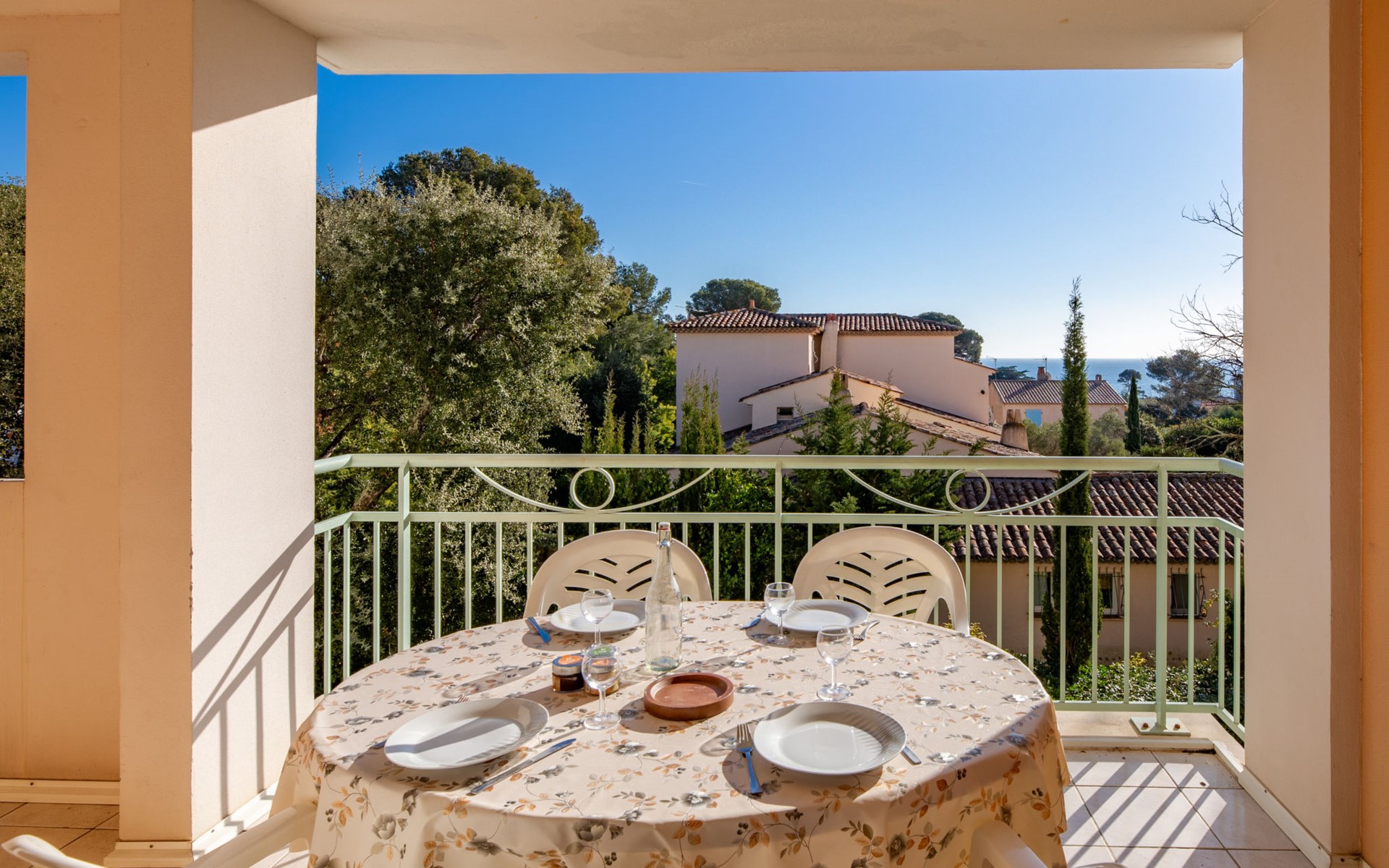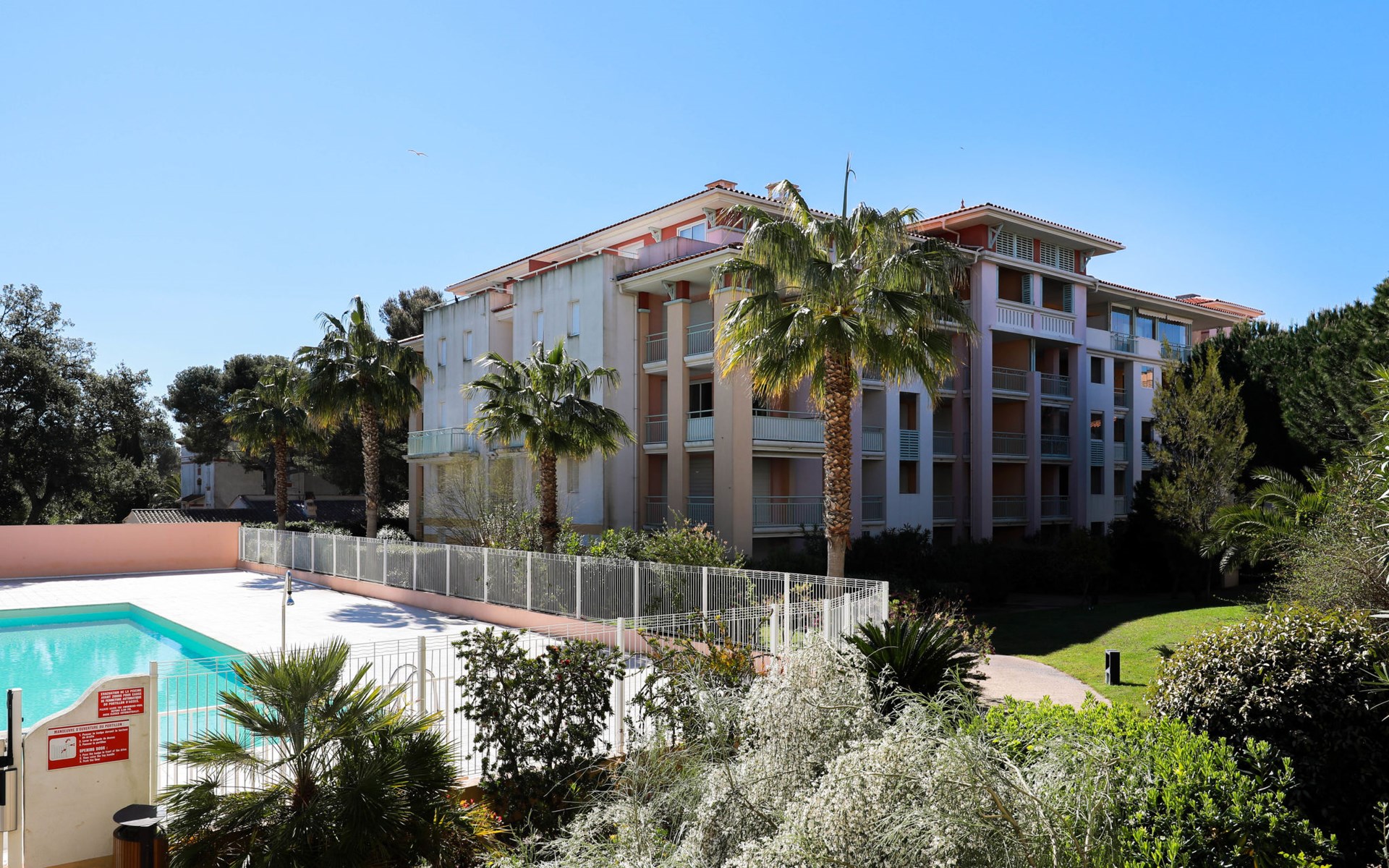 Modern, beautiful residence "Les Calanques du Parc", 4 storeys, built in 2003, surrounded by trees. In the resort, 200 m from the centre, in the residential district, 300 m from the sea, 300 m from the beach. For shared use: park (fenced), swimming pool angular fenced (seasonal availability: 15.May. - 30.Sep. pool opening hours: 09:00-20:00). Children's pool. In the complex: lift. Roofed, parking. Shop 350 m, shopping centre 5 km, 5 minute walk to the centre, bus stop "Grand Parc" 260 m, railway station "Fréjus" 6 km, sandy beach 500 m, park "Areca" 100 m, diving center 6 km, thermal baths "Thalasso de Port Fréjus" 6 km. Sports harbour 500 m, golf course (18 hole) 8 km, sailing school 7 m, riding stable 1 km, sports centre 500 m. Nearby attractions: Lunapark, Aqualand 5 km, Fréjus 6 km, Saint Raphaël 8 km, St Tropez 30 km, Cannes 47 km, Nice 71 km. Well-known ski regions can easily be reached: Auron, Isola 2000 150 km. Well-known lakes can easily be reached: Lac de St Cassien 45 km, Lac du Du Verdon 90 km. Hiking paths: Estérel 16 km, Sentier du Littoral 300 m. Please note: the keys‘ handover takes place by the agency Interhome in Saint Aygulf. Property ref. FR8541.140 is situated on the same property.