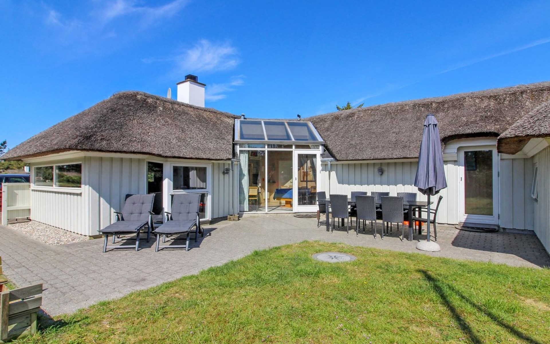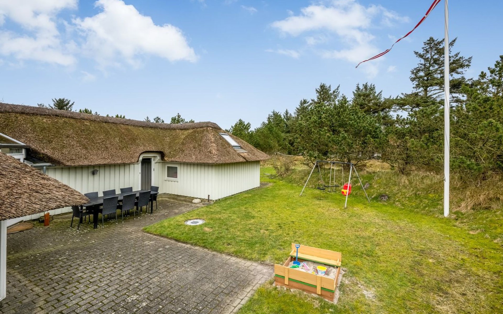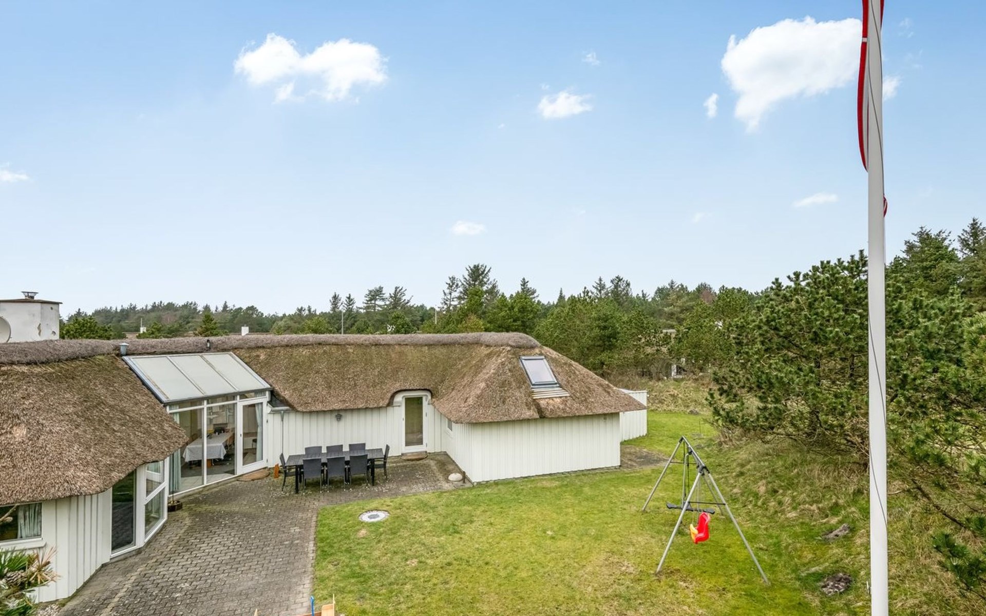 Single-family house, built in 1988. 1.6 km from the sea. Private: natural state property 2'000 m2. Terrace (72 m2), children's playground (swing). In the house: solarium, washing machine, tumble dryer. Parking at the house. Grocery 300 m. The owner does not accept any youth groups.