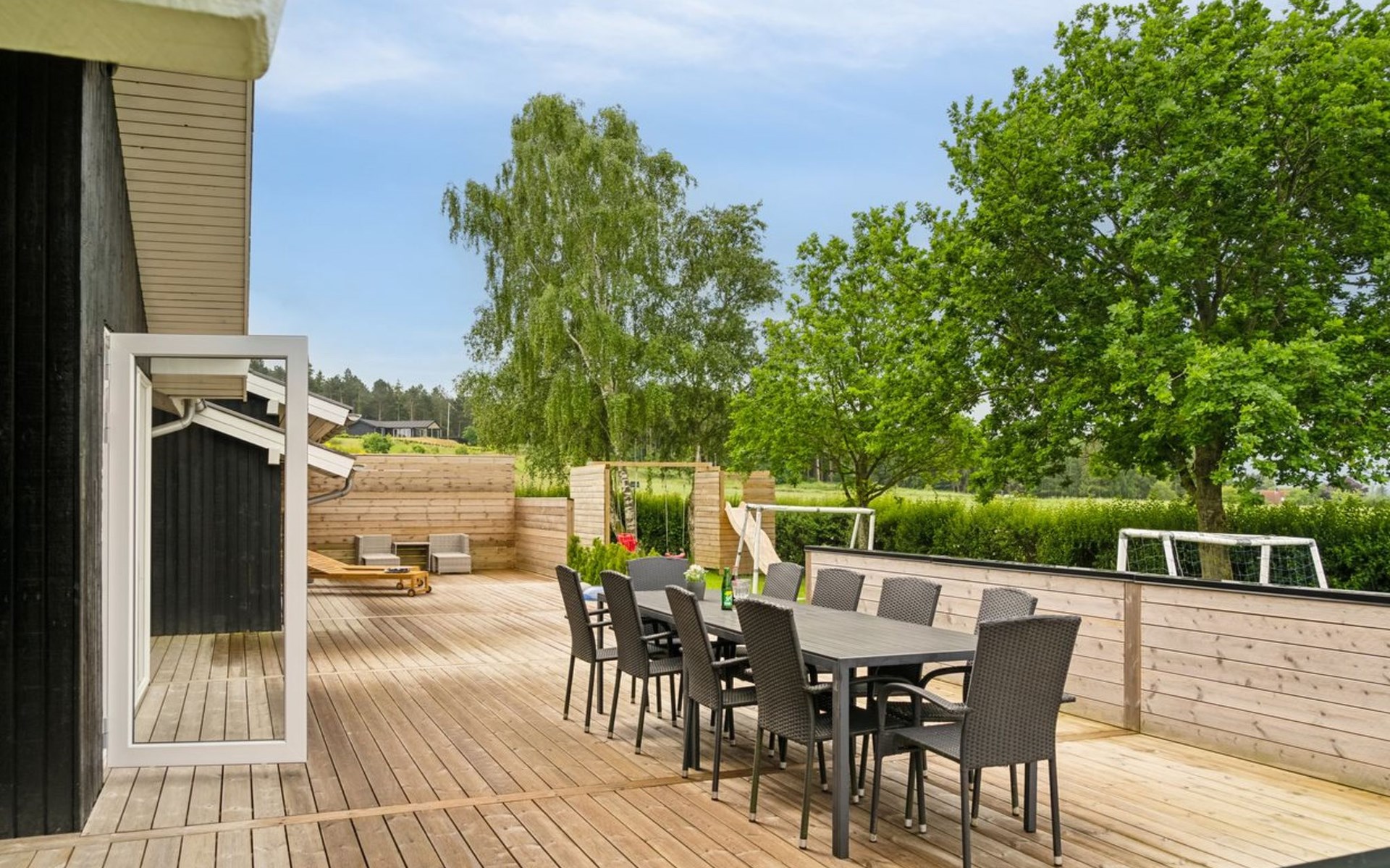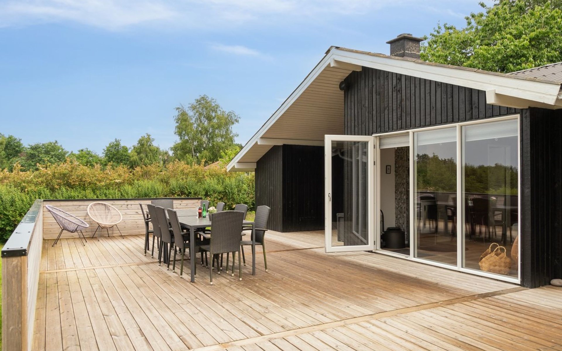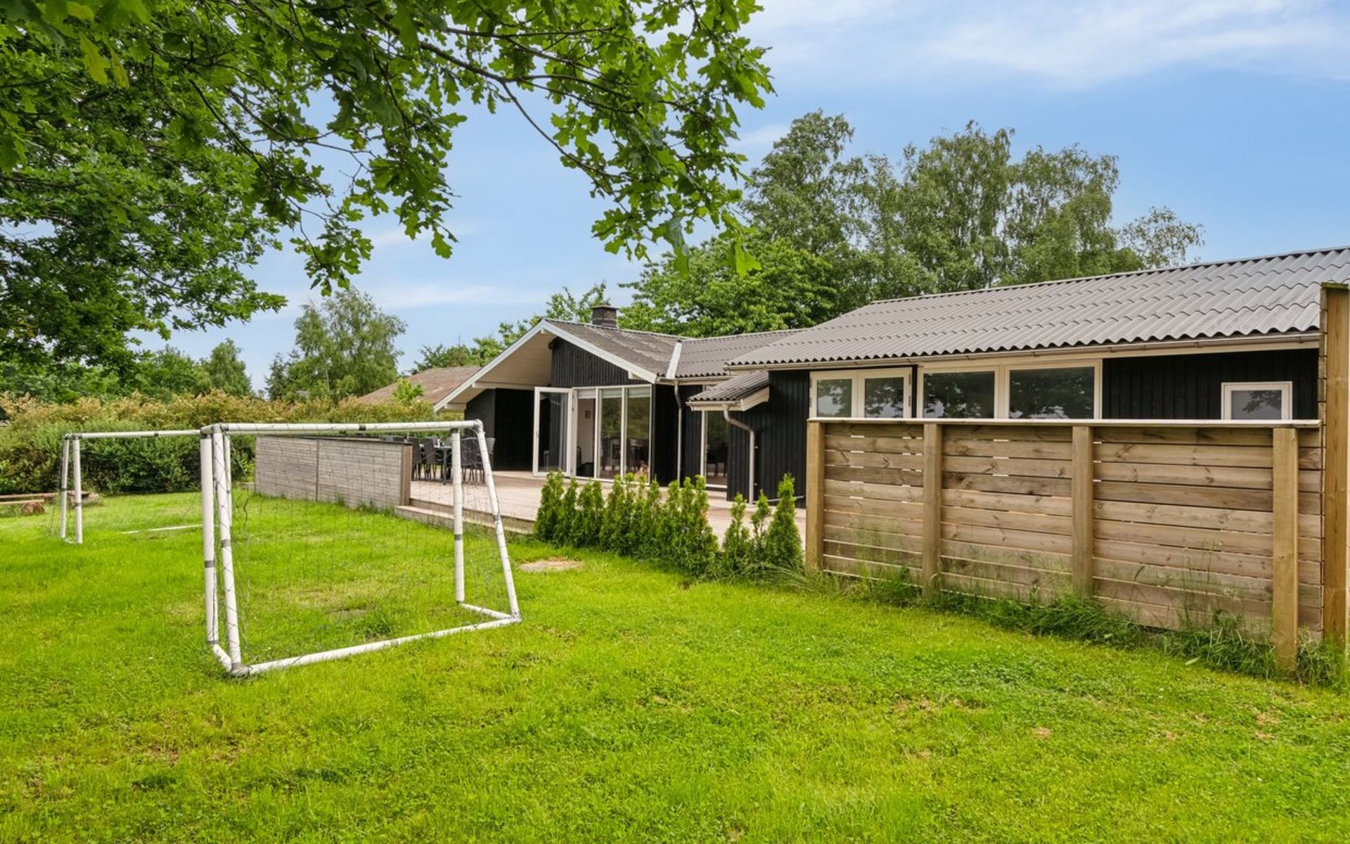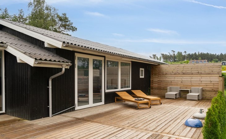 Single-family house, built in 1984. 800 m from the sea. Private: natural state property 1'200 m2, indoor pool (4 x 8 m, 32 m2, depth 170 - 170 cm). Barbecue, children's playground (slide, swing). In the house: sauna, washing machine, tumble dryer. Parking at the house. Grocery 1 km. The owner does not accept any youth groups.