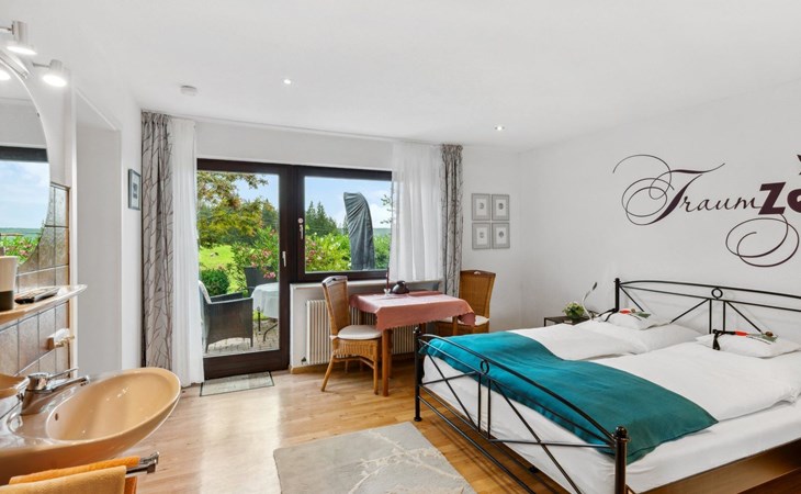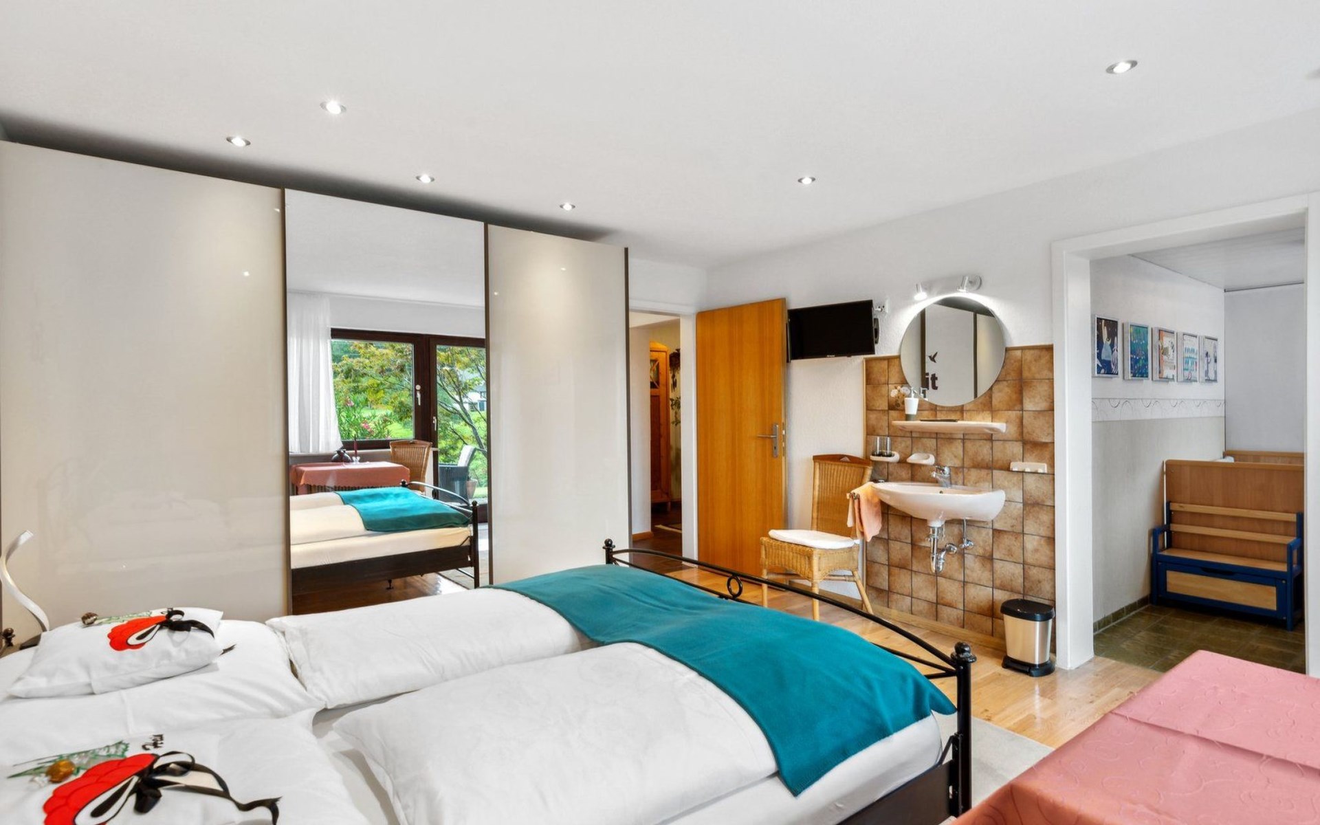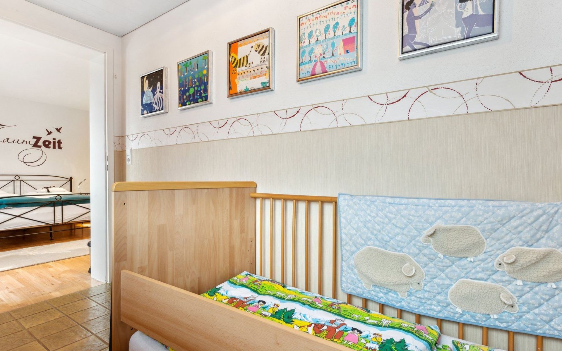 Bedroom 1, Other bedroom furnishings: Additional washbasin in the bedroom. The bedroom also has a TV. Adjacent to the bedroom is a baby room with a cot, which can also be exchanged for a large bed. Bed linen is included in the price. 2nd TV in the bedroom with satellite TV. Bedroom 2, Other bedroom furnishings: The small children's room adjoins the bedroom. It has, among other things, a changing mat. For older children, the cot can also be exchanged for a large bed. Please let us know the age of your child so that we can prepare the bed accordingly.