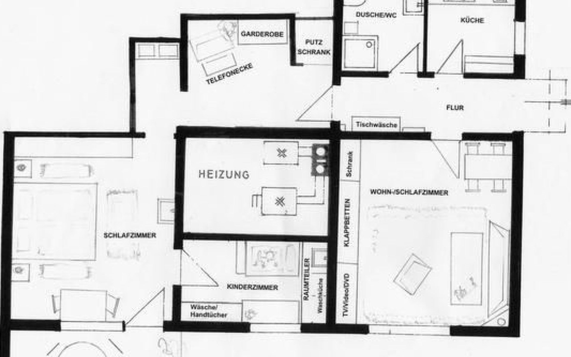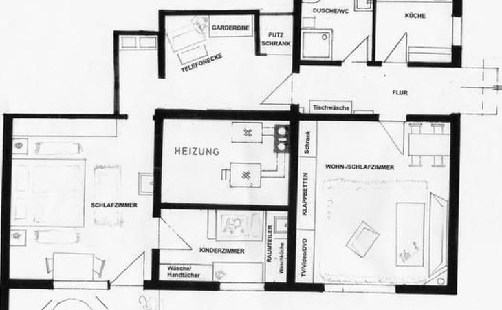 Brief description: Non-smoking house, Number of kitchens : 1, Other rooms : The living room is a bed-sitting room with 2 good wall folding beds. Adjacent to the bedroom is a small children's room. Living room, Other living room equipment: The living room is also another bedroom and has 2 good wall folding beds. The technical equipment consists of a flat screen TV, DVD player and stereo system. A large library is also available.