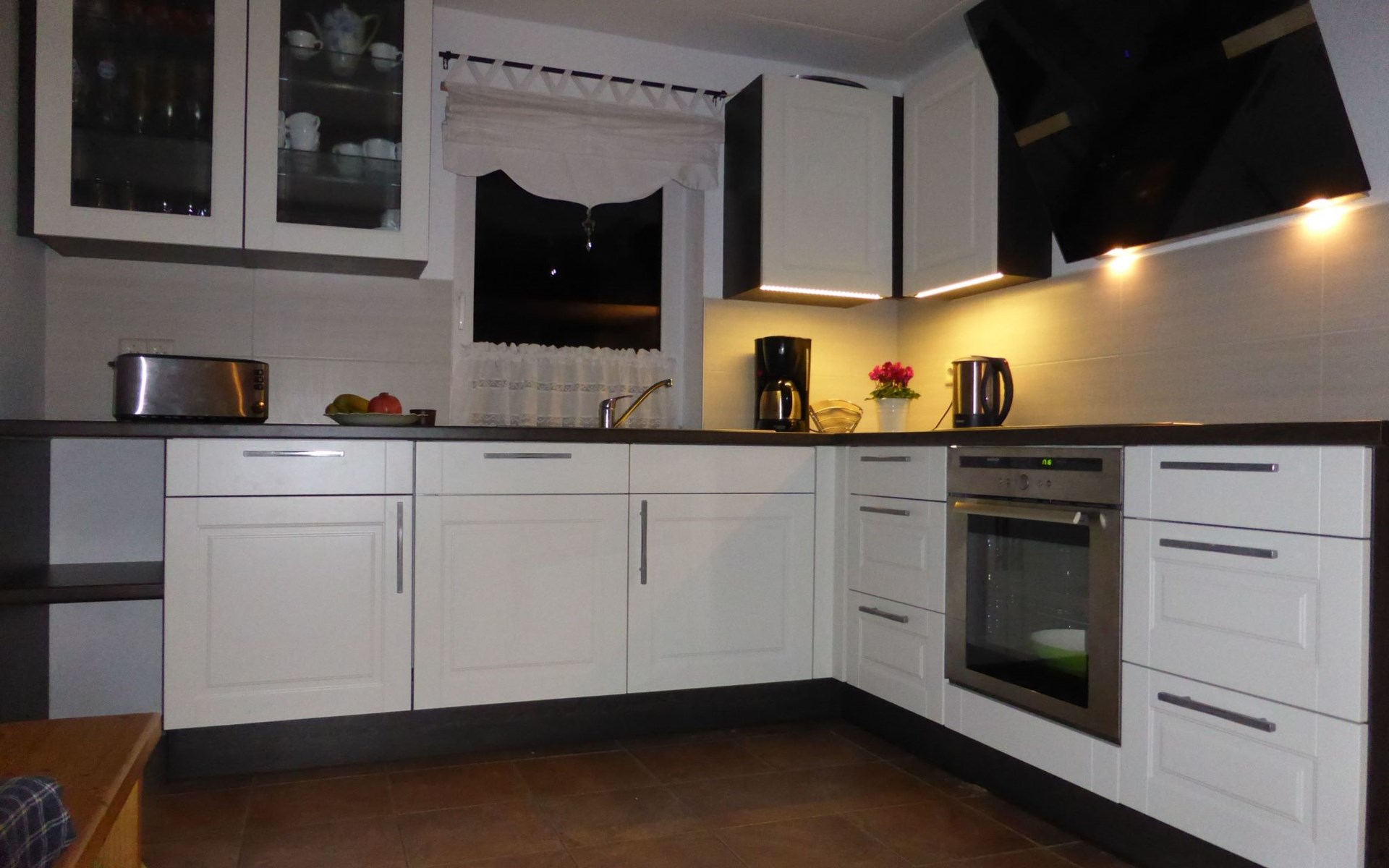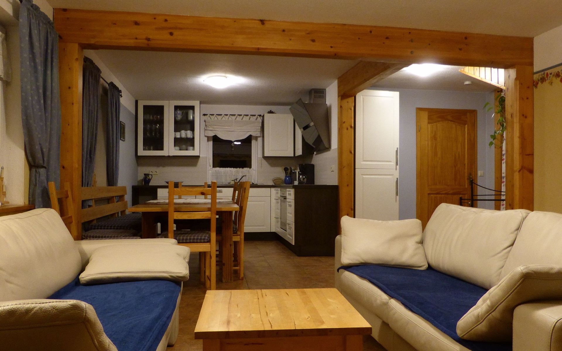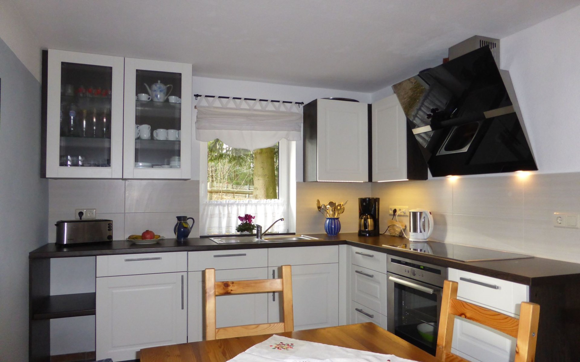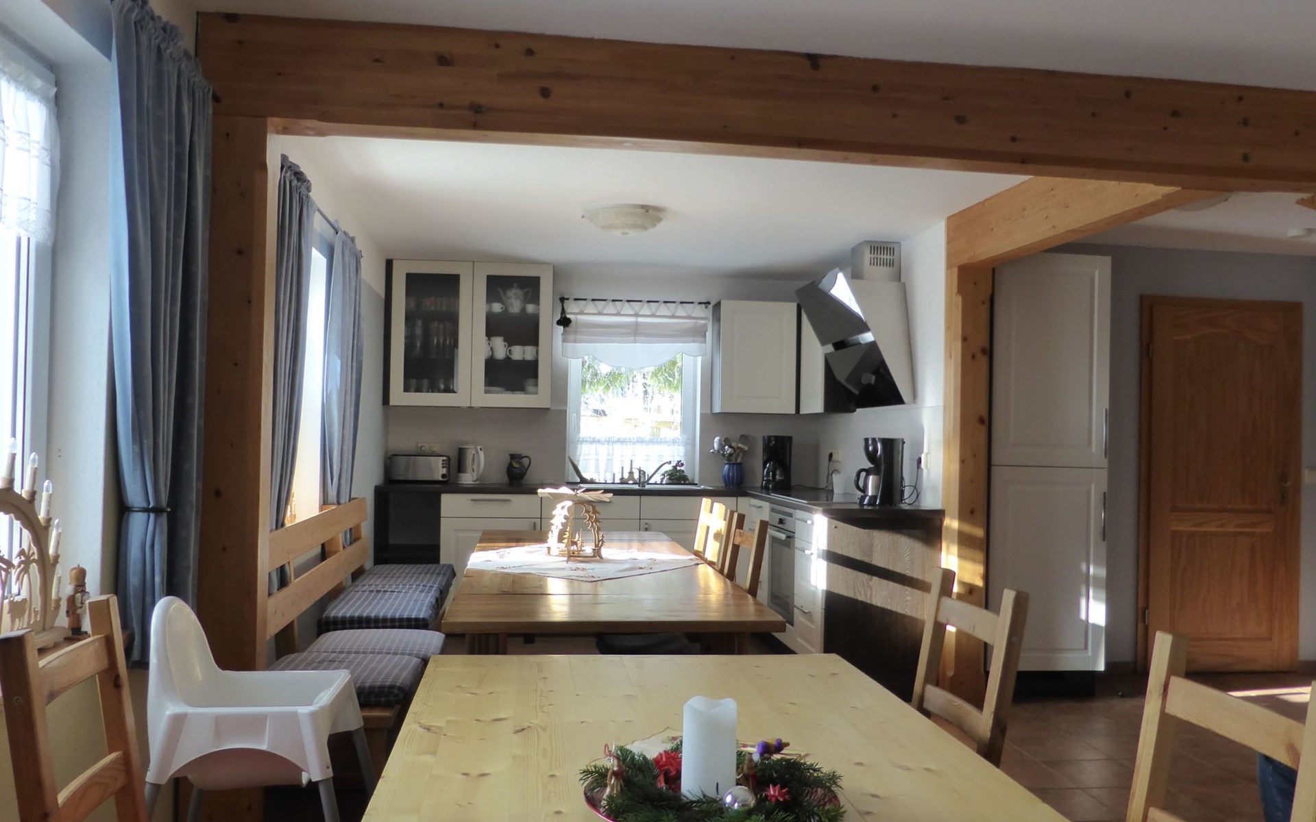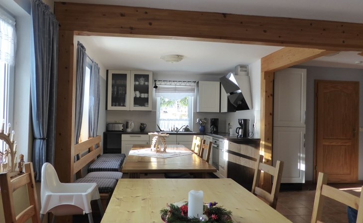 Inside the house, you will find well thought-out furnishings that leave nothing to be desired. The night-time electric heating provides cosy warmth in all rooms, while the fireplace is the focal point of social gatherings. A fully equipped kitchen with dishwasher, coffee machine and kettle is available for your exclusive use and makes self-catering a pleasure. A washing machine also makes your stay easier so that you can concentrate fully on experiencing and enjoying your holiday.