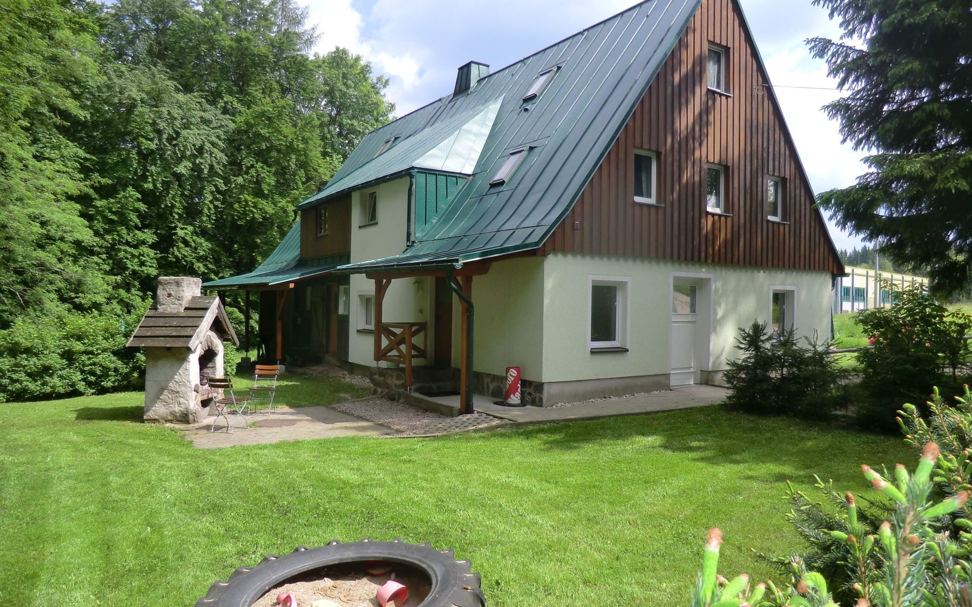 The house also offers an exclusive outdoor area, which is ideal for days spent in the open air. The terrace invites you to eat and relax together, while the garden offers space to play, have fun (climbing frame with swing and slide) or simply enjoy the peace and fresh air. Here you are free to enjoy the natural surroundings and the outdoor fireplace to the full.