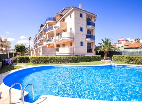 You can access the flat via the underground car park with the lift directly to the front door. 2 parking spaces are also available in the underground car park if you are travelling with two cars. You can also reach the ground floor of the apartment complex from the street via a small staircase and from there take the lift or stairs to the flat. There is a pool with children's pool for communal use in front of the apartment complex.
