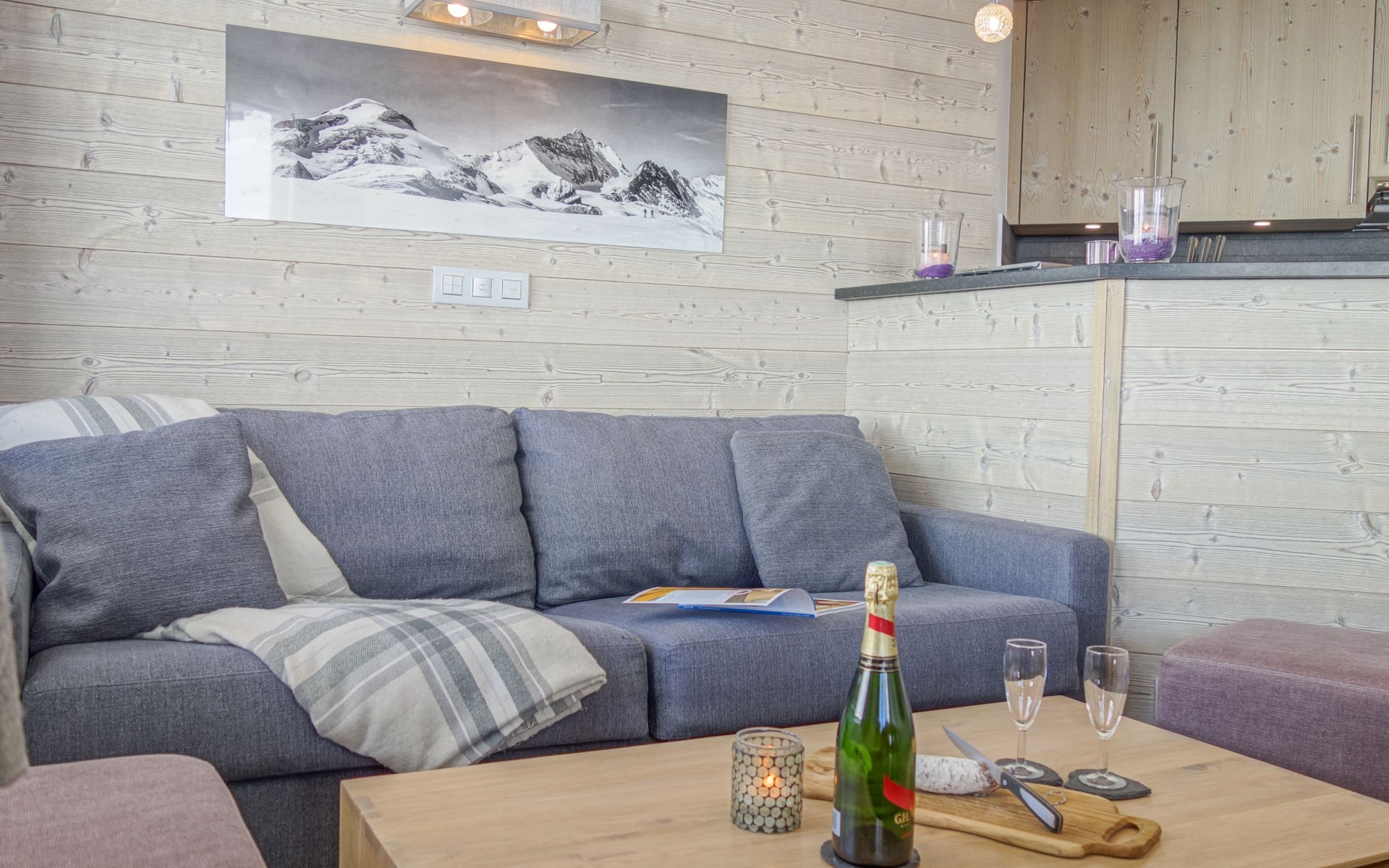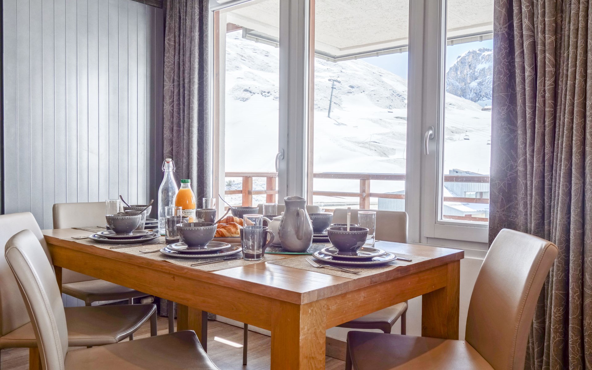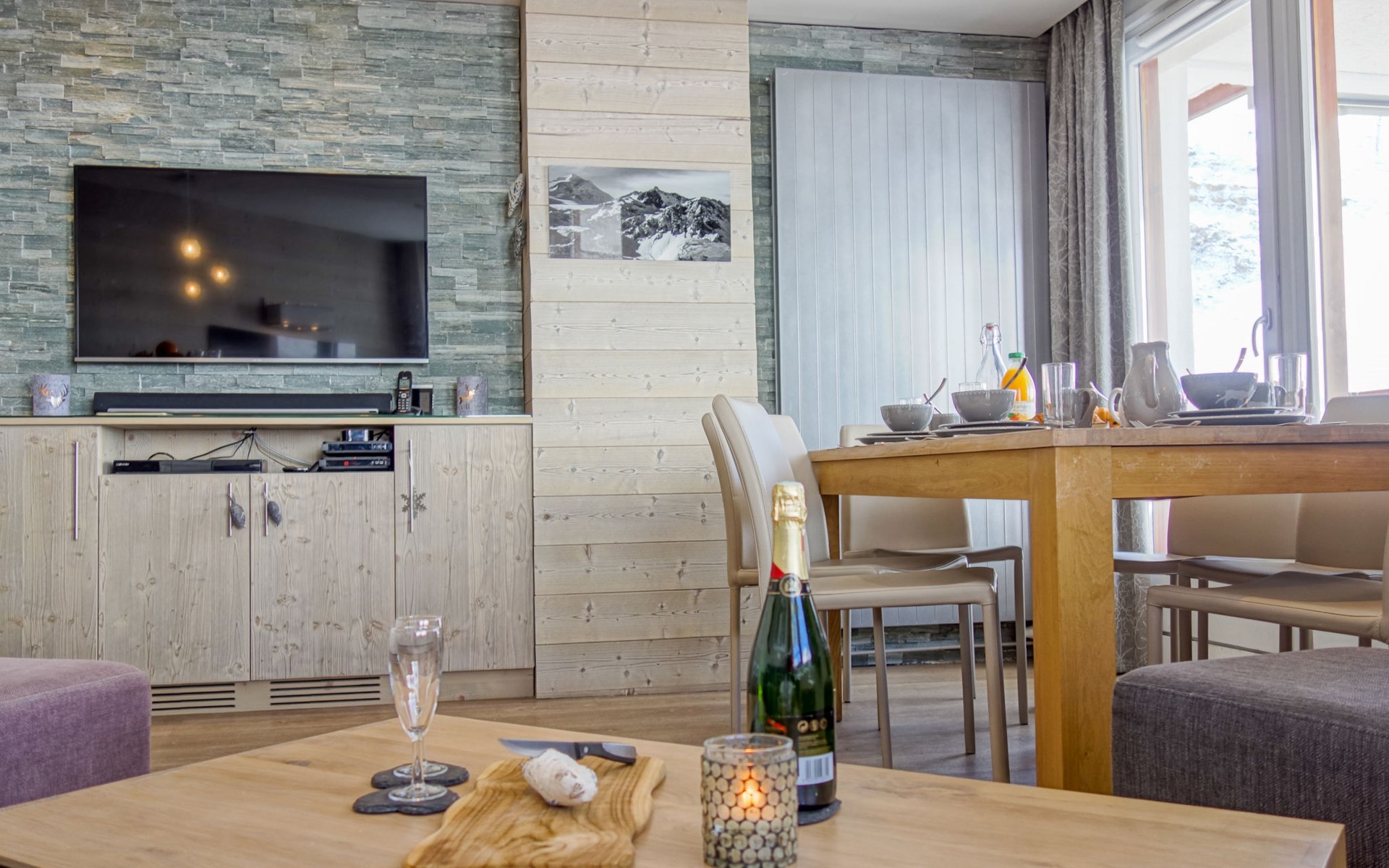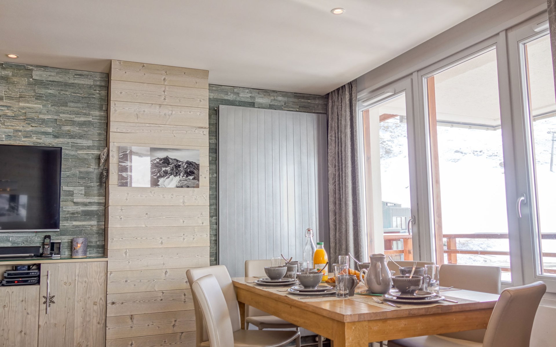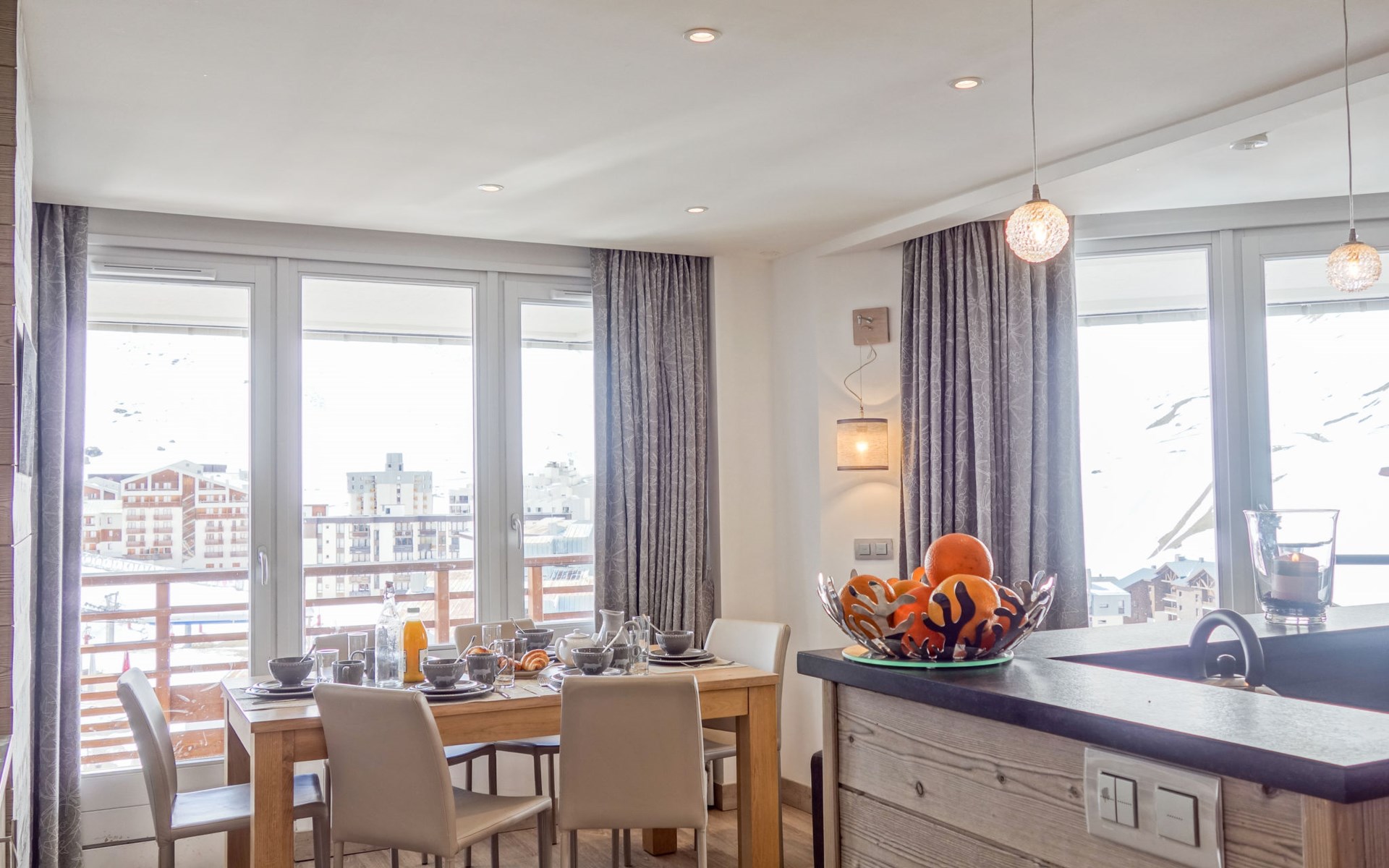 3-room apartment 70 m2 on 7th floor, south facing position. Spacious and bright, fully renovated, very luxurious and tasteful furnishings: living/dining room with 1 double sofabed (160 cm), TV and international TV channels (flat screen), laptop, radio and Home cinema. Exit to the balcony, south facing position. Entrance hall with 1 x 2 bunk beds (80 cm, length 190 cm). 1 room with 1 double bed (140 cm), shower, TV and international TV channels (flat screen), laptop and Home cinema. Exit to the balcony, south facing position. 1 room with 2 beds (80 cm), TV and international TV channels (flat screen), laptop and Home cinema. Exit to the balcony, south facing position. Open kitchen (oven, dishwasher, 3 induction hot plates, microwave, electric coffee machine, Capsules for coffee machine (Nespresso) extra, raclette grill, fondue Set (cheese)) with hatch. Bathroom, sep. WC. 3 balconies, south facing position. Balcony furniture, deck chairs (4). Very beautiful panoramic view of the mountains and the ski run. Facilities: washing machine, dryer, safe, iron, baby cot for up to 2 year olds, hair dryer. Internet (WiFi, free). Computer (free), Blu-ray player. Please note: suitable for families. Non-smokers only. Suitable for allergy sufferers, smoke alarm. Apartment is equipped with Apple TV, 3 TV UHD, IPad 3 and its SONOS system in every room and even in the bathrooms. 2 fridges 130L.