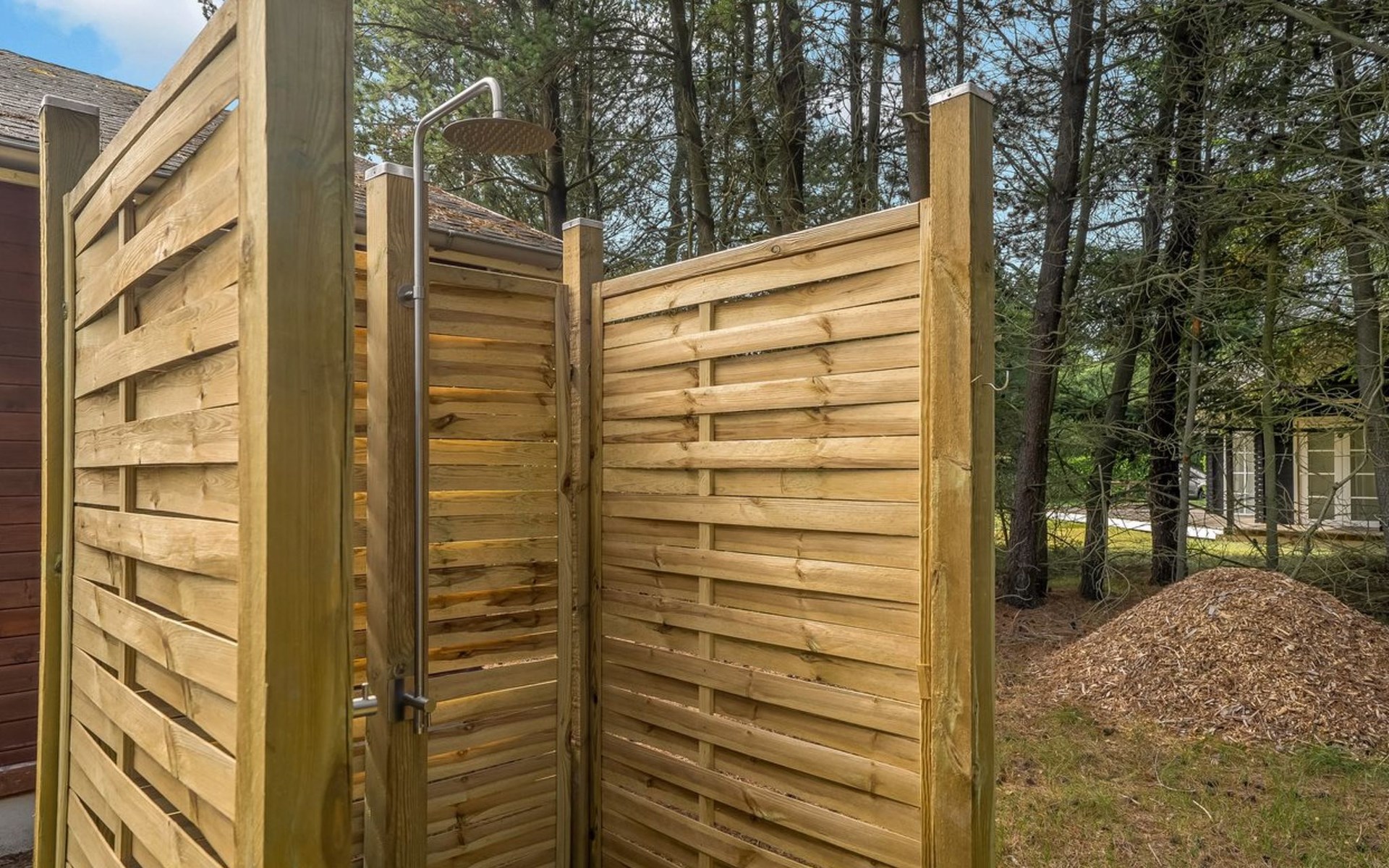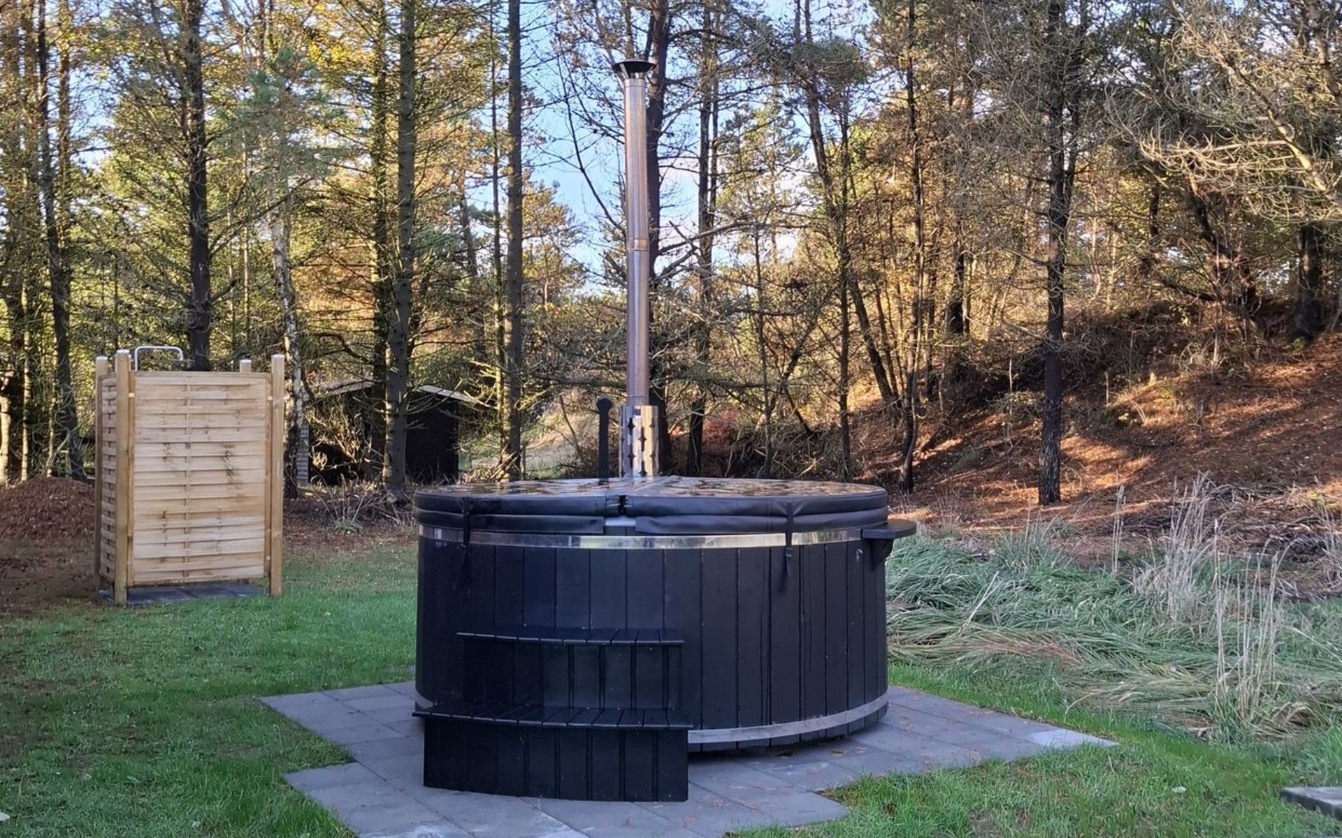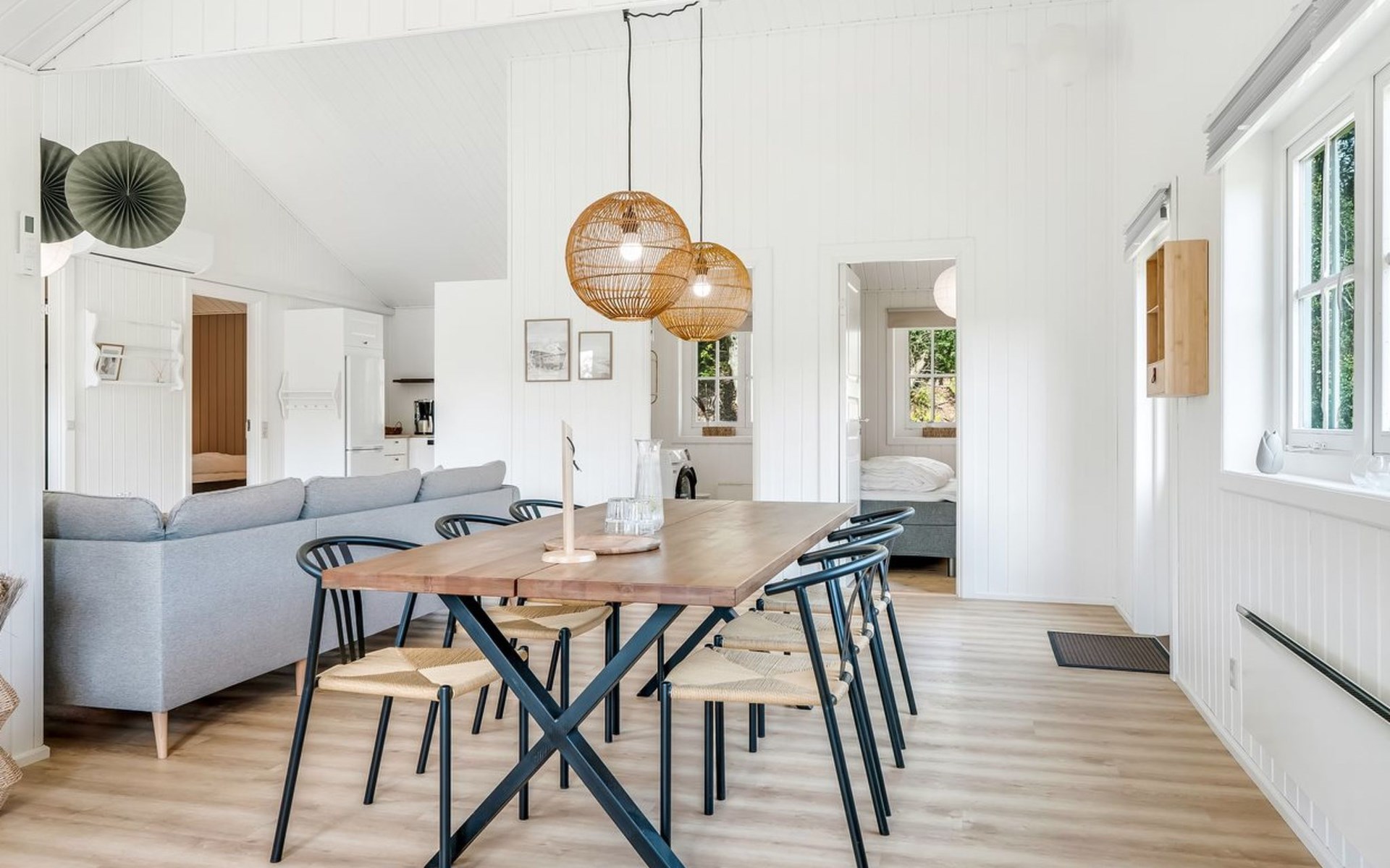 Single-family house, built in 2005. 8 km from the sea. Private: natural state property 1'203 m2. Outdoor shower. In the house: washing machine. Parking at the house. Grocery 9 km. Golf course 7 km. The owner does not accept any youth groups.