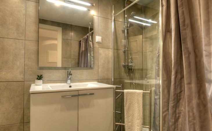 The outdoor space of this apartment is truly a gem. Guests can unwind on the private terrace or enjoy the expansive views from the roof terrace, offering a serene spot for relaxation or socializing. Though grilling is not permitted, these outdoor areas provide a perfect backdrop for enjoying a peaceful morning or a tranquil evening under the sky. The presence of a balcony further enhances the outdoor living experience, offering a private nook for guests to savor a drink or delve into a book.