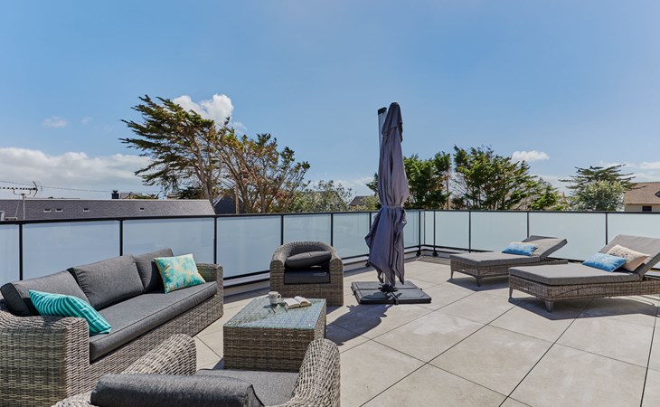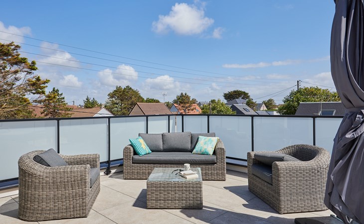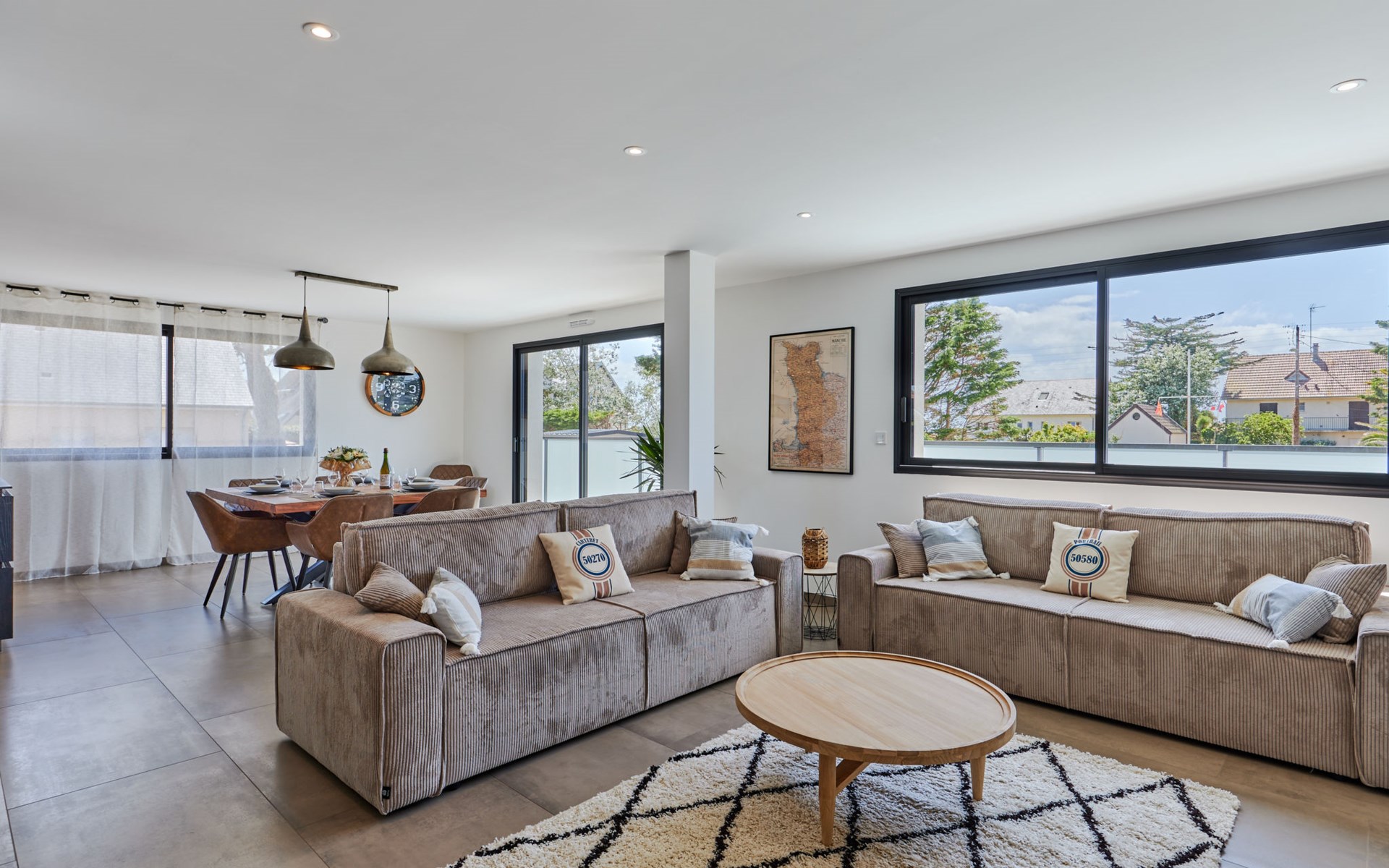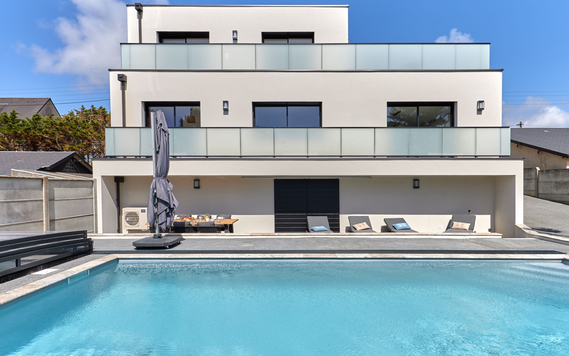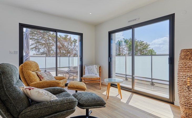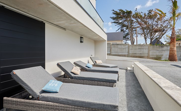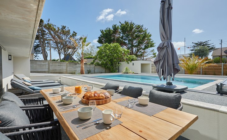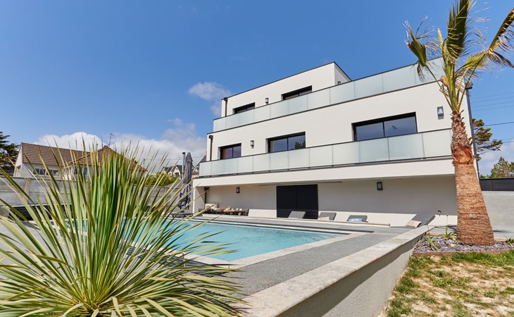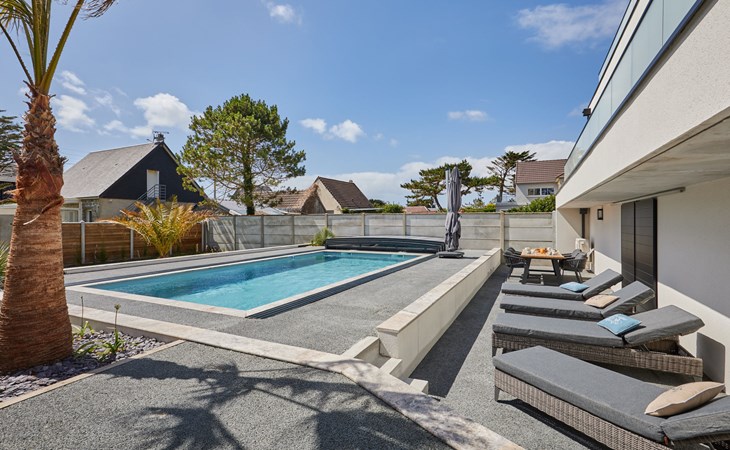 Modern single-family house " Denneweiller". In the resort, 300 m from the centre, in a quiet position, from the sea, 160 m from the beach. Private: property 600 m2 (fenced), beautiful garden to relax, indoor pool angular, heated (8 x 4 m, depth 150 cm, seasonal availability: 01.May. - 30.Oct.) with internal staircase and shutter cover. Parking (for 2 cars), single garage. Grocery 6 km, restaurant 300 m, bakery 6 km, sandy beach "Denneville" 160 m. Sports harbour 14 km, golf course (18 hole) 38 km, sailing school 6 km, riding stable 6 km. Nearby attractions: Portbail 6 km, Carteret 14 km, Cherbourg 43 km, Granville 65 km, Coutances 39 km, Le Mont saint Michel 120 km.