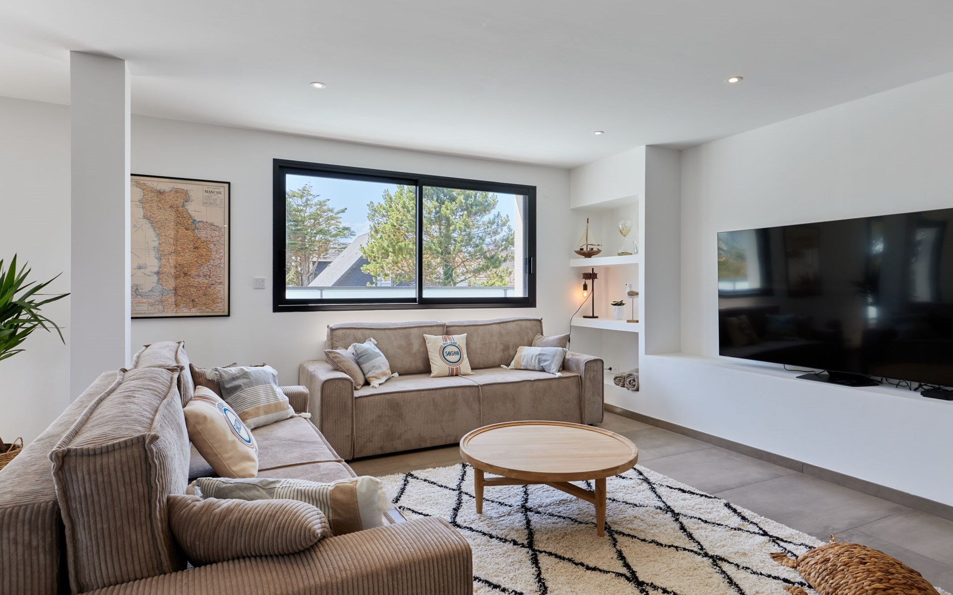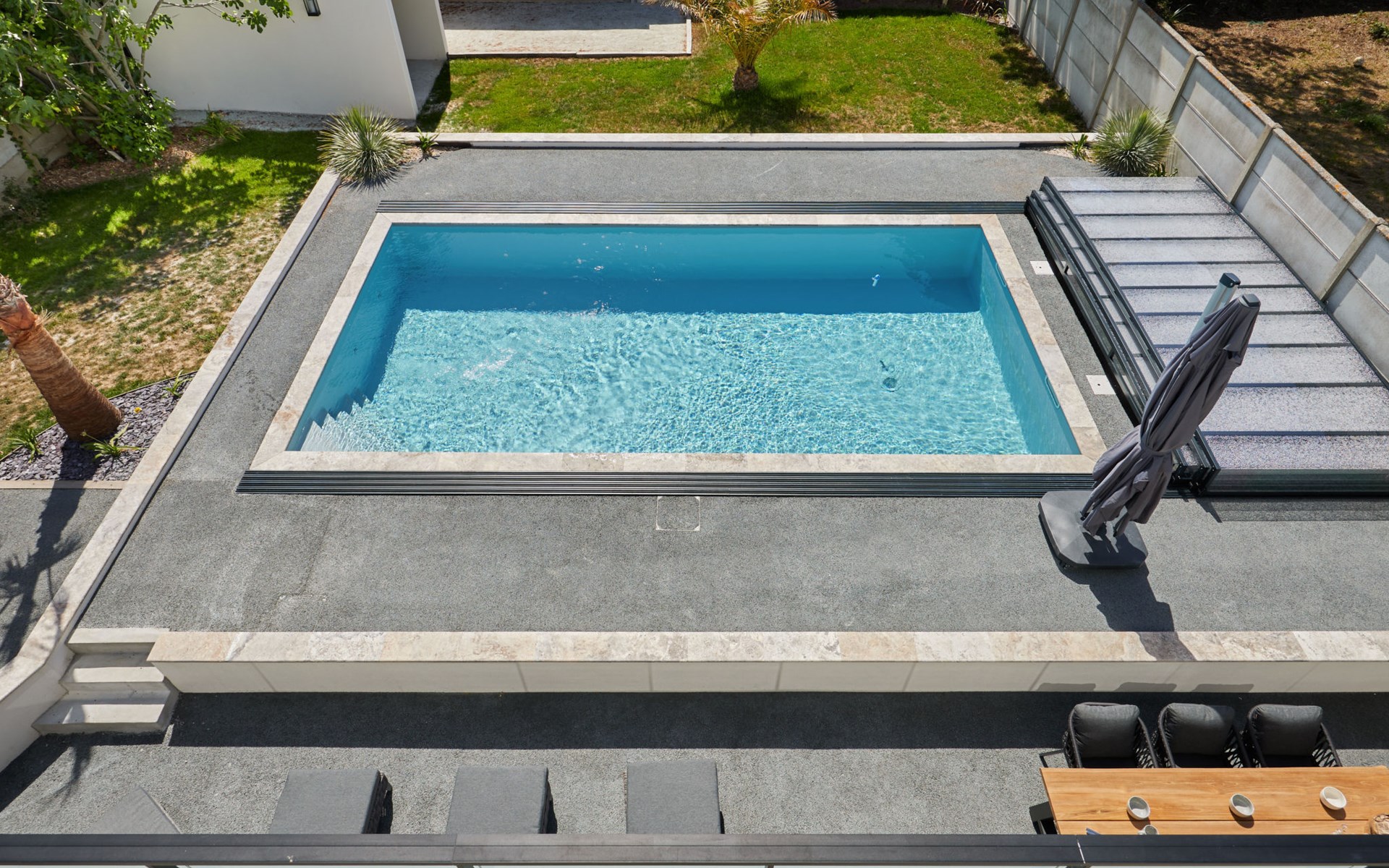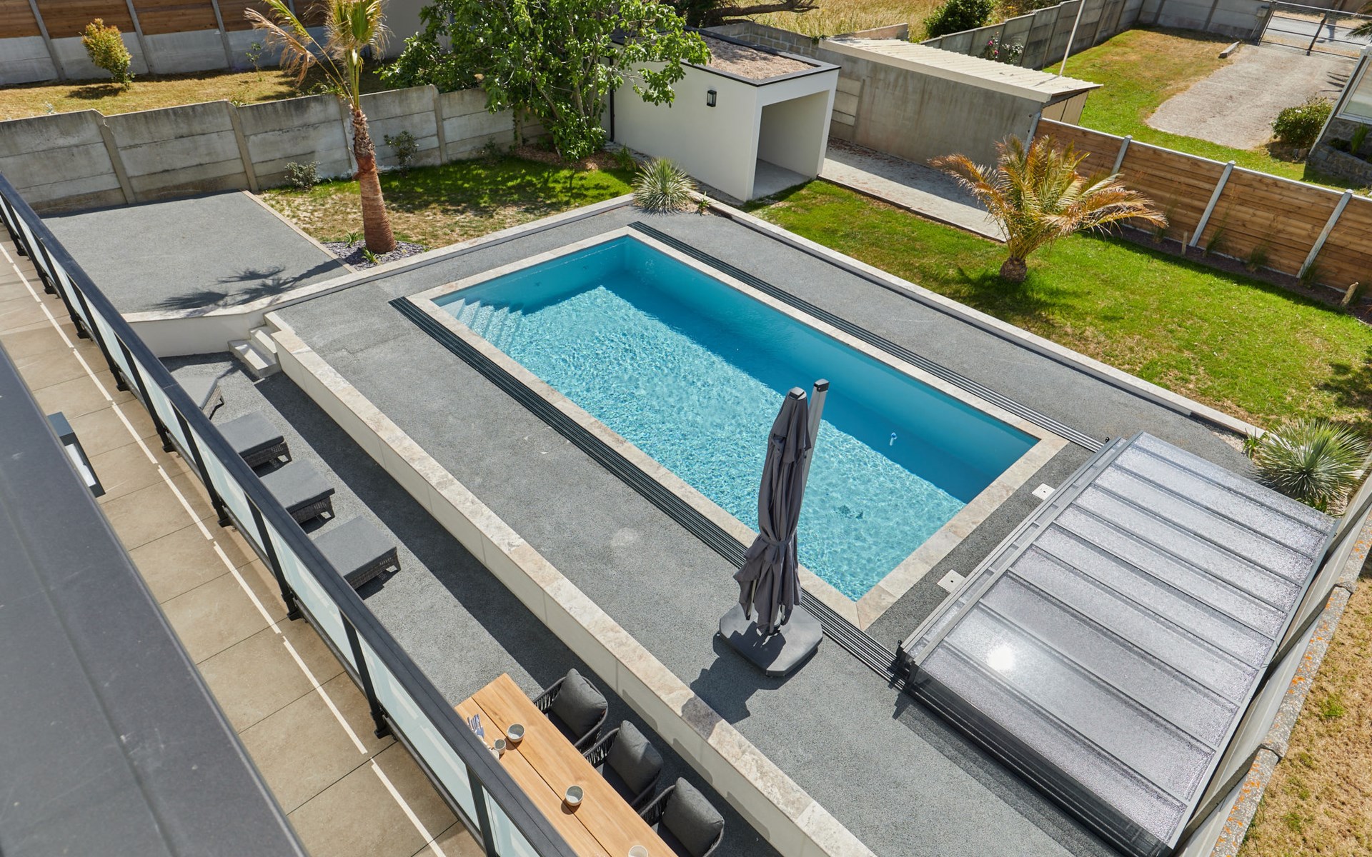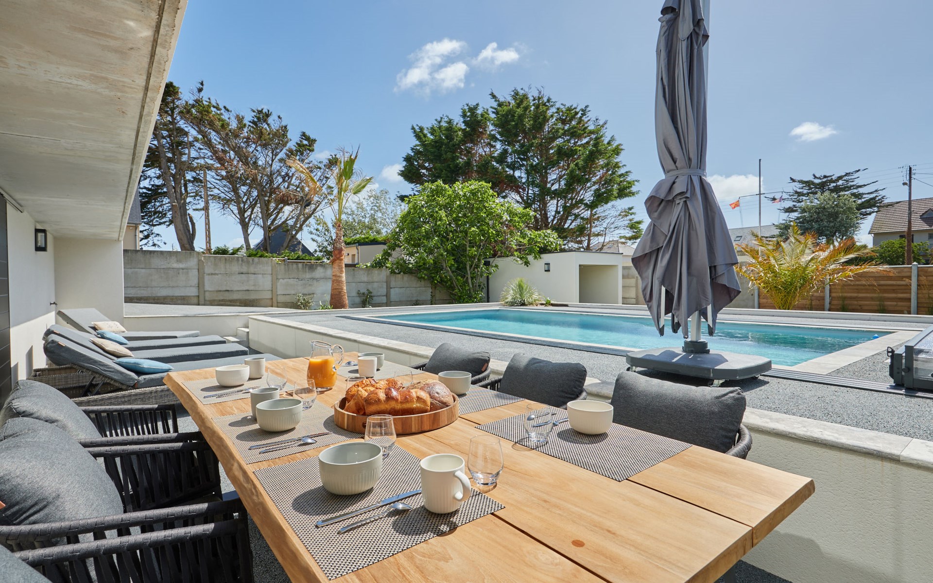 Modern single-family house " Denneweiller". In the resort, 300 m from the centre, in a quiet position, from the sea, 160 m from the beach. Private: property 600 m2 (fenced), beautiful garden to relax, indoor pool angular, heated (8 x 4 m, depth 150 cm, seasonal availability: 01.May. - 30.Oct.) with internal staircase and shutter cover. Parking (for 2 cars), single garage. Grocery 6 km, restaurant 300 m, bakery 6 km, sandy beach "Denneville" 160 m. Sports harbour 14 km, golf course (18 hole) 38 km, sailing school 6 km, riding stable 6 km. Nearby attractions: Portbail 6 km, Carteret 14 km, Cherbourg 43 km, Granville 65 km, Coutances 39 km, Le Mont saint Michel 120 km.