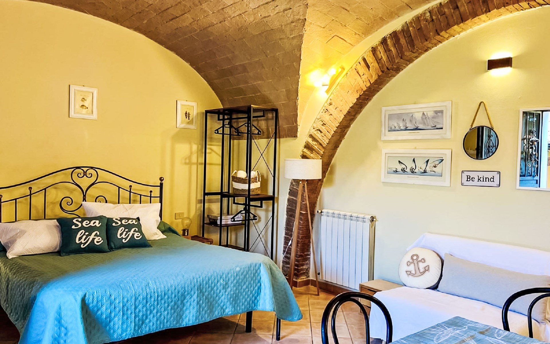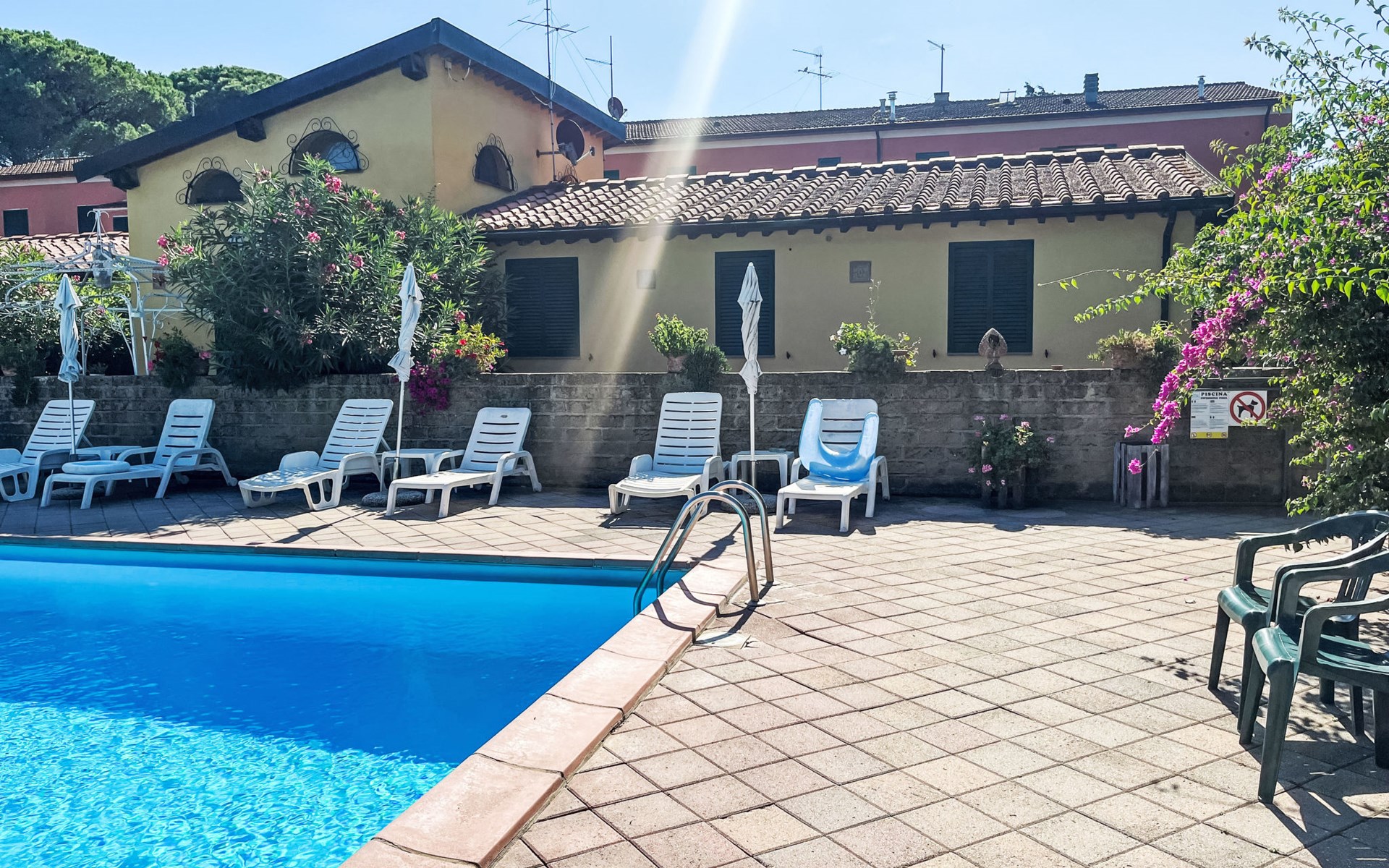 Resort "La vecchia fattoria Palazzeta", surrounded by fields. 2.5 km from the centre of San Pietro in Palazzi, 3 km from the centre of Cecina, 2.5 km from the sea, 2.5 km from the beach. For shared use: park, trees, swimming pool (14 x 7 m, seasonal availability: 18.May. - 15.Oct.). Private: property 37 m2 (fenced), parking on the premises. Shop 3 km, grocery 100 m, supermarket 2 km, restaurant 100 m, bakery 2 km, bus stop "V. Vecchia Livornese 22" 750 m, railway station "Cecina" 3.6 km, sandy beach "Le Gorette" 2.5 km, thermal baths "Calidario" 40 km. Marina 2.8 km, sailing school 2.8 km.