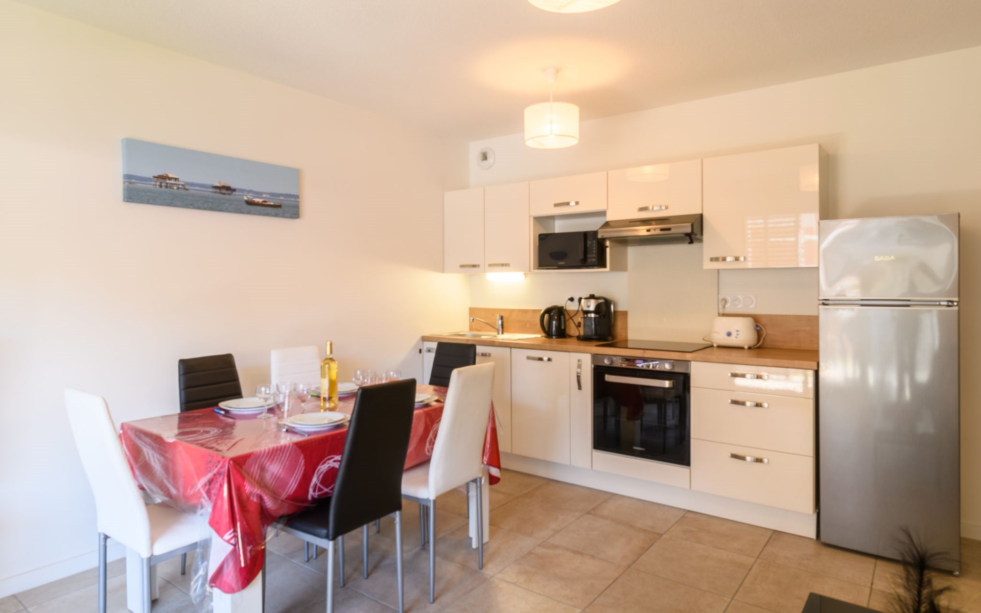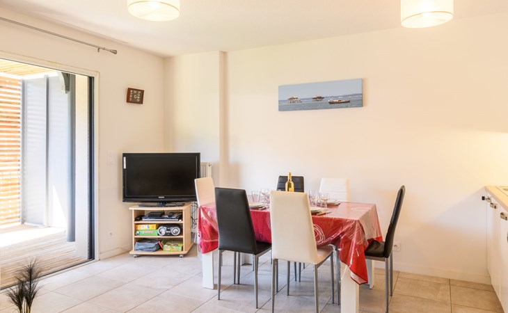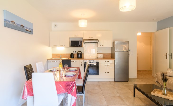 Arcachon: Beautiful residence "Couleurs Tchanquées", built in 2019. From the sea, 750 m from the beach. In the complex: lift, storage room for bicycles. Shop 450 m, grocery, supermarket 100 m, shopping centre 7.3 km, restaurant, bar, bakery, café 400 m, 3 minute walk to the centre, bus stop "Cours Desbiey" 210 m, railway station "Arcachon" 600 m, sandy beach "Thiers" 750 m, park "Mauresque" 700 m. Sports harbour 3.1 km, golf course (18 hole) 3.4 km, surf school 4 km. Nearby attractions: Aqualand 8.7 km, Marché Municipal 650 m, Navette Maritime pour le Cap Ferret 700 m, Dune du Pyla 9.5 km, Réserve Ornithologique du Teich 14.2 km, ArcaJetMarine 2.1 km. Well-known lakes can easily be reached: Lac de la Magdeleine 9.9 km, Lac de Cazaux 18.5 km, Lac de Sanguinet 26 km. Please note: the keys‘ handover takes place by the agency Interhome in Arcachon, 1 km. Additional accommodations can be booked.