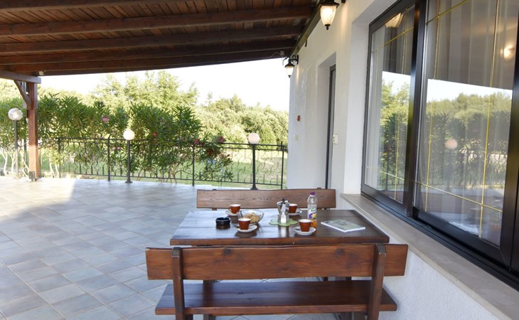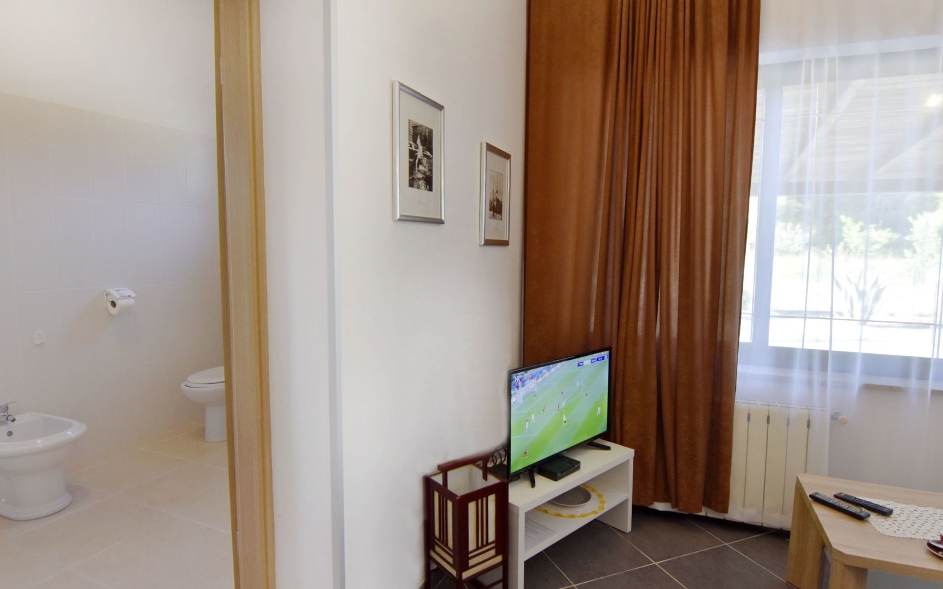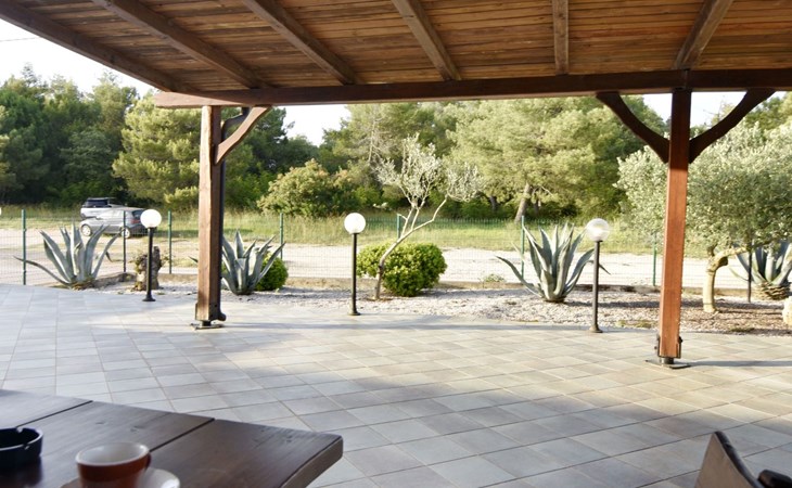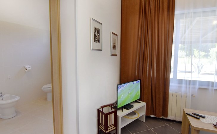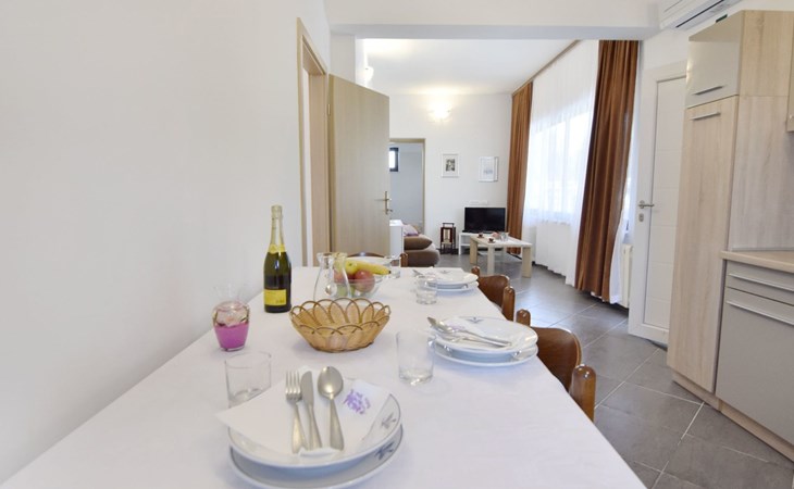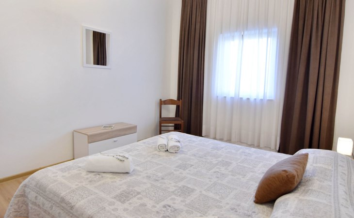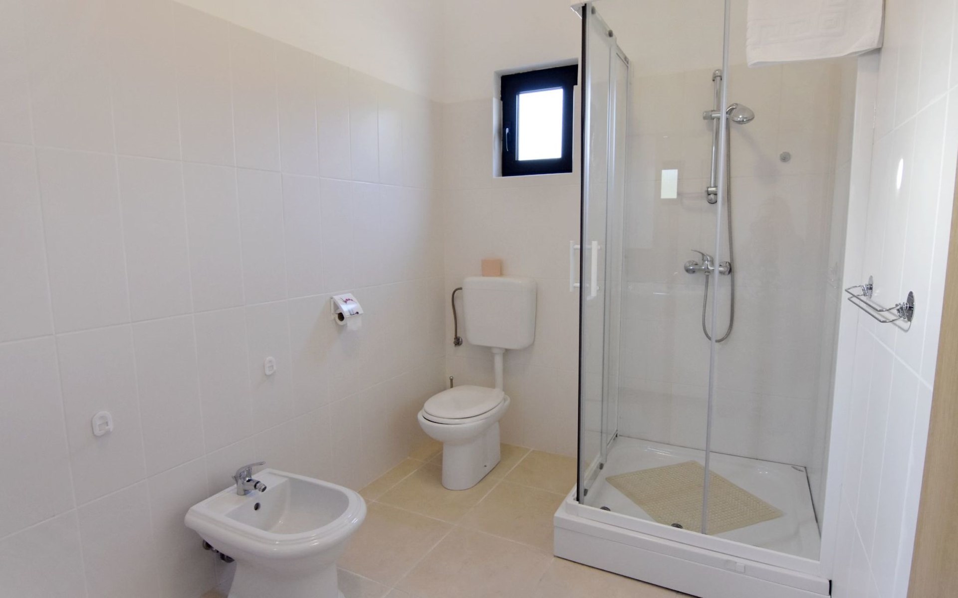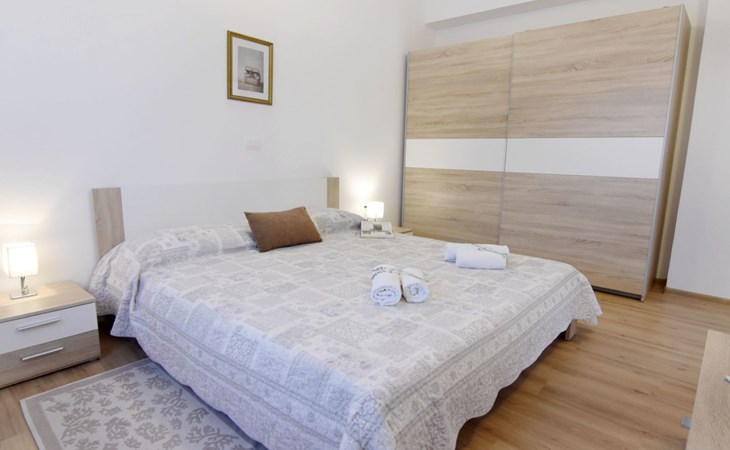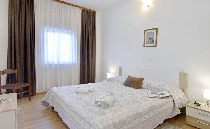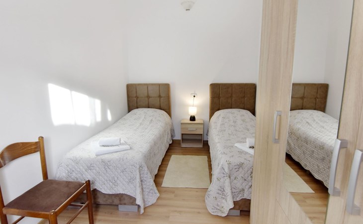 The 54 m² apartment in Grupija, Crveni Vrh, is located on the ground floor of a family house and has two bedrooms: one with a double bed and the other with two single beds. The apartment offers a large private covered terrace equipped with a table and chairs, ideal for evening gatherings or morning breakfasts. The kitchen is fully equipped with a refrigerator, stove, oven, kettle, coffee machine, and a table with four chairs. The living room is furnished with a sofa, coffee table, satellite TV, Wi-Fi internet, and air conditioning. The bathroom with a window features a shower cabin, bidet, toilet, sink with a cabinet, and a washing machine.