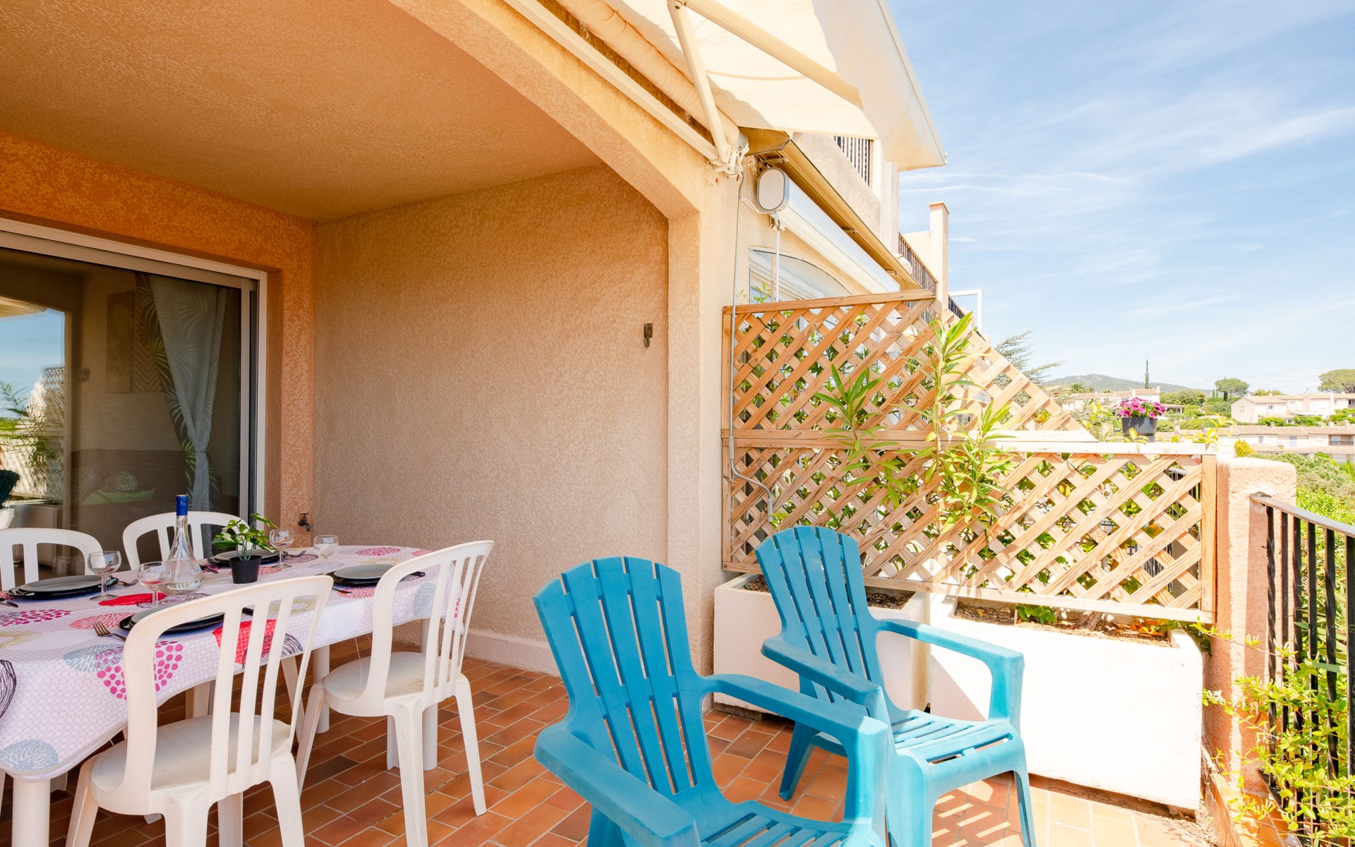 Residence "Le Domaine de la Croisette". On the outskirts, 1.5 km from the centre of Ste Maxime, in a sunny, elevated position on a slope, 400 m from the sea. For shared use: swimming pool (7 x 14 m, depth 90 - 210 cm, seasonal availability: 15.Jun. - 30.Sep.). Parking (limited number of spaces). Shop 700 m, supermarket 1.5 km, shopping centre 1.5 km, restaurant 400 m, bakery 1.5 km, bus stop 300 m, railway station "Saint-Raphael TGV" 20 km, sandy beach "La croisette" 400 m, thermal baths "Thalasso Les Issambres" 7 km. Sports harbour 2 km, golf course (18 hole) 5 km, tennis 600 m. Nearby attractions: Aqualand waterpark 5 km, Azur Park attractions 10 km, Saint-Tropez/Ramatuelle 14 km, Port-Grimaud 8 km, Gorges du Verdon 95 km, Navette / shuttle boat St-Tropez 15min 2 km. Hiking paths: Massif des Maures 5 km, Massif de l'Esterel 38 km. Please note: residence with electric gates. The keys‘ handover takes place by the agency Interhome in Sainte-Maxime. Airfield 70 km from the property.