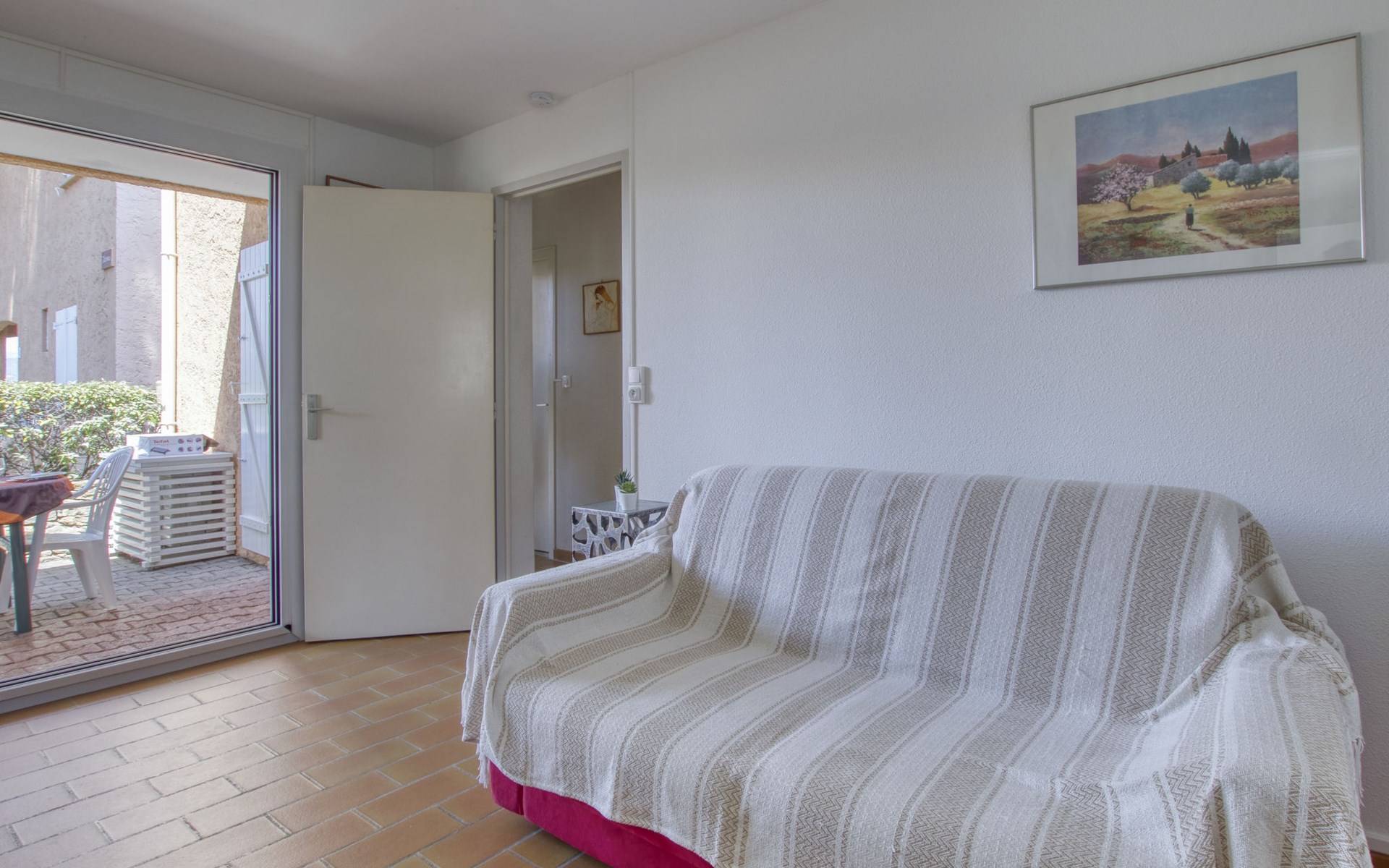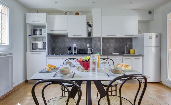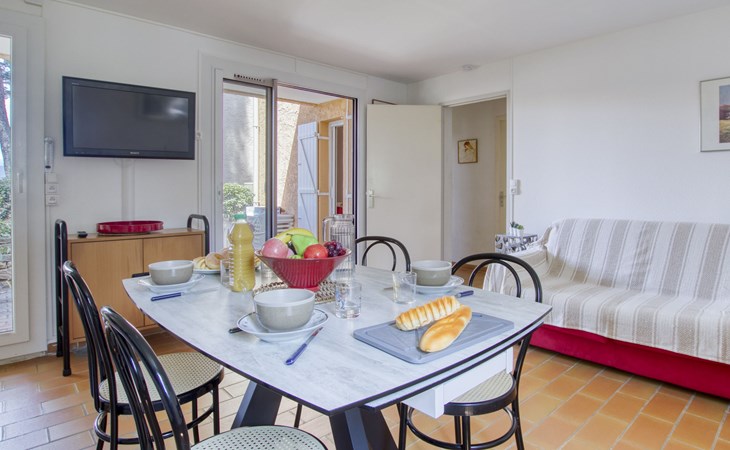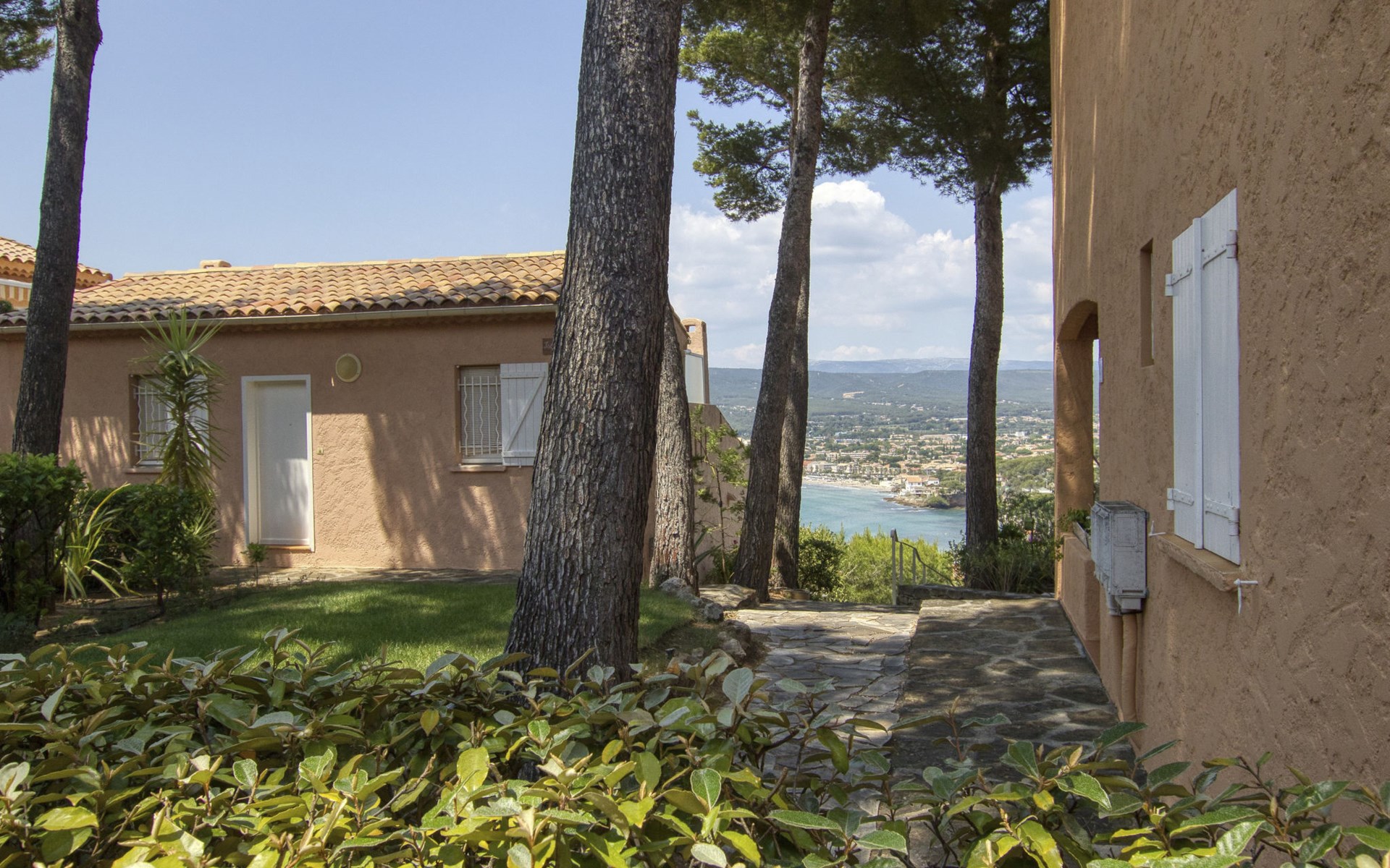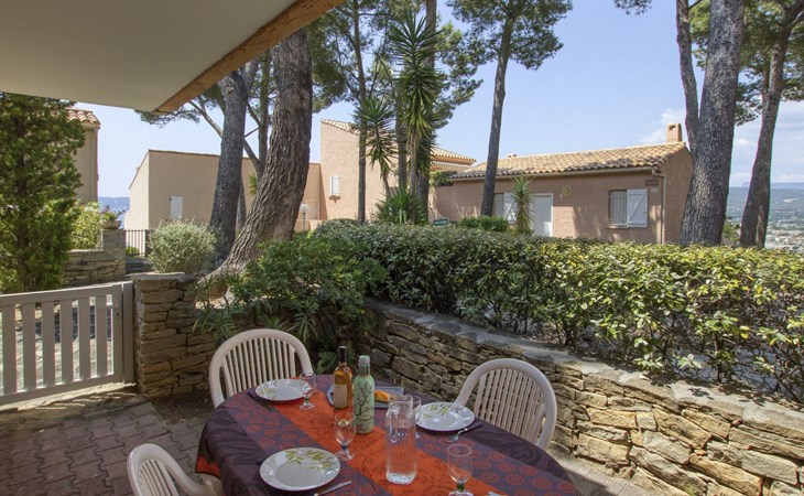 La Madrague 2 km from Saint Cyr Sur Mer: Residence "Mas de la Madrague", surrounded by trees. Above La Madrague, in a quiet, elevated position on top of a hill, 300 m from the sea, 300 m from the beach, in a cul-de-sac. Parking (limited number of spaces), public parking on the road. Supermarket 2.5 km, restaurant 400 m, bus stop "Le Viguier" 2.6 km, railway station "Saint Cyr les Lecques-La Cadière" 3.8 km, sandy beach 500 m, shingle beach 300 m. Golf course (18 hole) 3.5 km. Nearby attractions: Aqualand 3 km. Hiking paths: Sainte Beaume, Sainte Victoire, Calanques Port-Cros, Porquerolles, Ile verte, Embiez, Figuerolles, Cassis. Please note: residence with electric gates. Additional accommodations can be booked. The grocery store is located on 100 meters and open from 1 May to 30 September. Numerous steps in the residence.