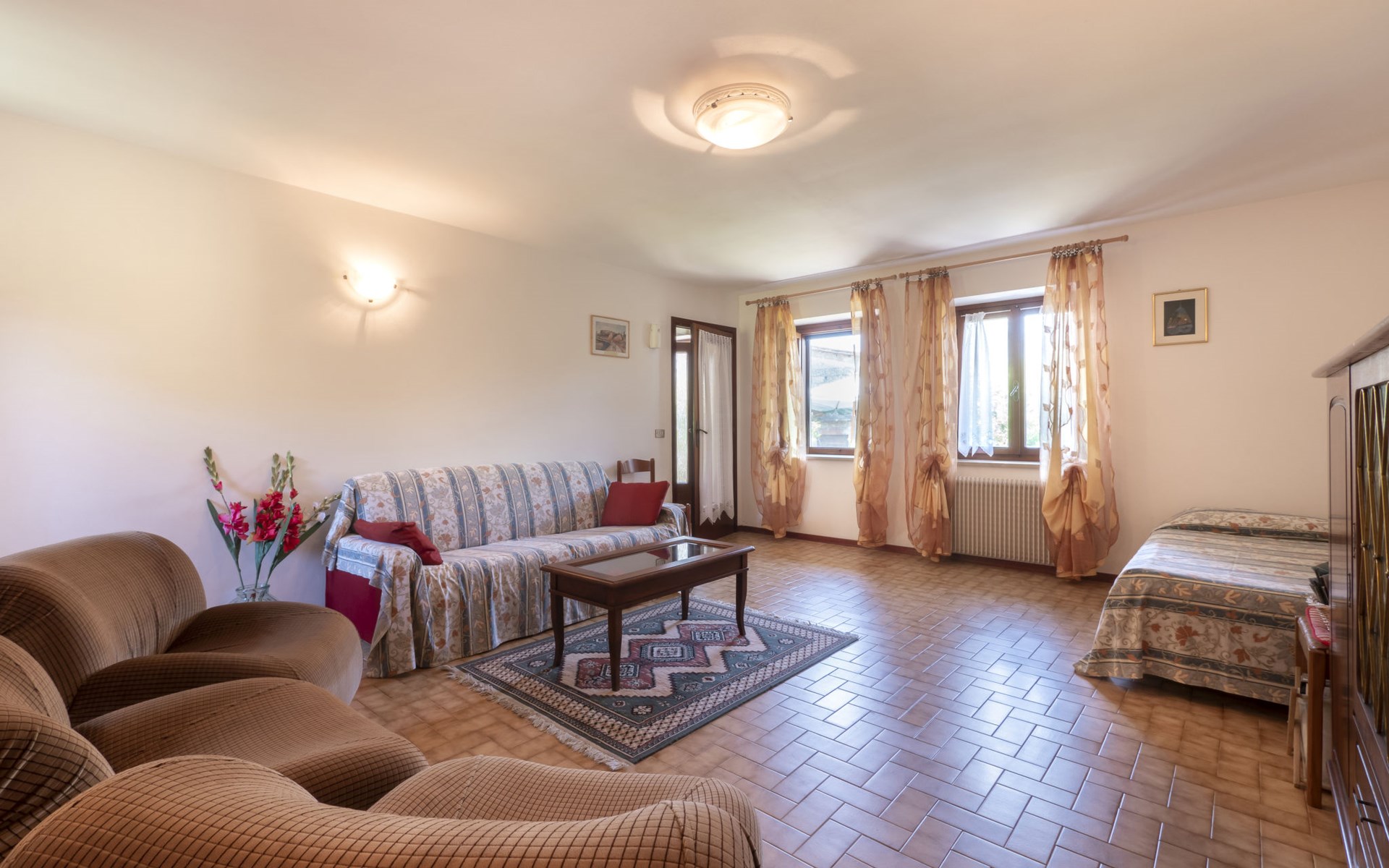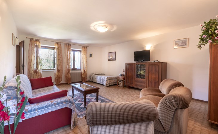 House "Il Castelliere". 3 houses in the residence. In the district of Arcano Inferiore 1.5 km from the centre of Rive d'Arcano, 4.5 km from the centre of San Daniele del Friuli, 20 km from the centre of Udine, in a quiet position, 65 km from the sea, in the countryside. Heating available only from 11.Oct. - 25.Apr.. Parking at the house on the premises. Shop 1.5 km, bus stop 1 km, pebble beach "Tagliamento" 11 km. Golf course (18 hole) 5 km.