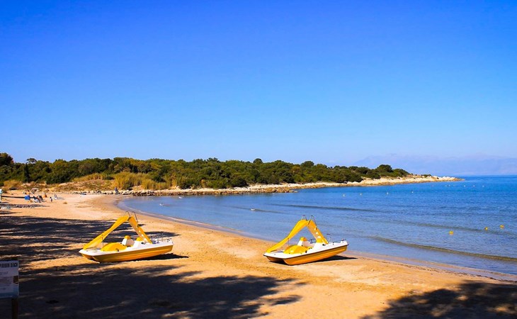 The beach of Agios Spyridon (N/A) is another beautiful and quiet beach of the island. On the border between the North and the Northeast, the beach is located near the protected wetland of Lake Antinioti, between the tourist resorts of Kassiopi and Acharavi. The main beach there is utterly child-friendly. The waters are shallow and the beach is sandy. For those who love hiking, there is an amazing path that starts from the Antinioti lagoon and leads to the nearby area of Almyros, passing through a forest of unique beauty. On the beach there is the church of Agios Spyridon, from where the beach got its name, and some taverns.