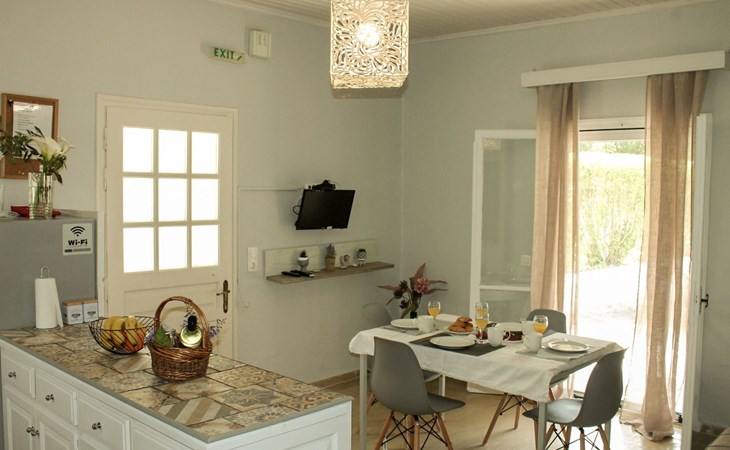 Amalia Ena is in the countryside, but occupants can easily find all types of facilities within short walking distances, such as a sandy beach (ideal for children), tavernas, super markets, boat or car hire, and, most importantly, amazing walking paths through or around the Nature Reserve and olive groves, all the way up to the village of Old Perithia.