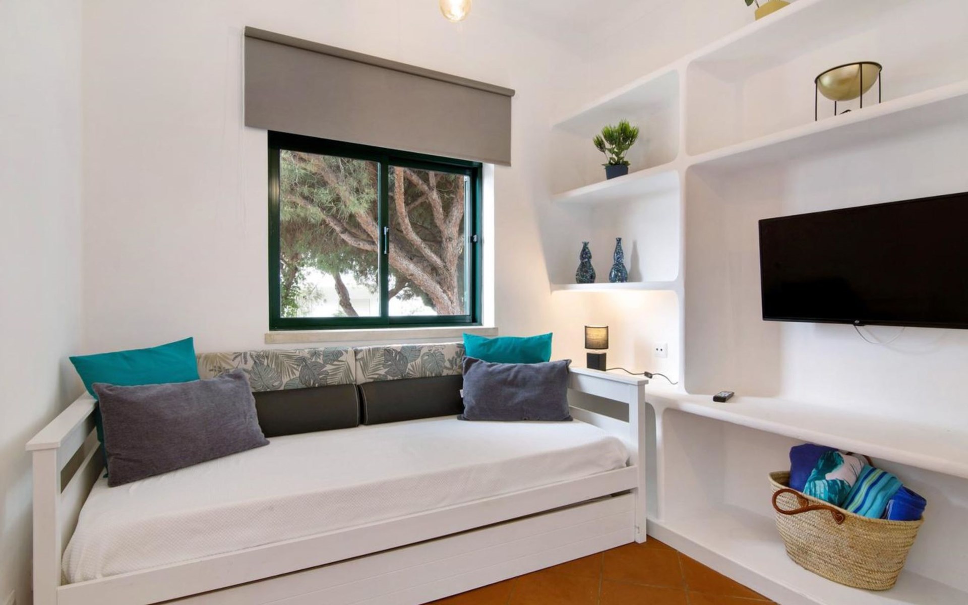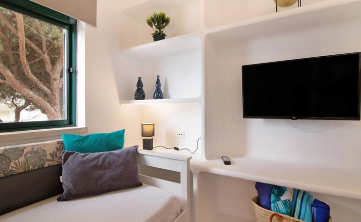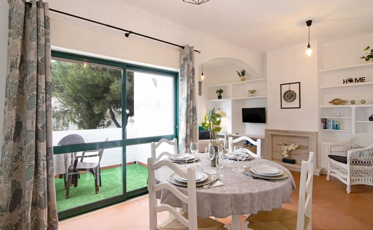 Very cosy apartment block "Medusa - Sunny Way". On the outskirts, 10.2 km from the centre of Albufeira, 900 m from the sea. In the house: WiFi. Grocery 260 m, supermarket 1 km, shopping centre 8.6 km, restaurant 300 m, bar 850 m, bakery 1.3 km, café 260 m, bicycle rental 2.5 km, bus stop 550 m, sandy beach "Praia da Falésia" 800 m. Marina 12.6 km, golf course (9 hole) 2.5 km, surf school 1.4 km, tennis 2 km, minigolf 7.5 km, riding stable 3.8 km, children's playground 7 km. Nearby attractions: Aquashow 14.6 km, AlgarveShopping 14.3 km, Strip 6.8 km, Vilamoura 10.2 km, Hot Shot Bowling 12.7 km, Electric Karting Albufeira Marina 12.6 km. Please note: car recommended, no lift. Suitable for families. Groups of teenagers on request only. Minimum age for check-in: 25 years. Guests under this age must be accompanied by adults. The sofa bed has a drawer and converts into 2 beds measuring 90x190 cm each.
