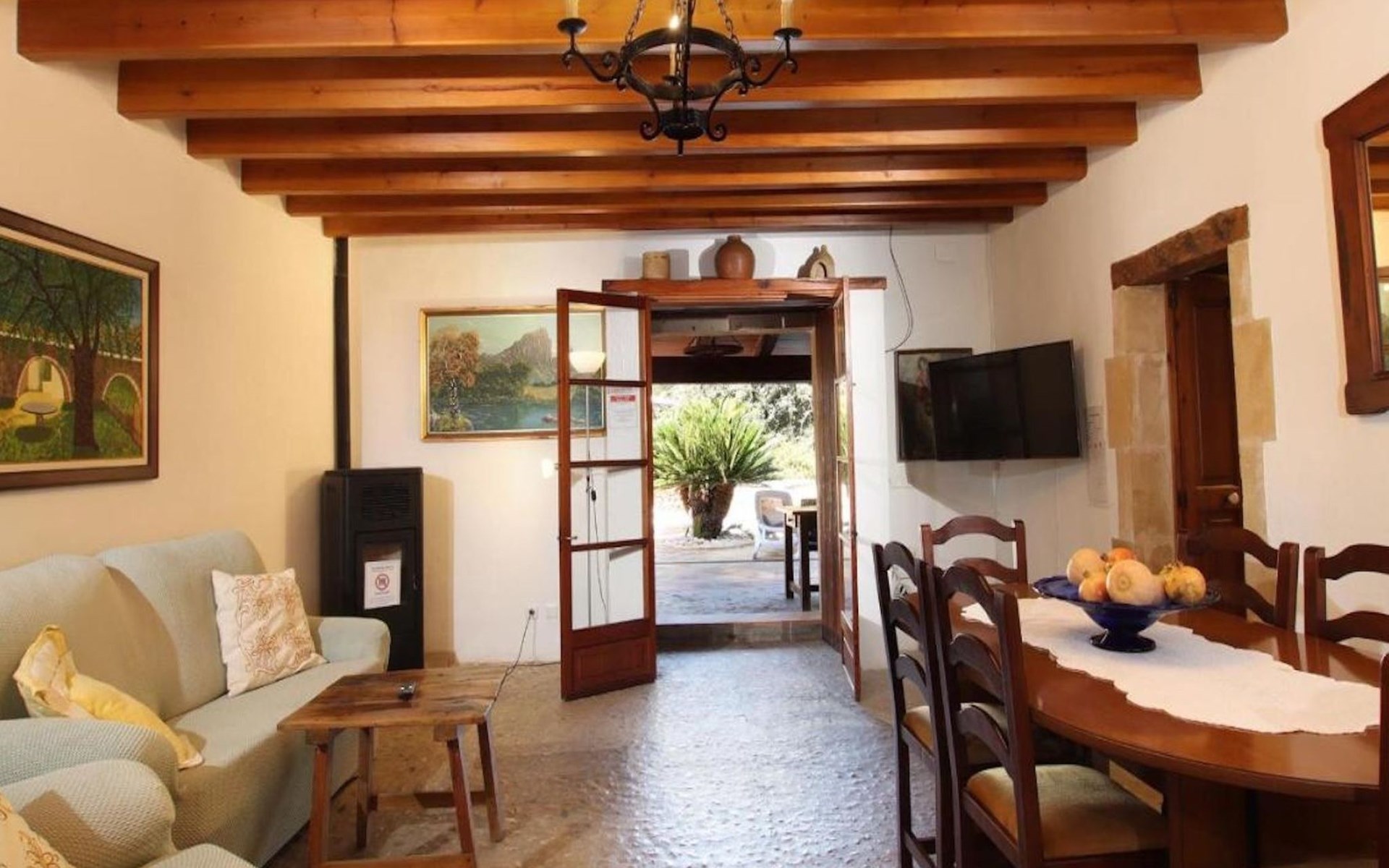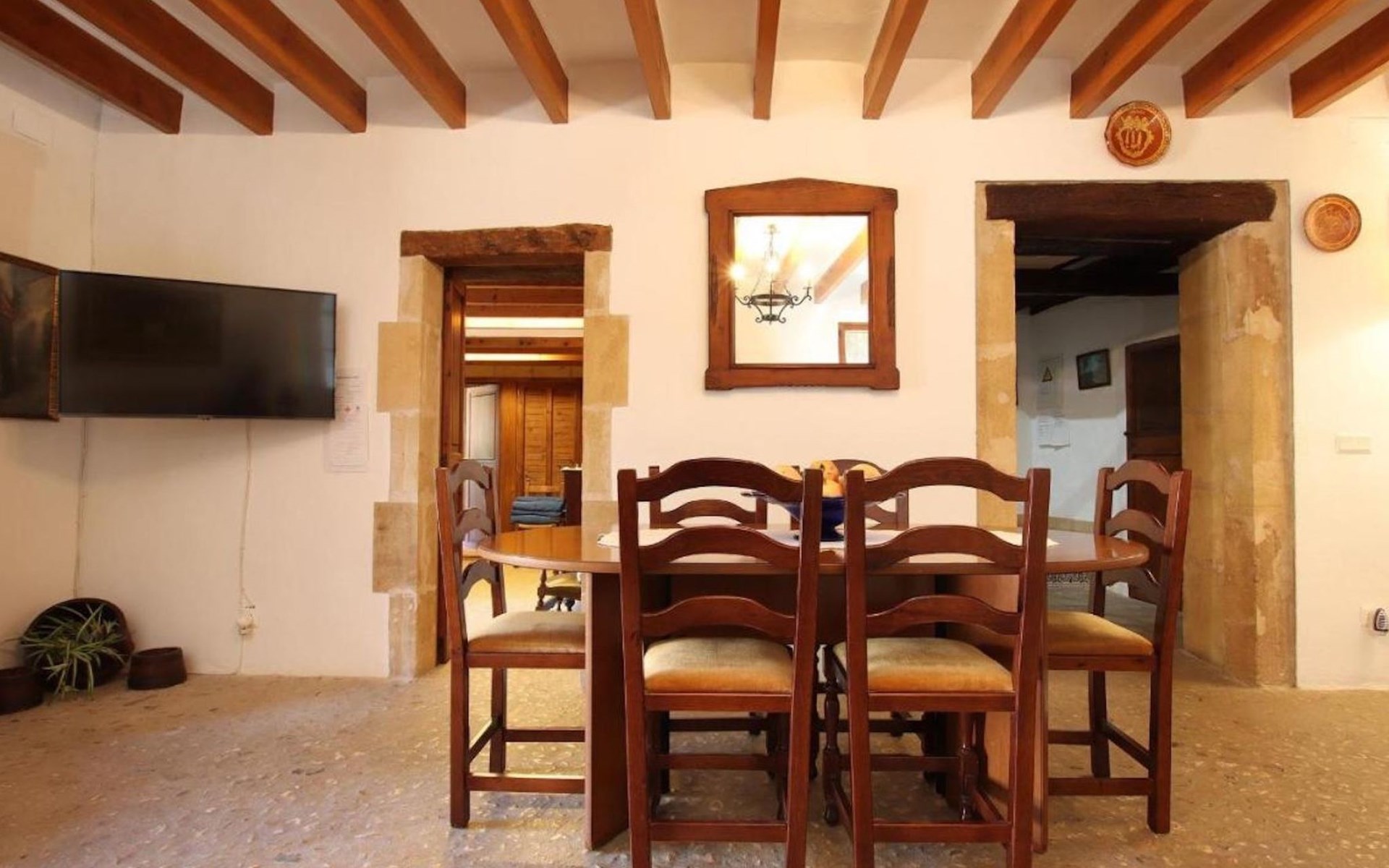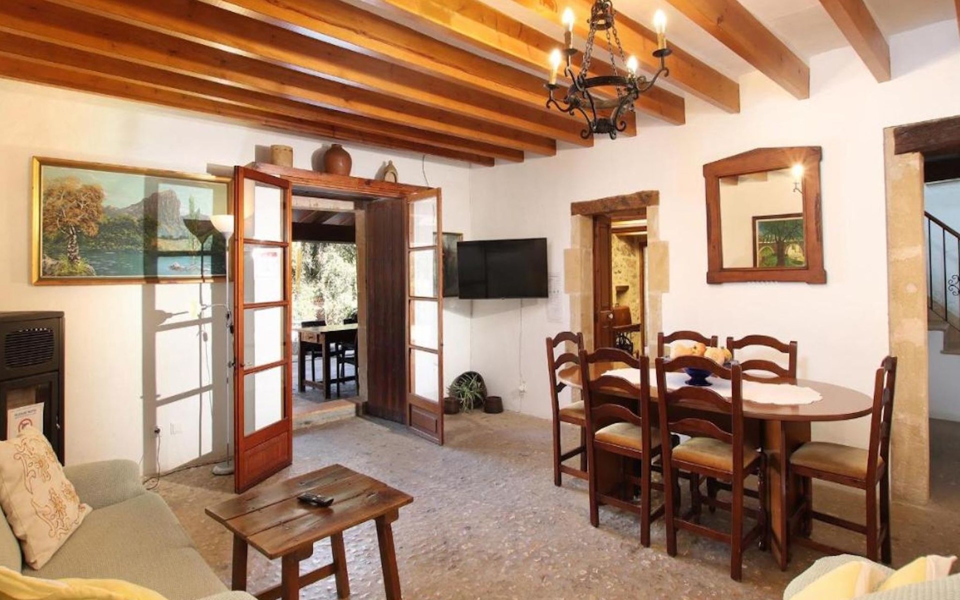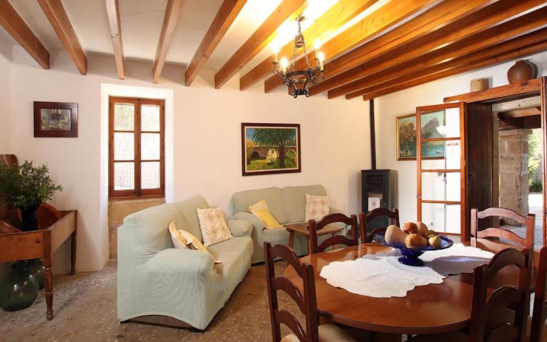 On the first floor we find the bedrooms; these consist of two doubles and one twin. All of them share two bathrooms, one with bathtub and one with shower. There is also a toilet with shower outside the house, near the barbecue area.