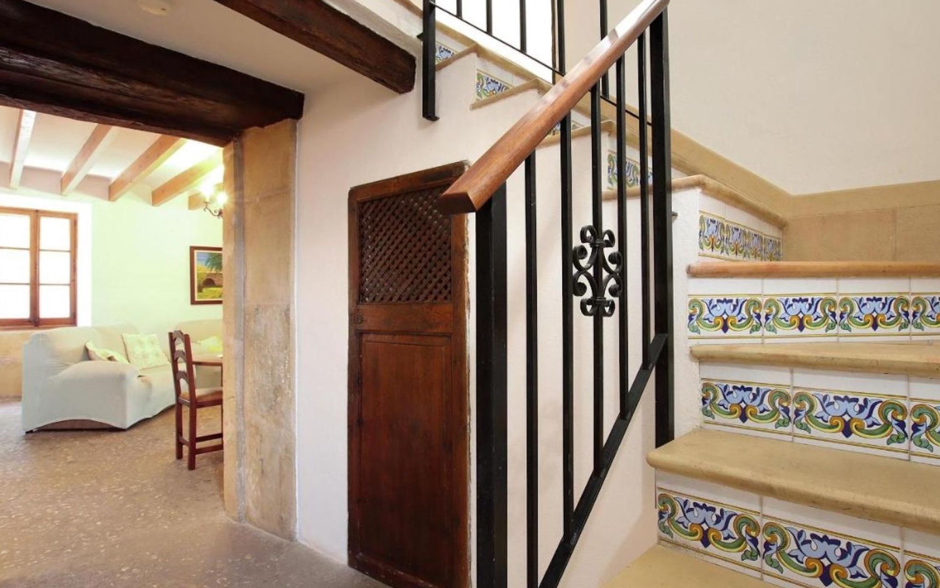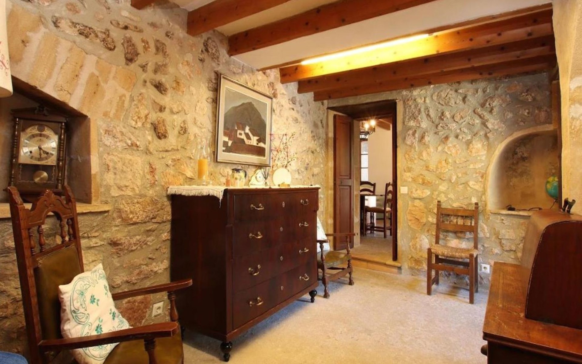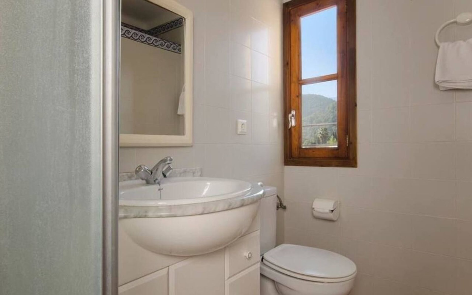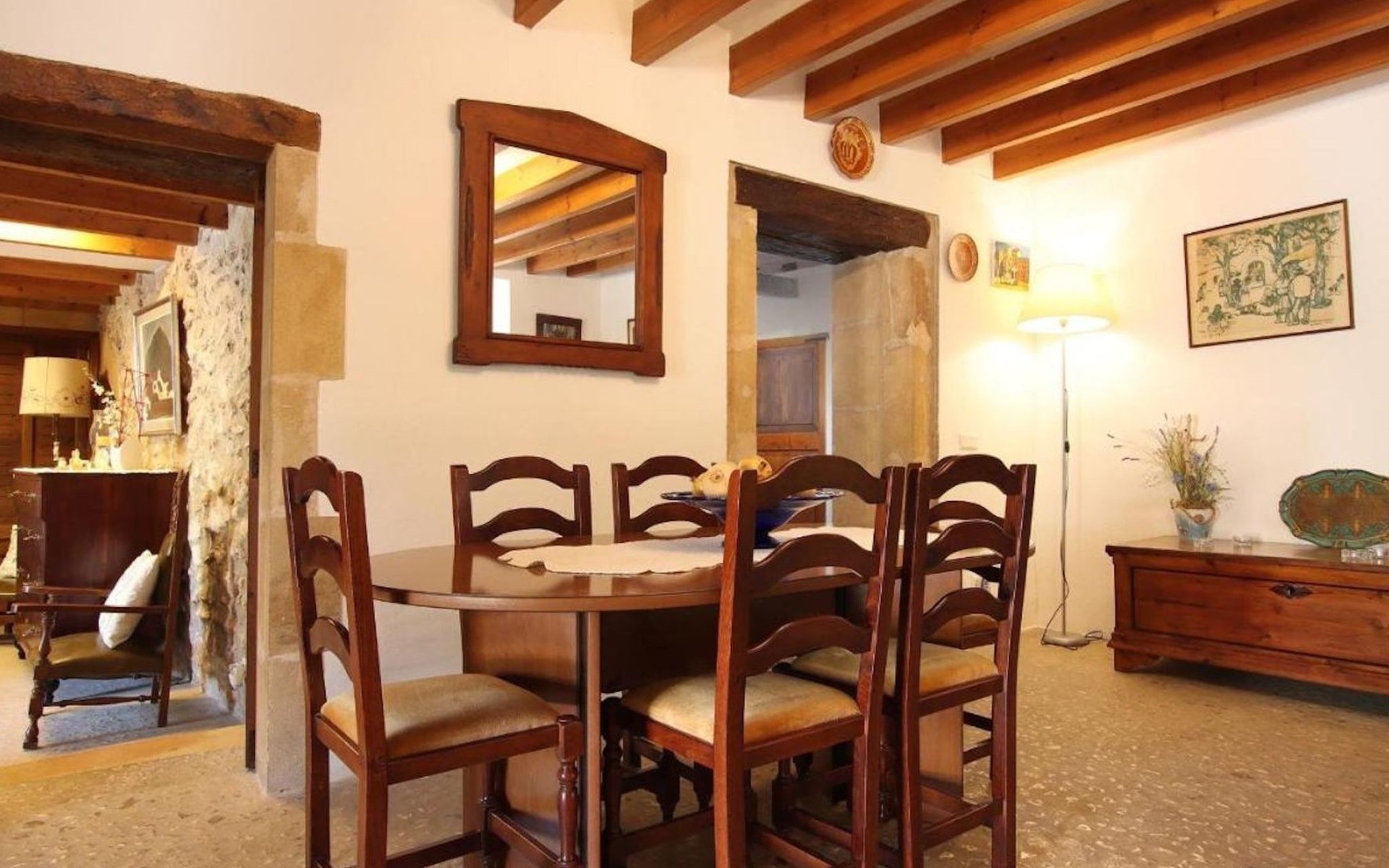 On the first floor we find the bedrooms; these consist of two doubles and one twin. All of them share two bathrooms, one with bathtub and one with shower. There is also a toilet with shower outside the house, near the barbecue area.
