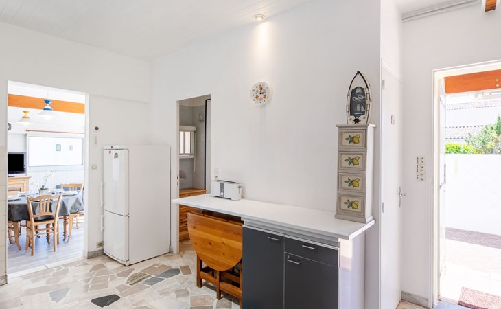 Saint Palais sur Mer 6 km from Royan: Small single-family house "Mésanges". On the outskirts, 1.5 km from the centre of Saint Palais sur Mer, 700 m from the sea, 700 m from the beach. Private: property 400 m2 (fenced), parking (for 2 cars) on the premises. Shop 1.5 km, supermarket 1.5 km, restaurant 800 m, bakery 1.5 km, bus stop "Palud" 700 m, railway station "Royan" 9 km, sandy beach "Platin" 700 m, indoor swimming pool 9 km, thermal baths "Thalassothérapie Thalazur Royan" 7 km, lake Saint Palais sur Mer 1 km. Golf course (18 hole) 800 m, surf school 1.5 km, sailing school 2.5 km, tennis 1.5 km, indoor tennis centre 1.5 km, riding stable 1 km. Nearby attractions: Embarcadère Royan - Le Verdon 7 km, Zoo de La Palmyre 7 km, Hippodrome - La Palmyre 8 km, Parc attractions Luna Park(Juillet-Août) 12 km, Centre aquatique Iléo - Ile d'Oléron 40 km, Fort Boyard - Fouras 50 km. The keys‘ handover takes place by the agency Interhome in Vaux sur Mer, 5 km.