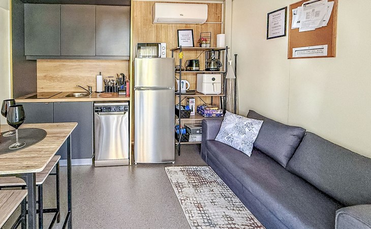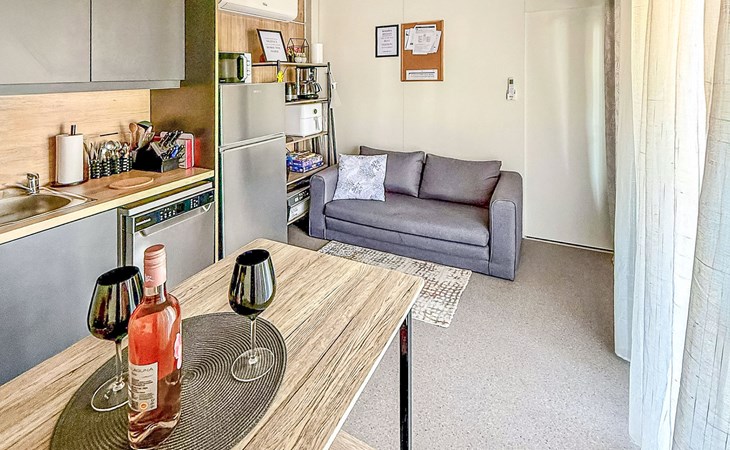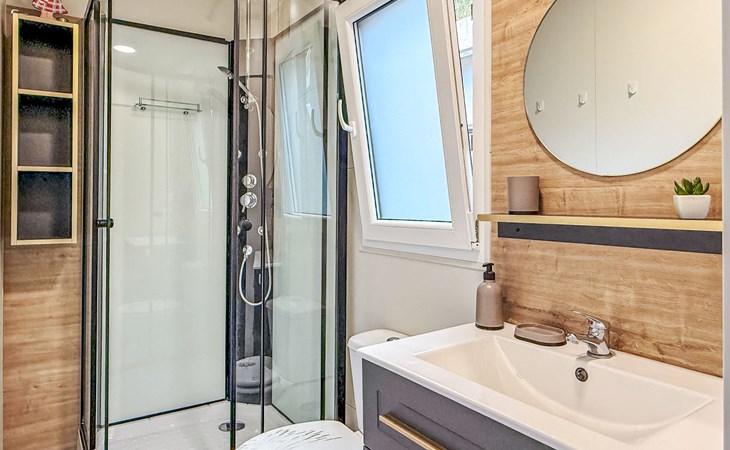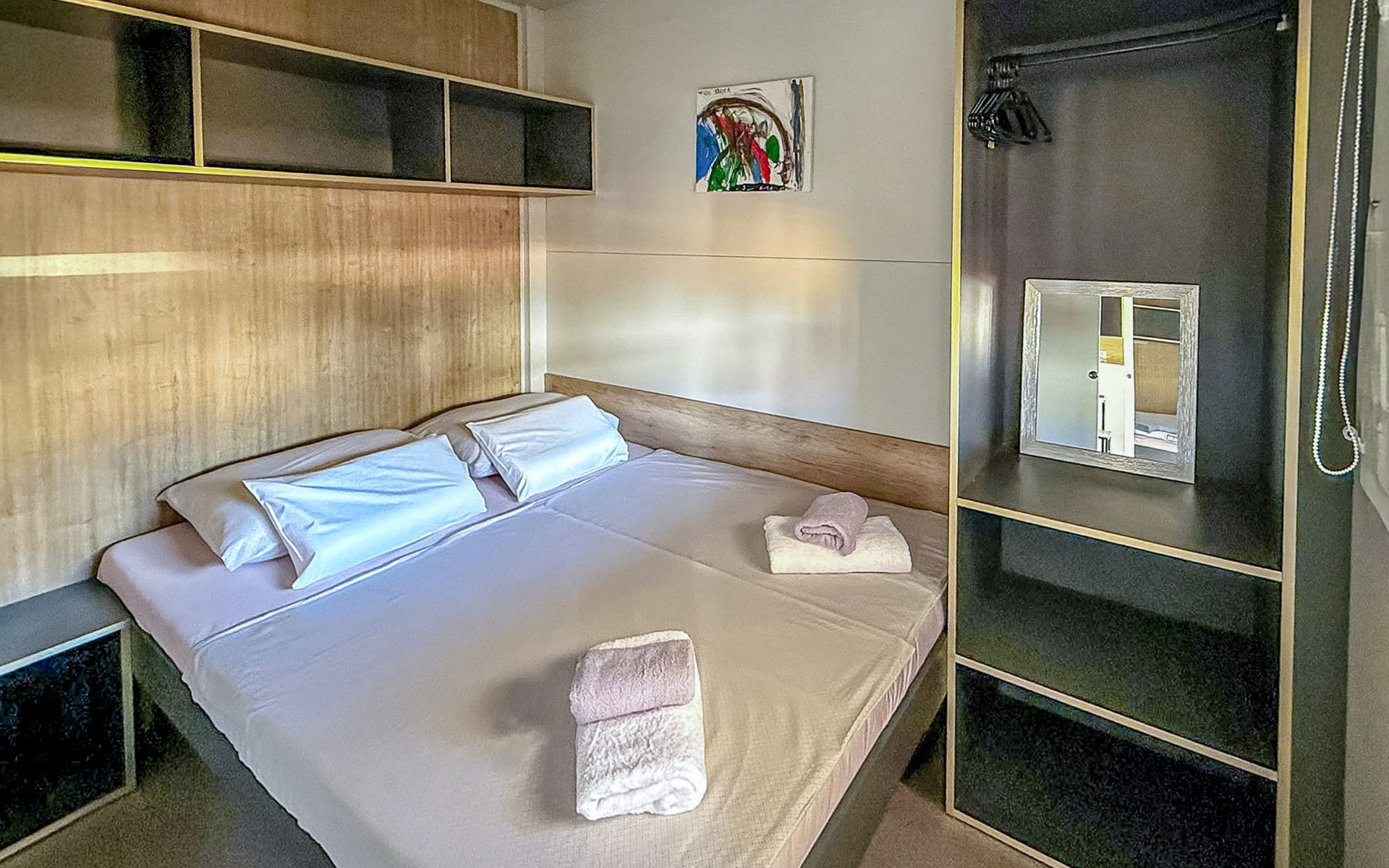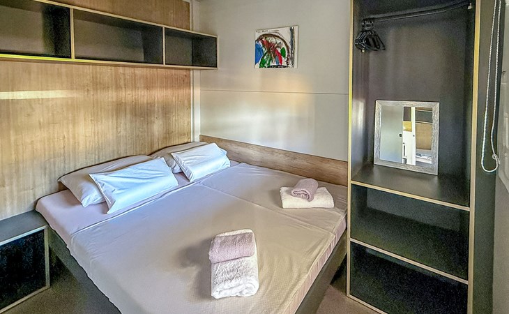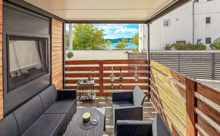 Mobile home "Hosekra Hišica", built in 2025. 1.5 km from the centre of Sv. Filip i Jakov, in a sunny position, 100 m from the sea, 100 m from the beach. For shared use: property 1'000 m2 (fenced). Barbecue. In the house: internet access. Parking at the house on the premises. Shop 300 m, restaurant 700 m, bus stop 600 m, pebble beach 100 m. Well-known lakes can easily be reached: Vransko jezero 12 km.